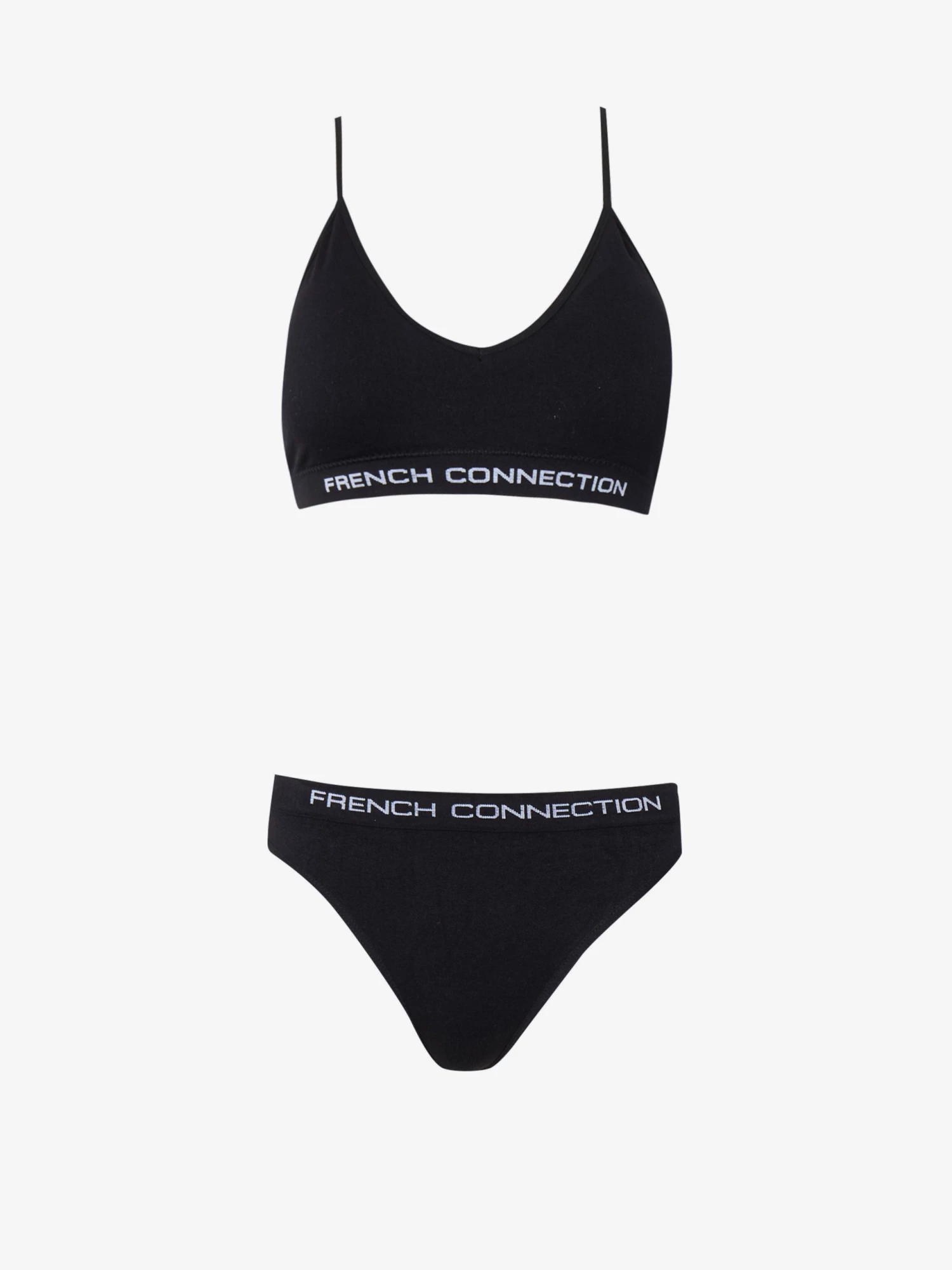 Add undeniable comfort to your everyday routine with the Fcuk Crop Top and Thong Set. The matching pair has a sleek FCUK logo band.