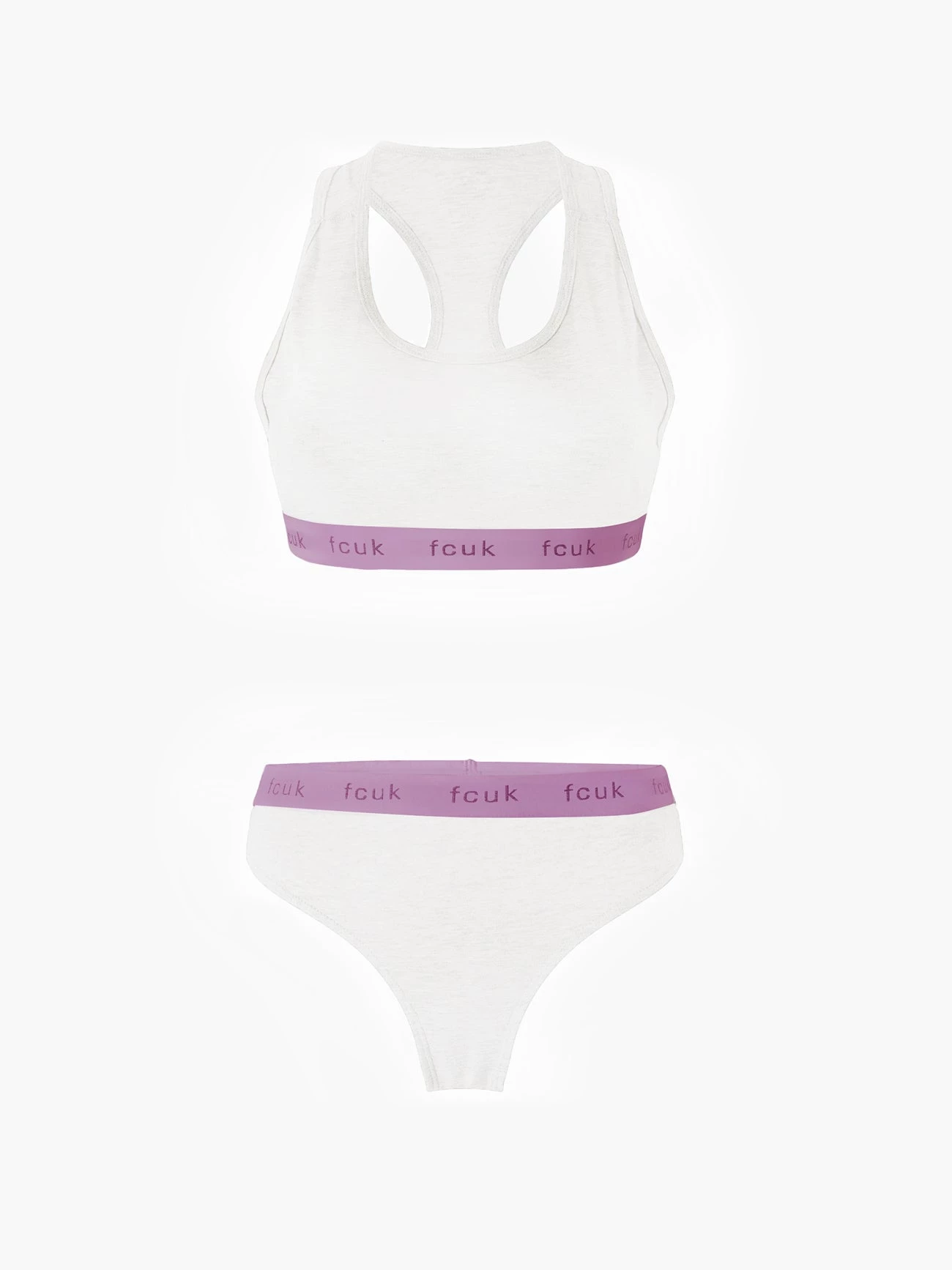 Add undeniable comfort to your everyday routine with the Fcuk Crop Top and Thong Set. The matching pair has a sleek FCUK logo band.