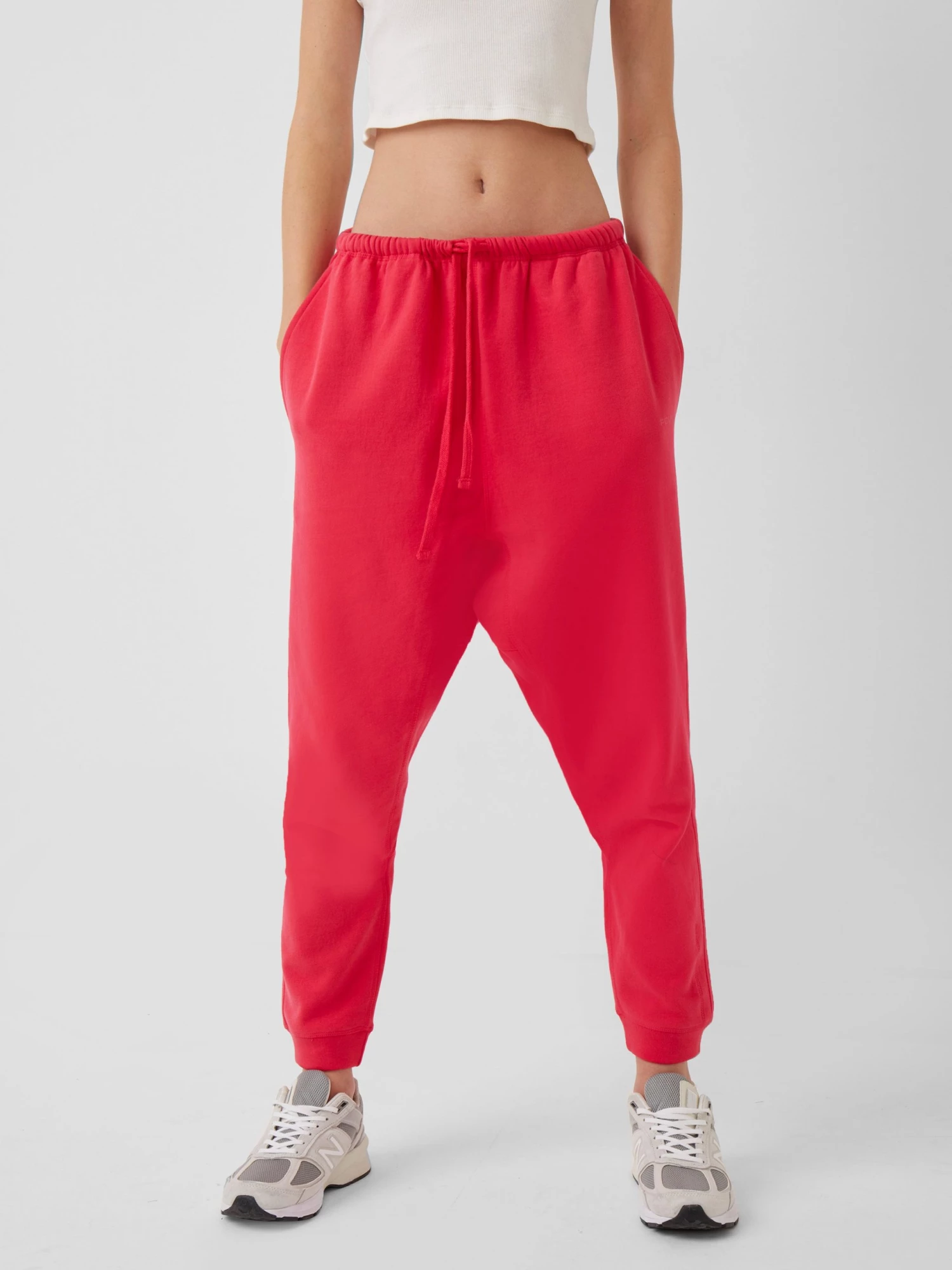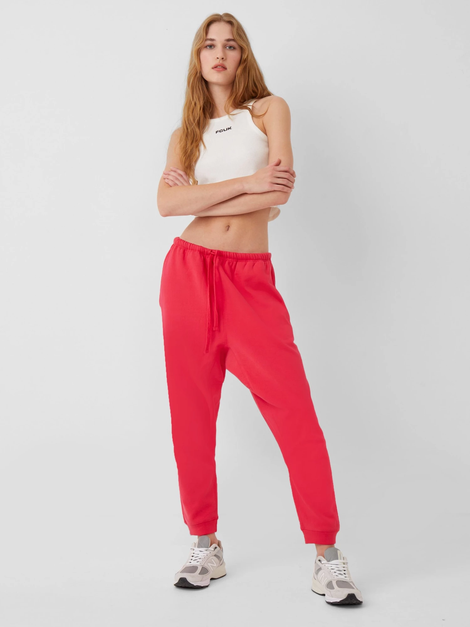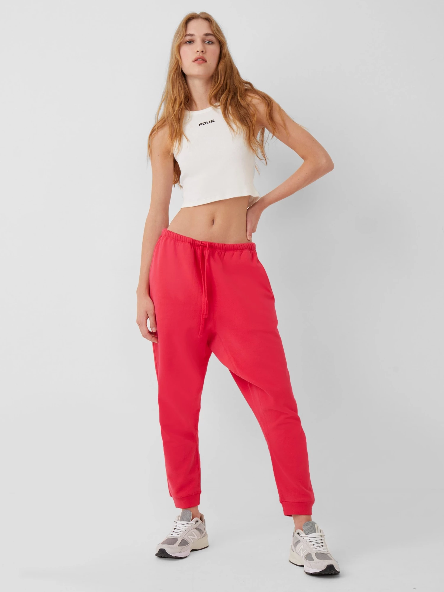 The FCUK Dropped Crotch Joggers are crafted from a soft-touch cotton blend fabric and feature a drawstring waist, embroidered FCUK logo, side pockets and a ‘90s-inspired dropped crotch.