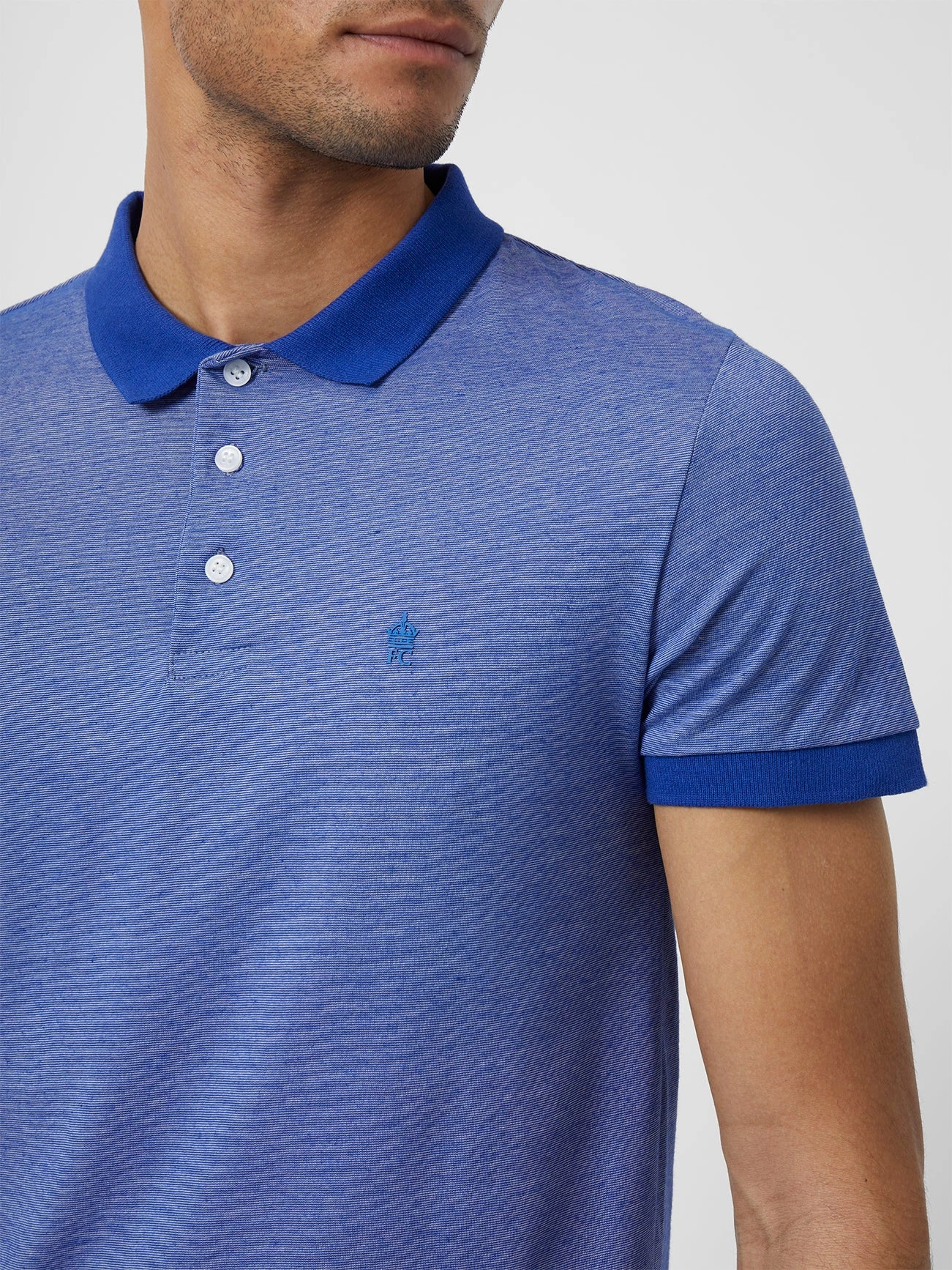 Subtle stripes are essential for every wardrobe, so step forward the Feeder Stripe Polo Shirt. The feeder pattern accentuates this smart-casual polo shirt, with contrasting collar and short sleeve trims, front-button fastening and an understated French Connection crown motif upon the chest.