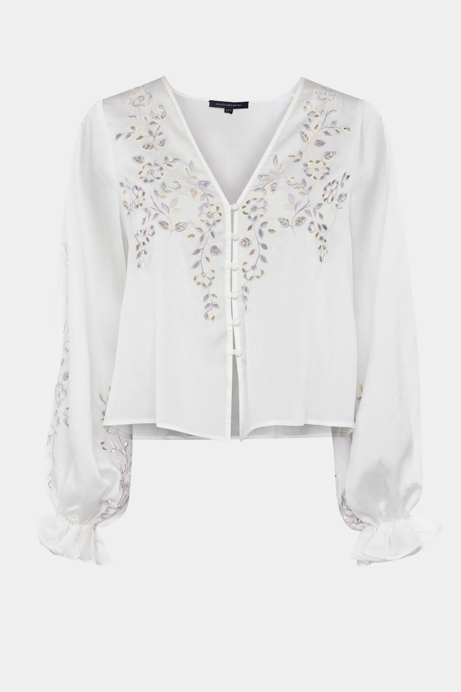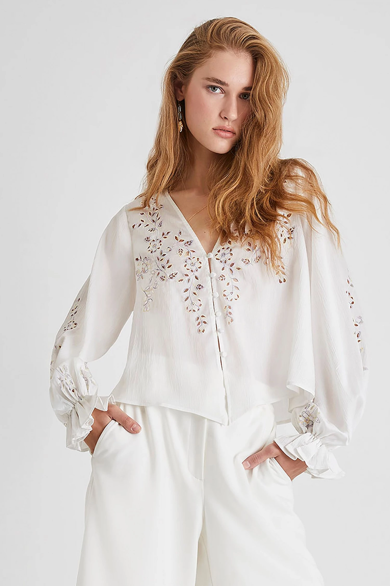 The devil is in the details – and our Gigi Embroidered Crop Top is proof. In a gently cropped fit, it features cuffed sleeves and folklore embroidery.