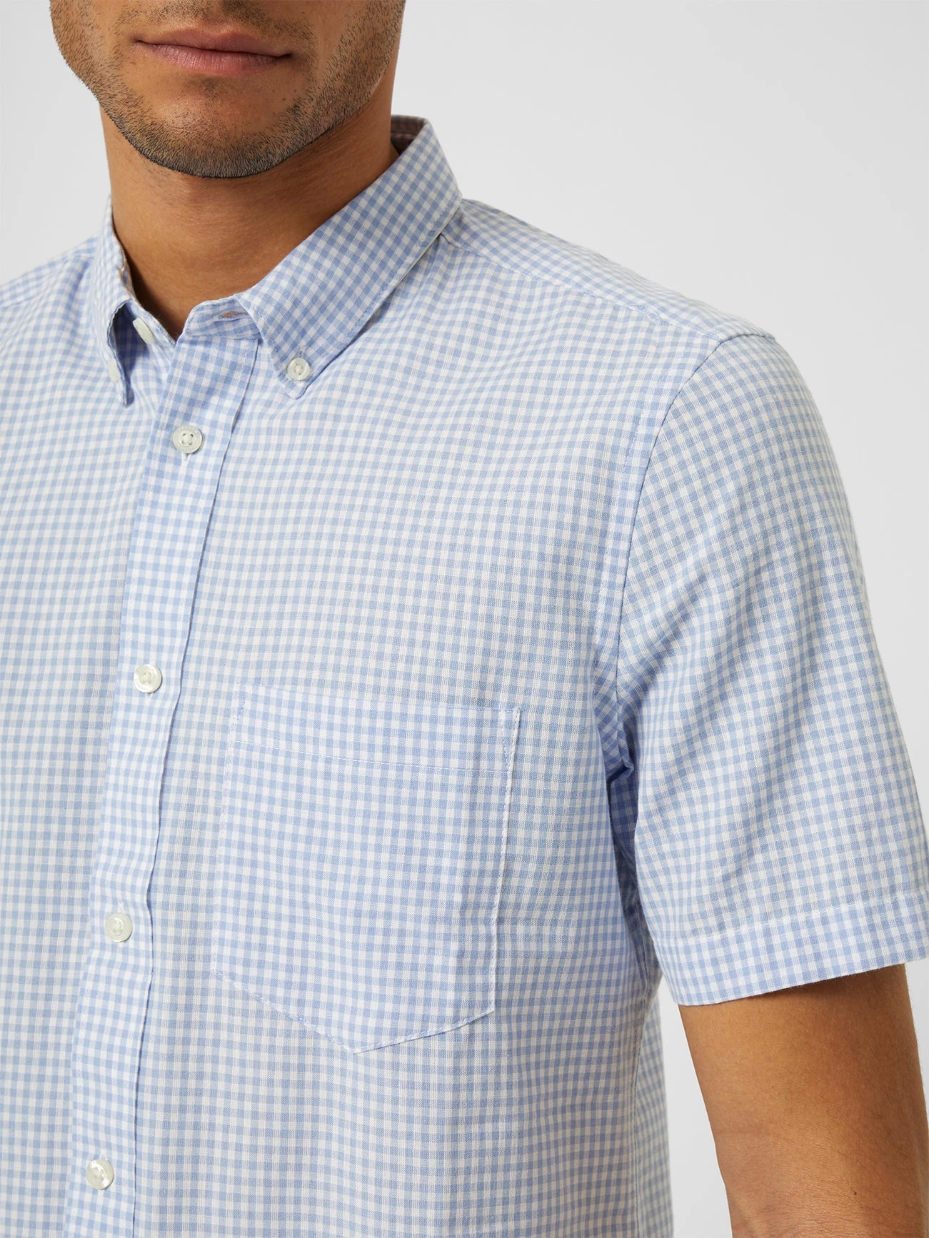 We can’t stop checking out the Gingham Short Sleeve Shirt. A big trend this season, the gingham pattern screams sunshine strolls and picnics in the park, paired on this short sleeved shirt with a full-length front button fastening, buttoned down collar and single practical chest pocket.