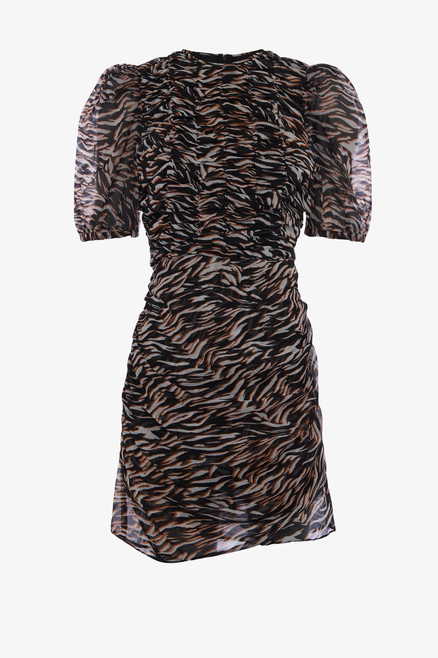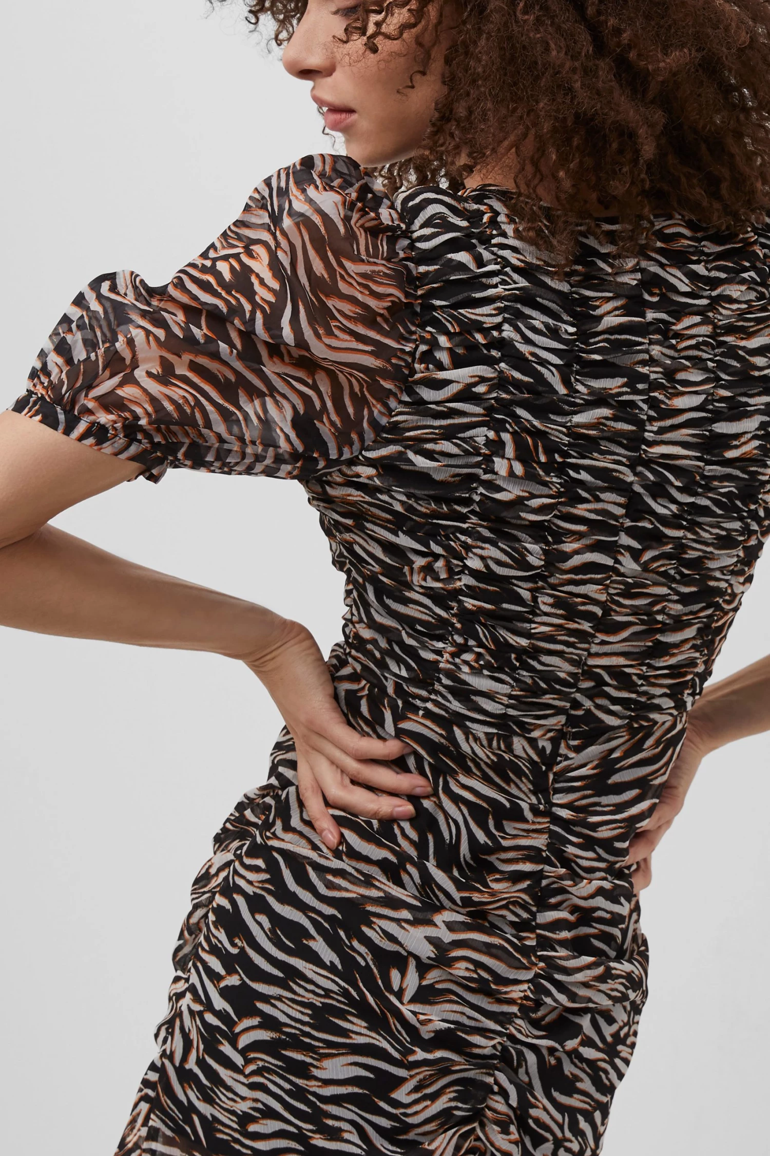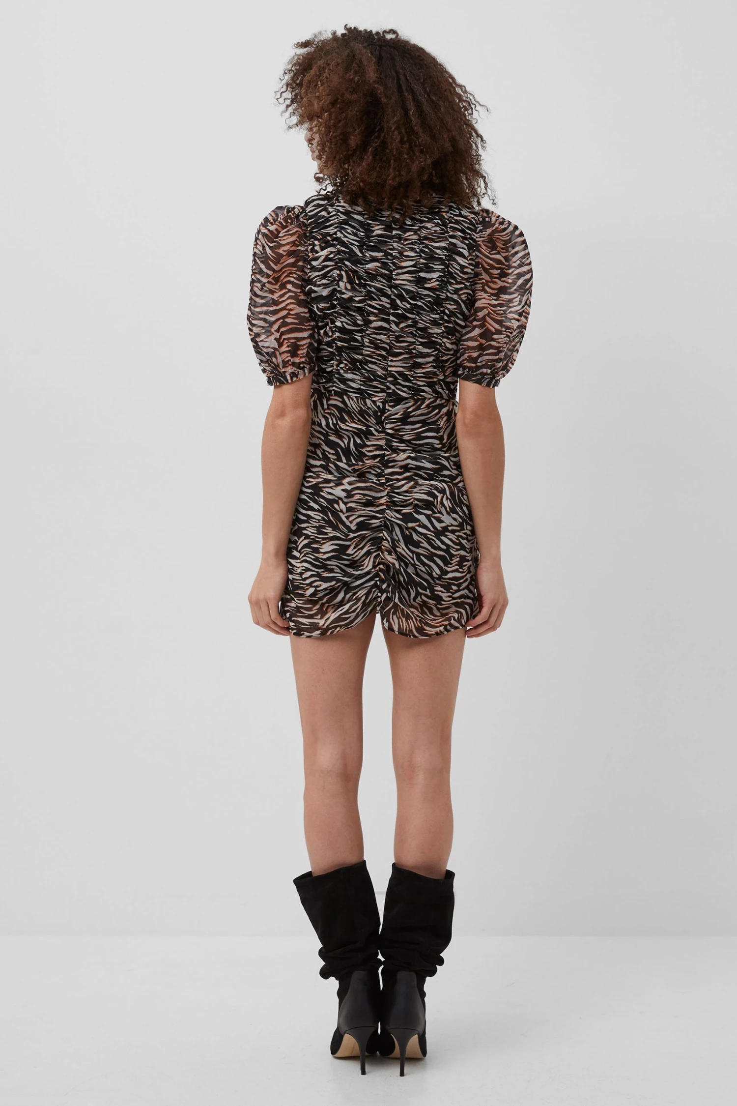 Steal the scene when you’re wearing our Iger Crinkle Mix Mini Dress. Crafted in a figure-hugging fit and draped fabric with a fierce animal print.