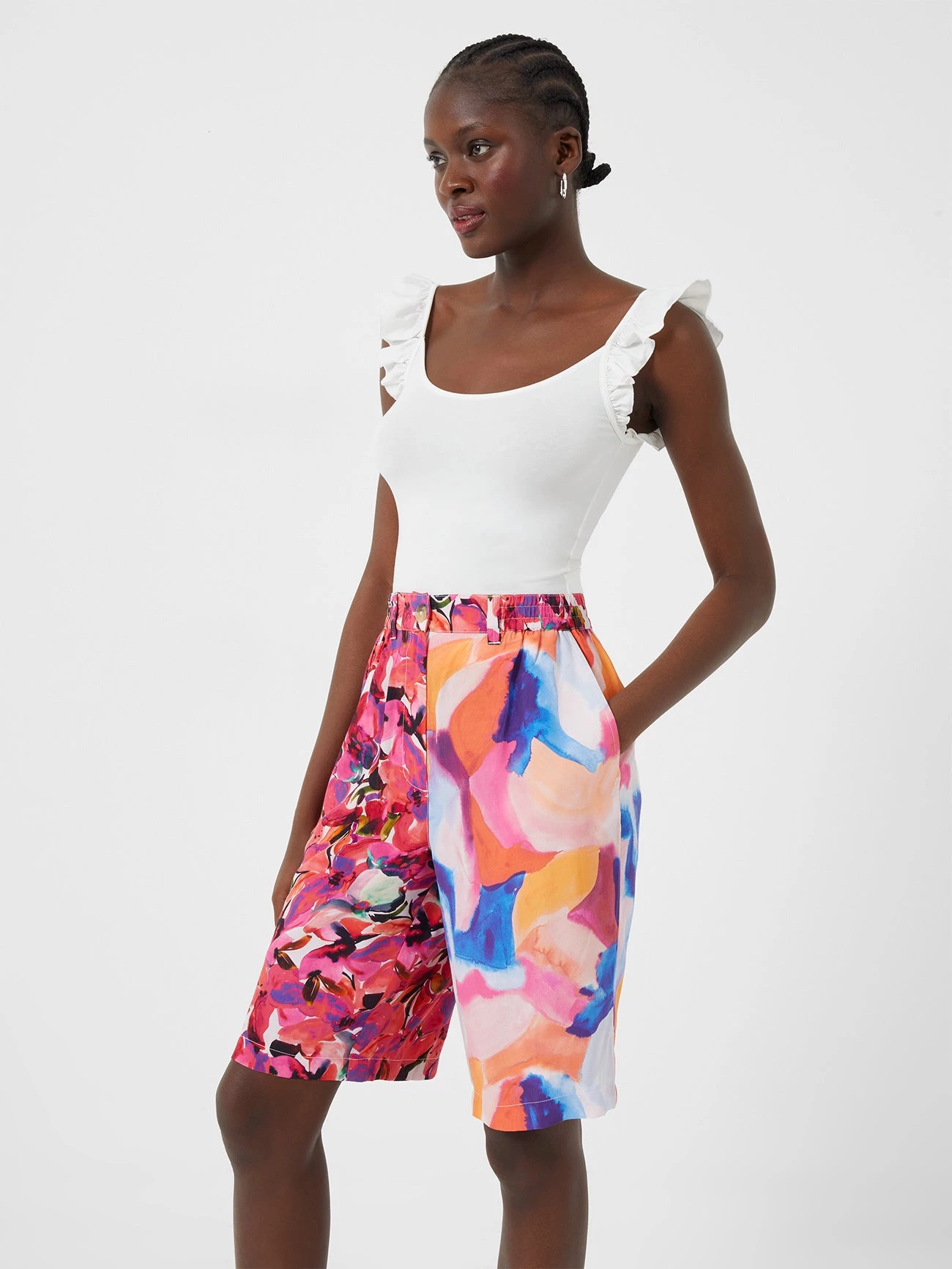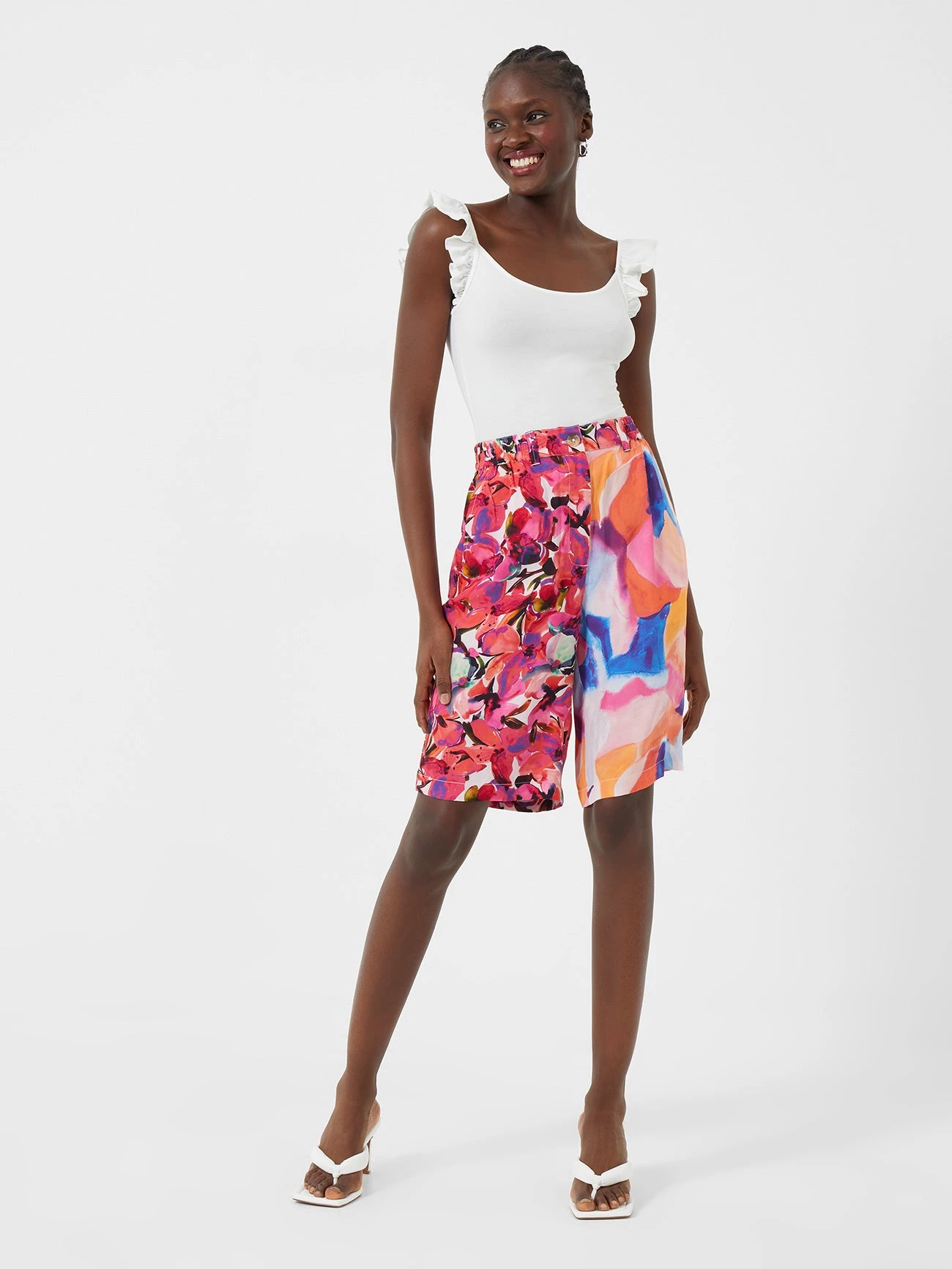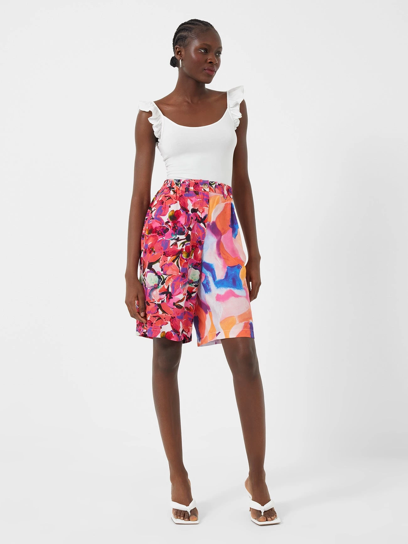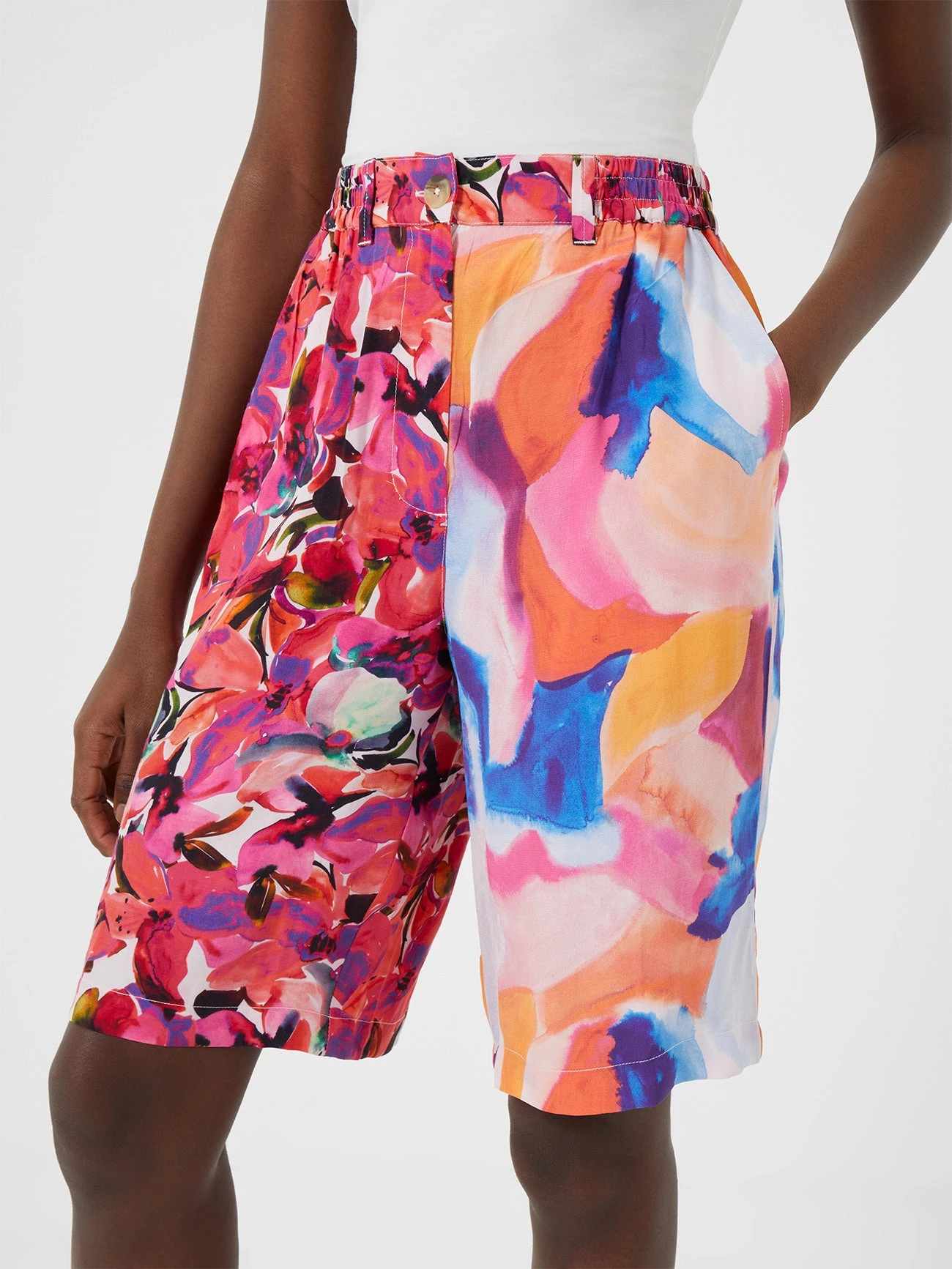 Embrace the warmer weather with the Isadora Delphine Bermuda Shorts in your wardrobe. These lightweight knee length shorts boast two contrasting patterns, complimenting one another with bright hues and florals, complete with an elasticated waistband and side pockets.