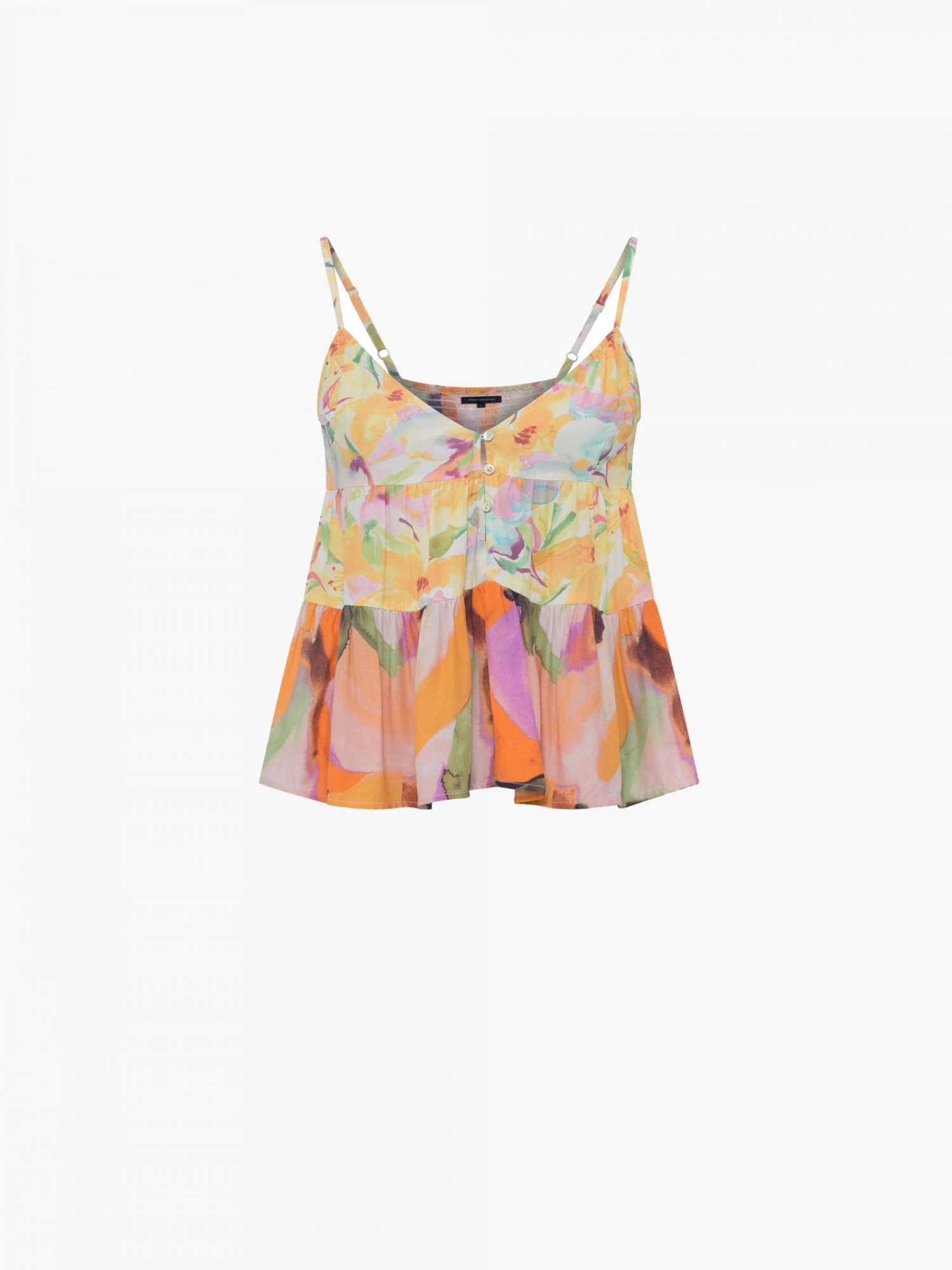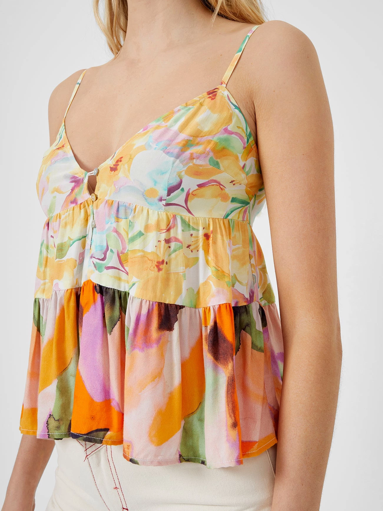 The Isadora Delphine Patch Peplum Top is as pretty as a picture. Three colourful patterned patches form this summer number, which also features adjustable straps, a button-fastened V-neck and floaty peplum hem.