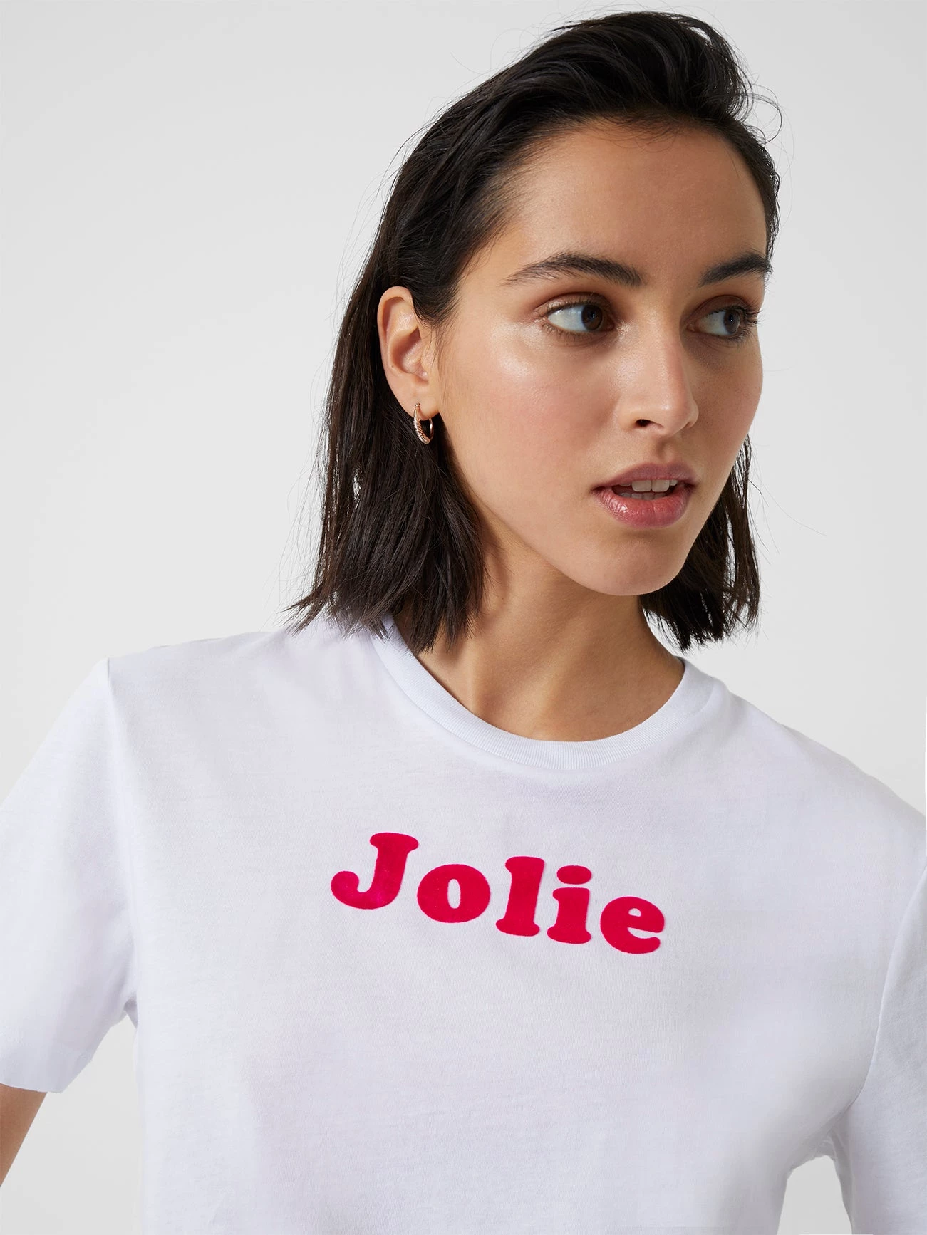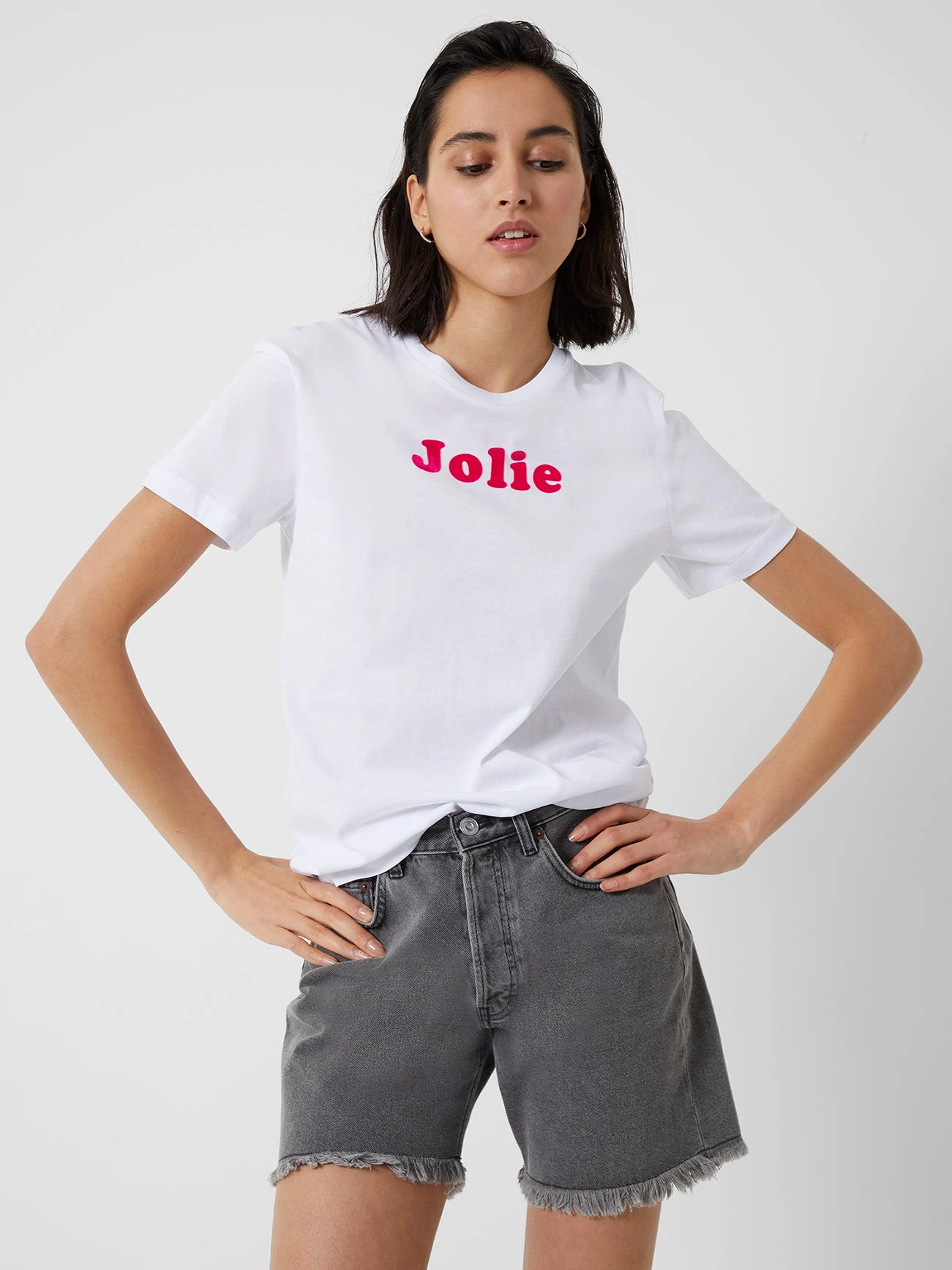 You’ll feel Jolie even on your most casual days in our Jolie Graphic T-Shirt. This simple design adds character to your laidback collection, with a fun text graphic print set alongside the short sleeves and round neckline.