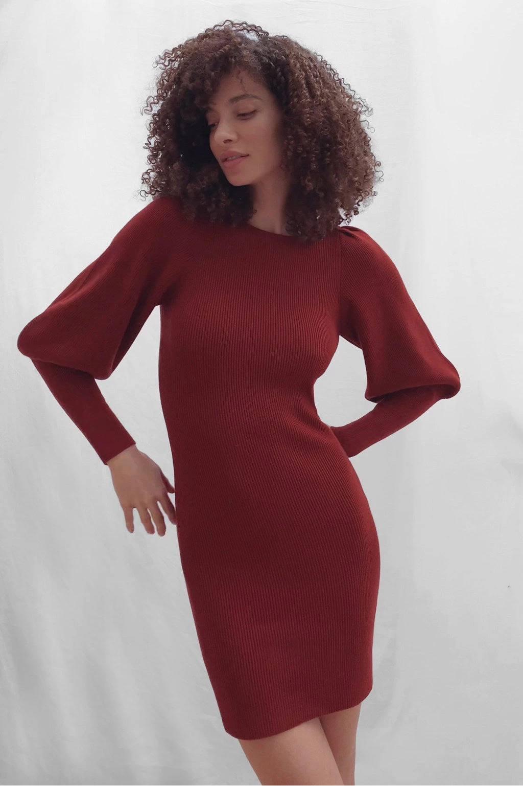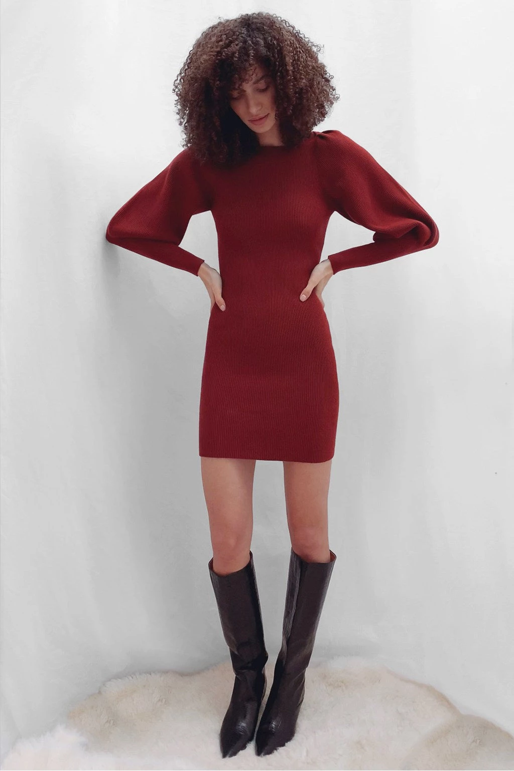The Joss Knit Mini Dress brings the comfort of your favourite knit to your dressy wardrobe. The tight-fitting silhouette is designed with voluminous sleeves and ribbed body.