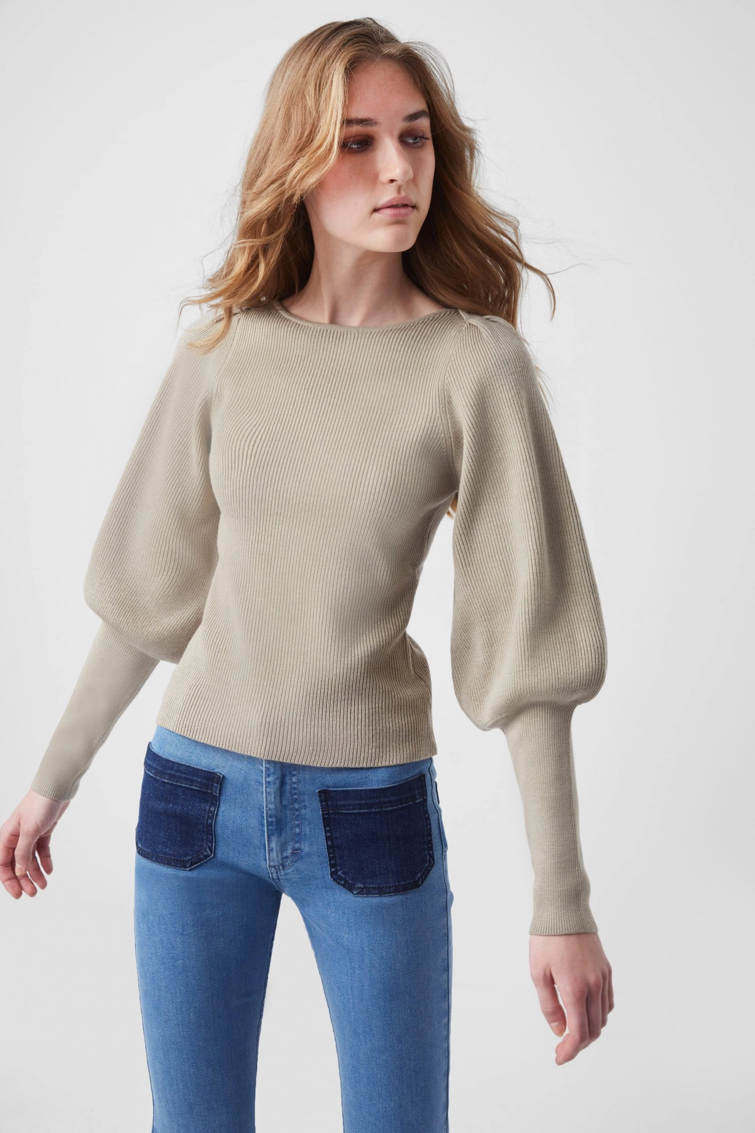 The Joss Knit Slash Neck Jumper makes the unexpected transeasonal weather fun. With a ribbed body and voluminous sleeves cuffed at elbows, it’s an autumn must-have.