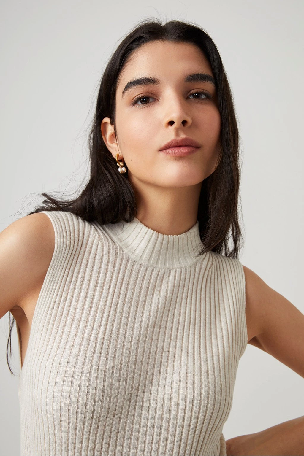 Turn your hand to minimalist style with the help of the Judie Recycled Rib Vest. The must-have staple has a high neckline and a ribbed, sleeveless body.