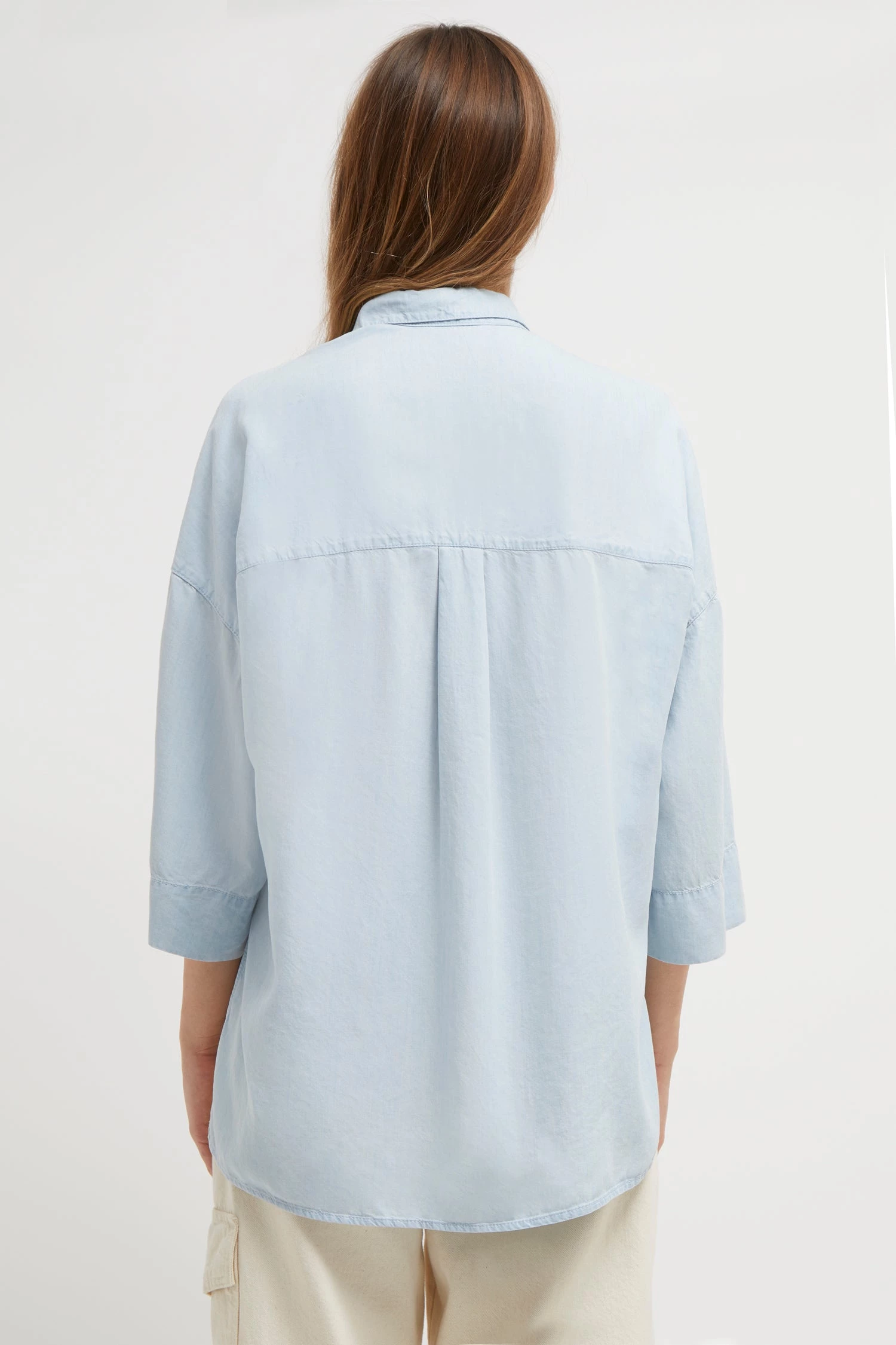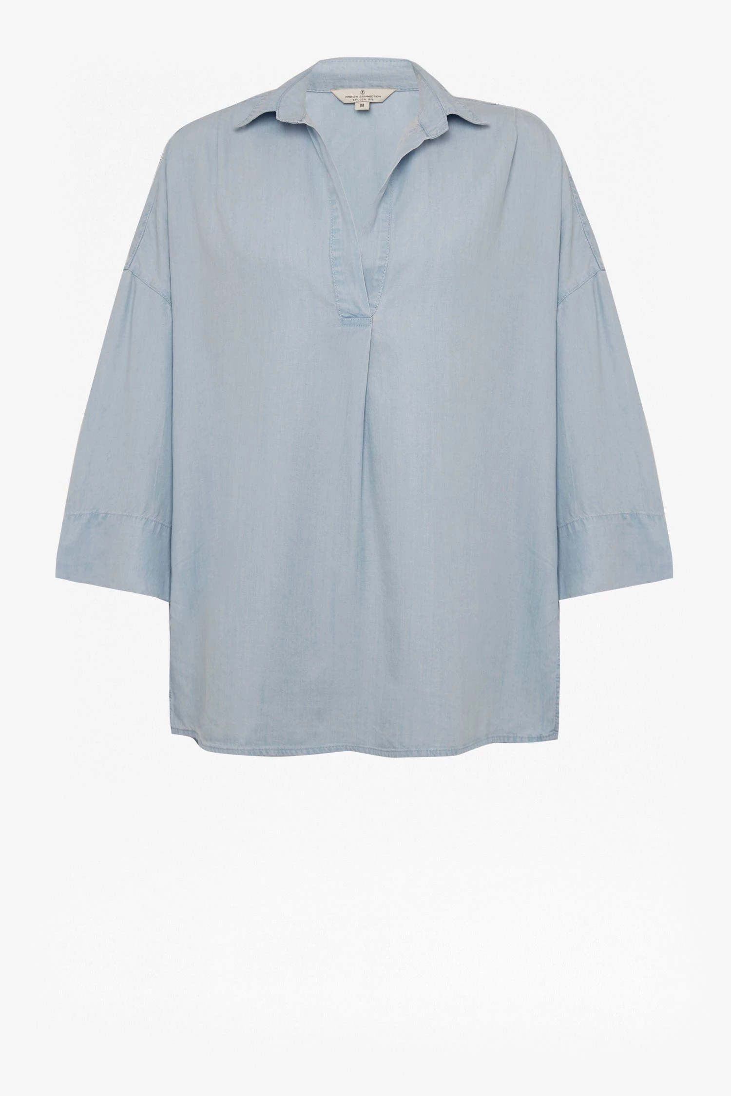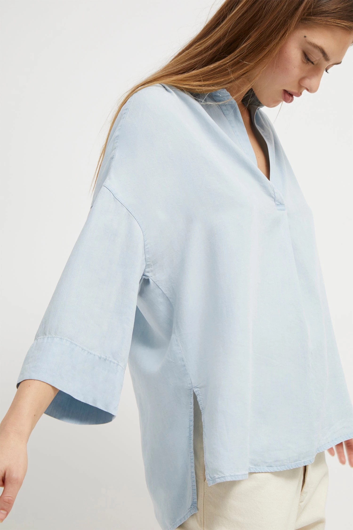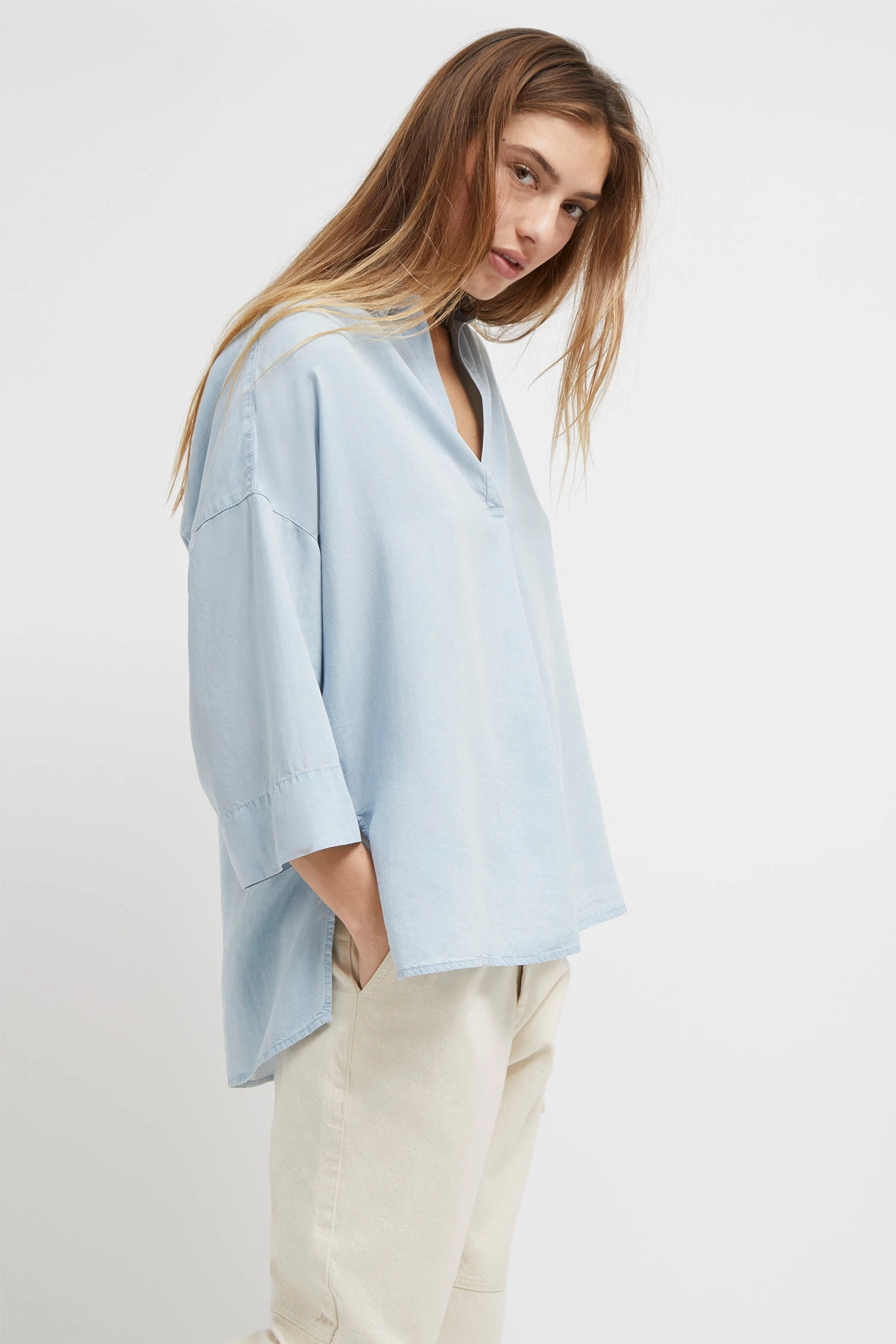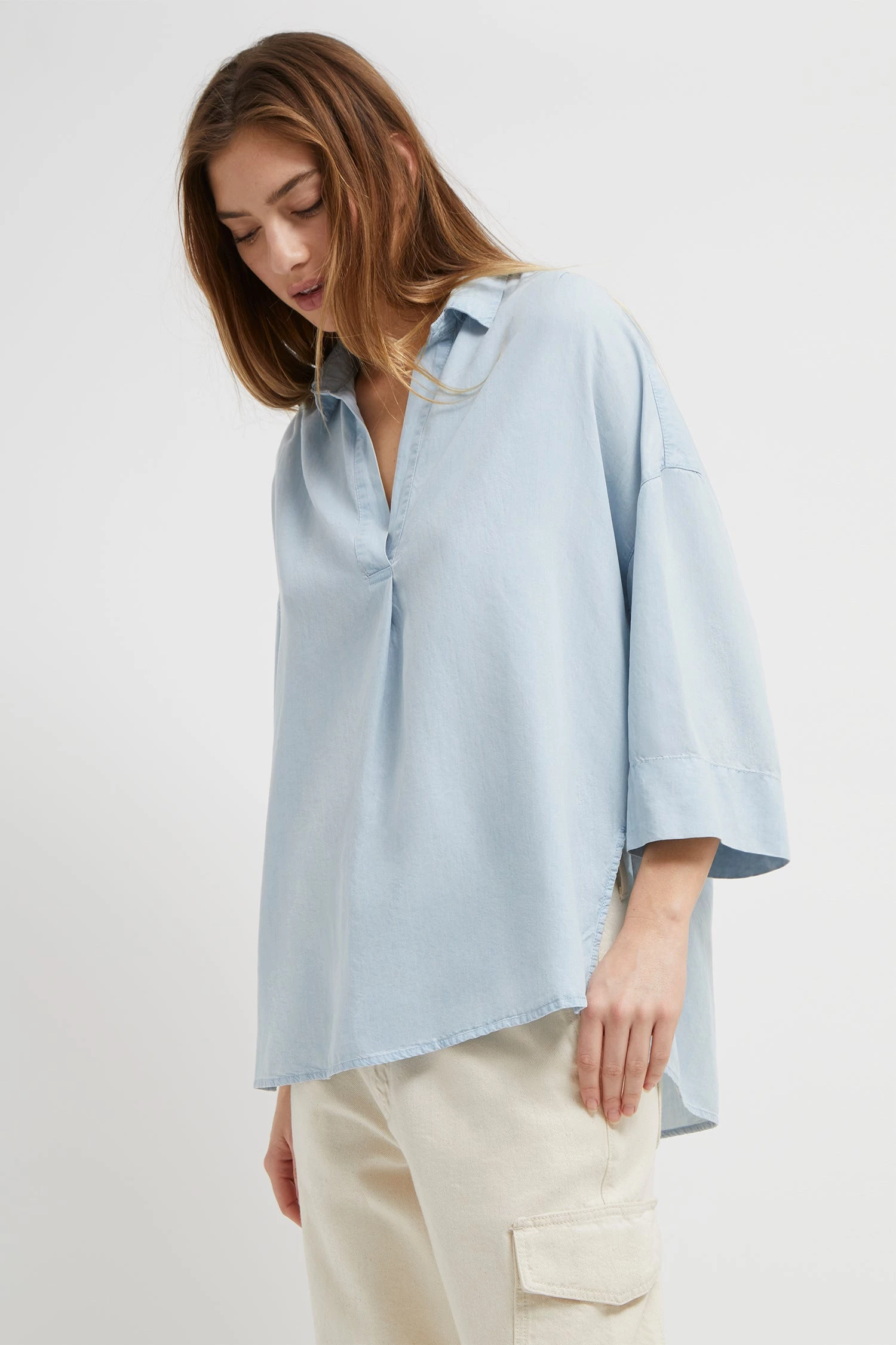 With a loose fit and relaxed slip on style, the Juliette Pop Over Shirt is the perfect fit for casual days. The lightweight shirt features a relaxed collar, cropped sleeves and V neckline, creating a comfortably companion to favourite denim.