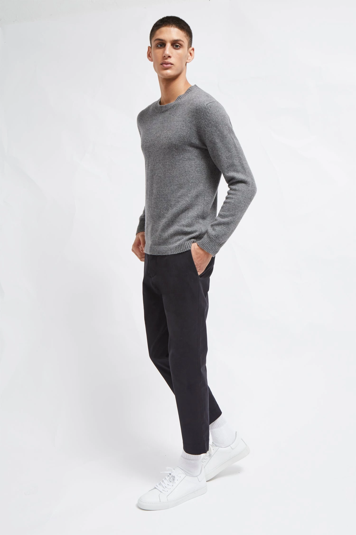 A knitwear essential in every modern man’s wardrobe, the Italian Eco Cashmere Crew is a layering piece with true staying power. Crafted with eco-friendly recycled cashmere and soft wool, the crew neck jumper boasts a flattering regular fit, making it ideal for layering over t-shirts and smart collared shirts.