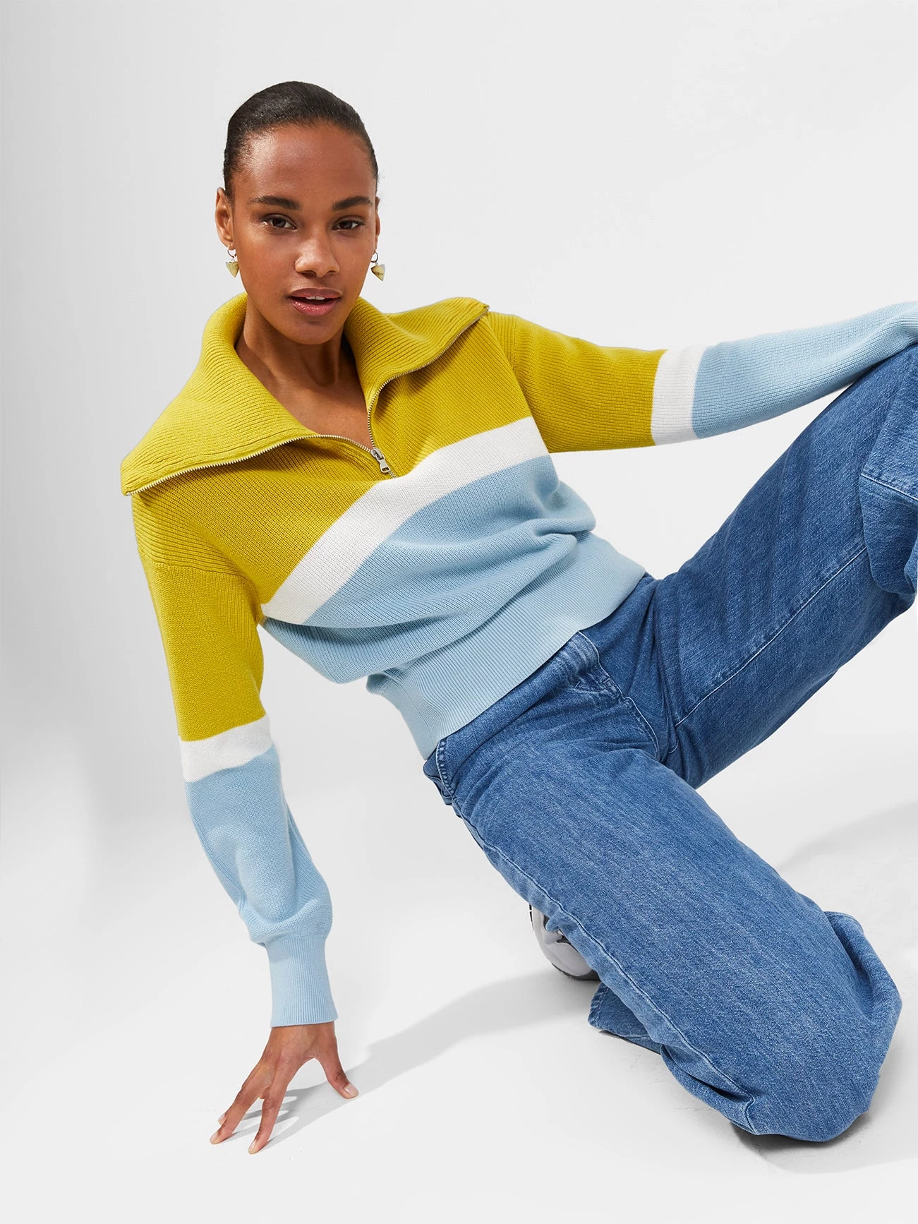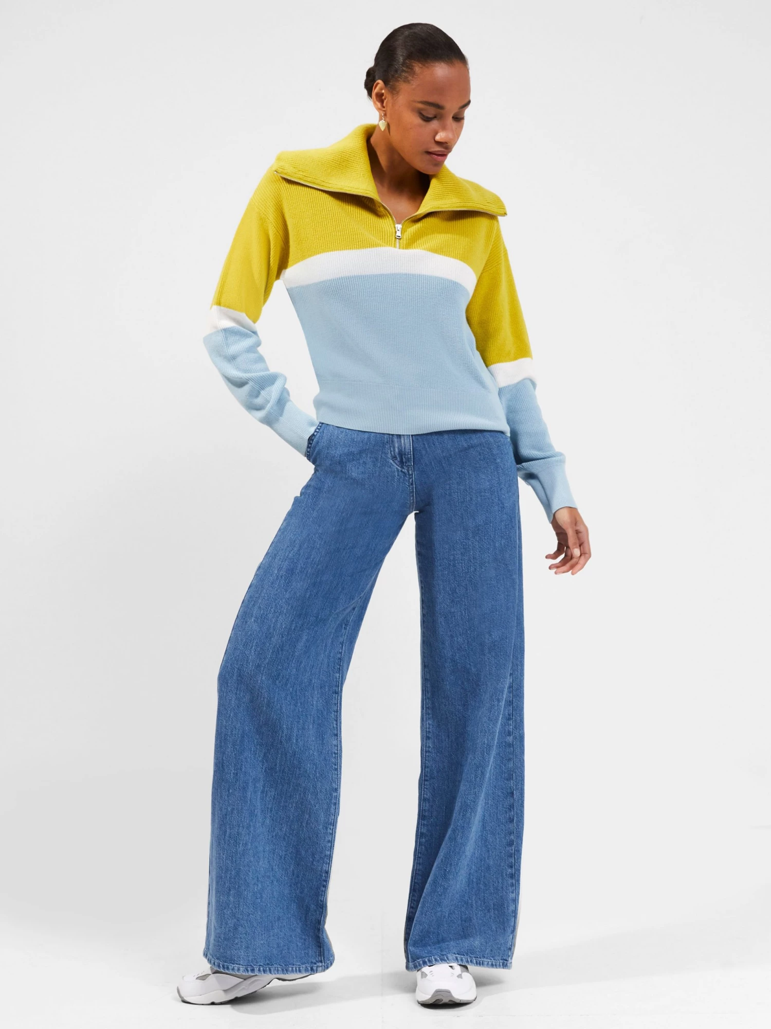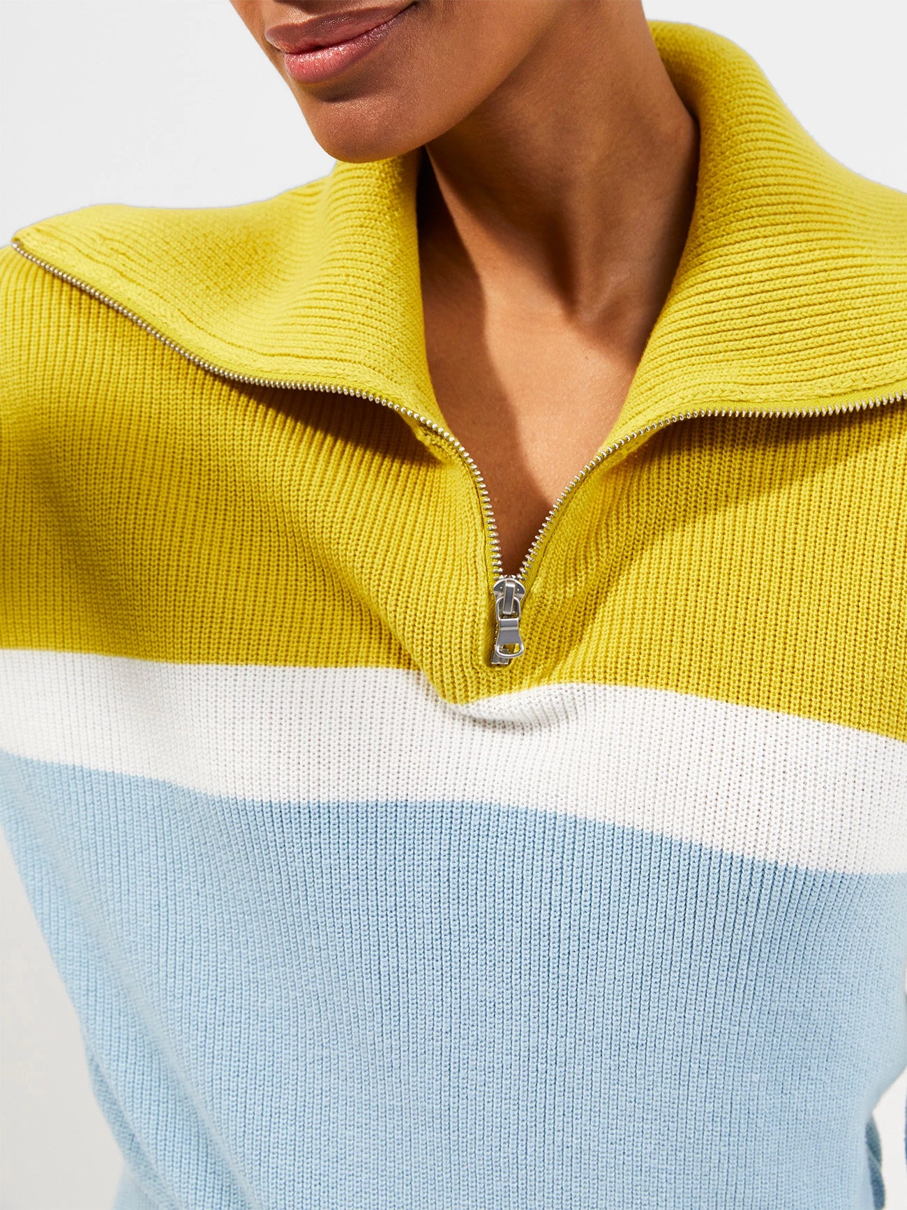 Zip up in the Konnie Half-Zip Jumper’s laid-back charm. Inspired by athleisure, it has a striped print and half-zip fastening at the chest.