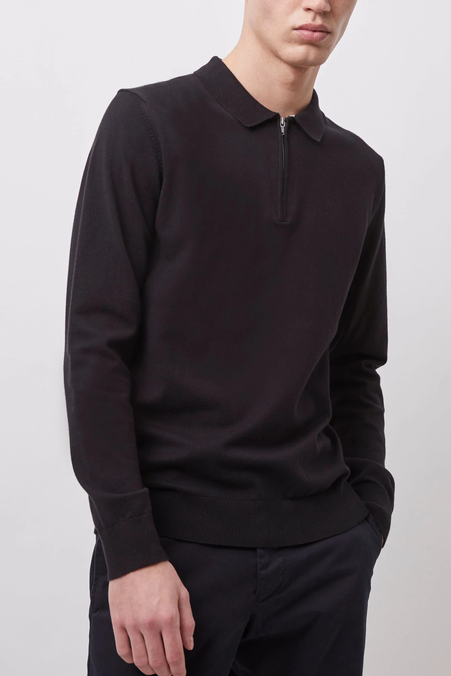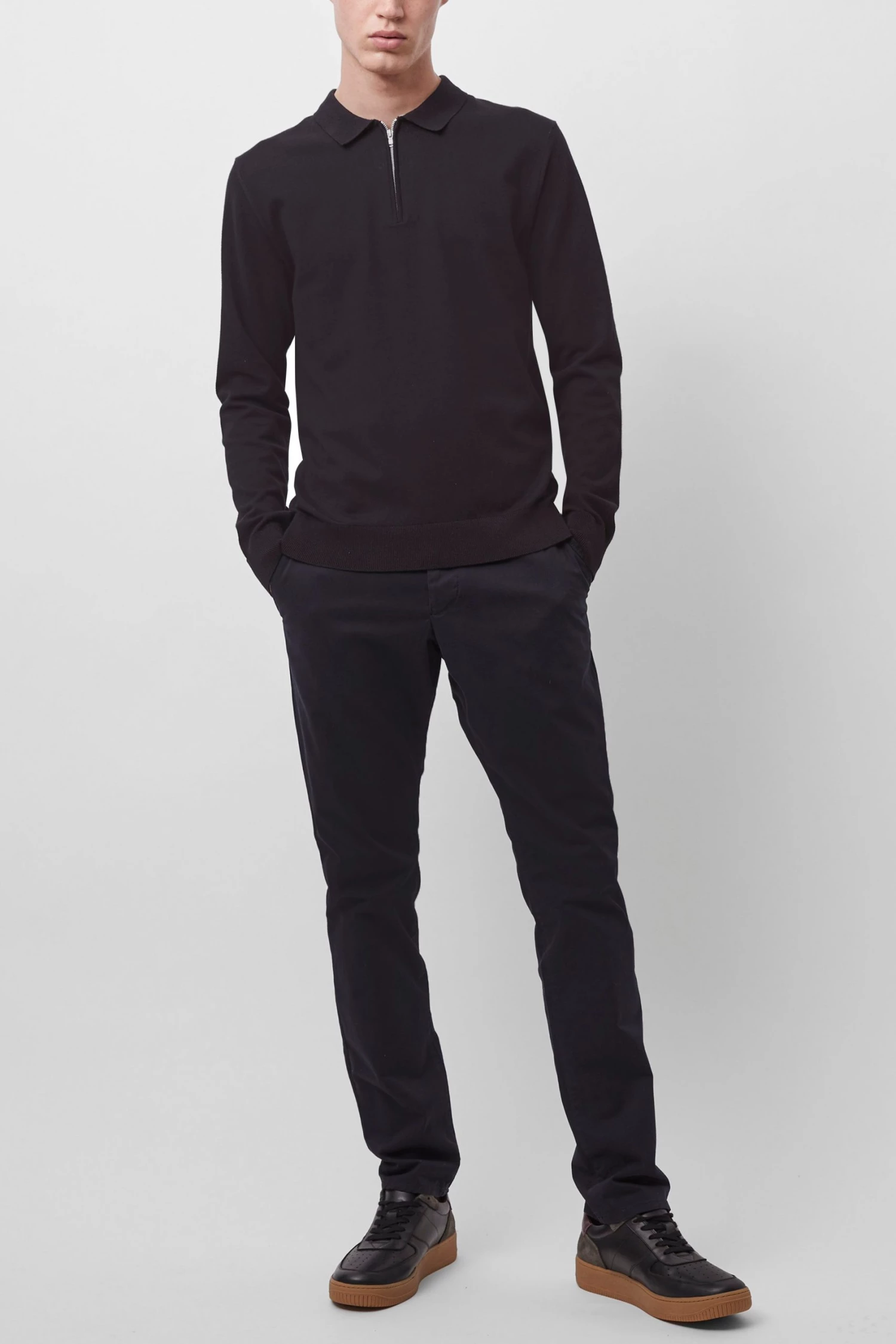 The ultra-modern Stretch Cotton Zip Polo Top brings a sleek aesthetic to your everyday. It features a sleek point collar, half-zip placket and eye-catching colour-block accents.