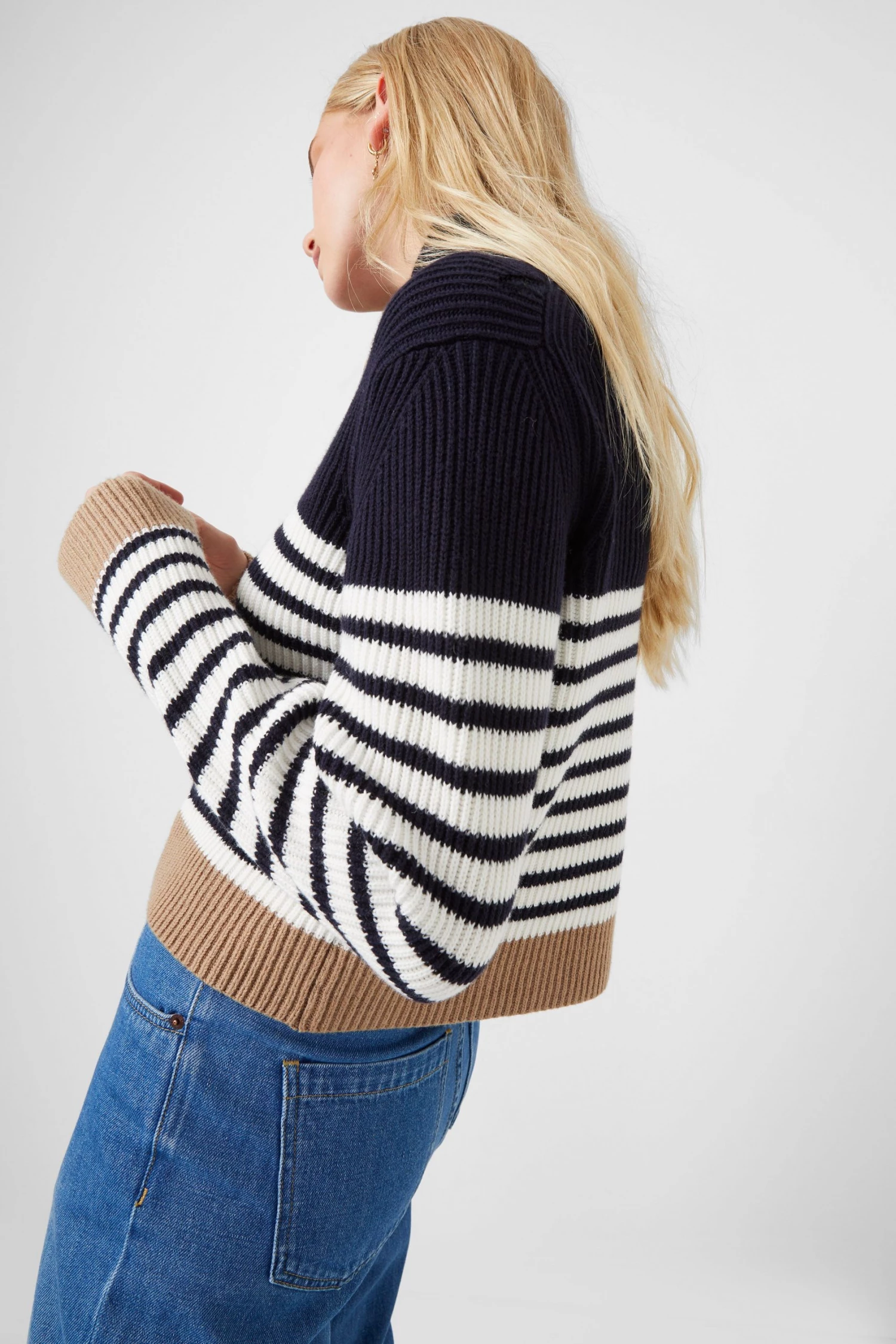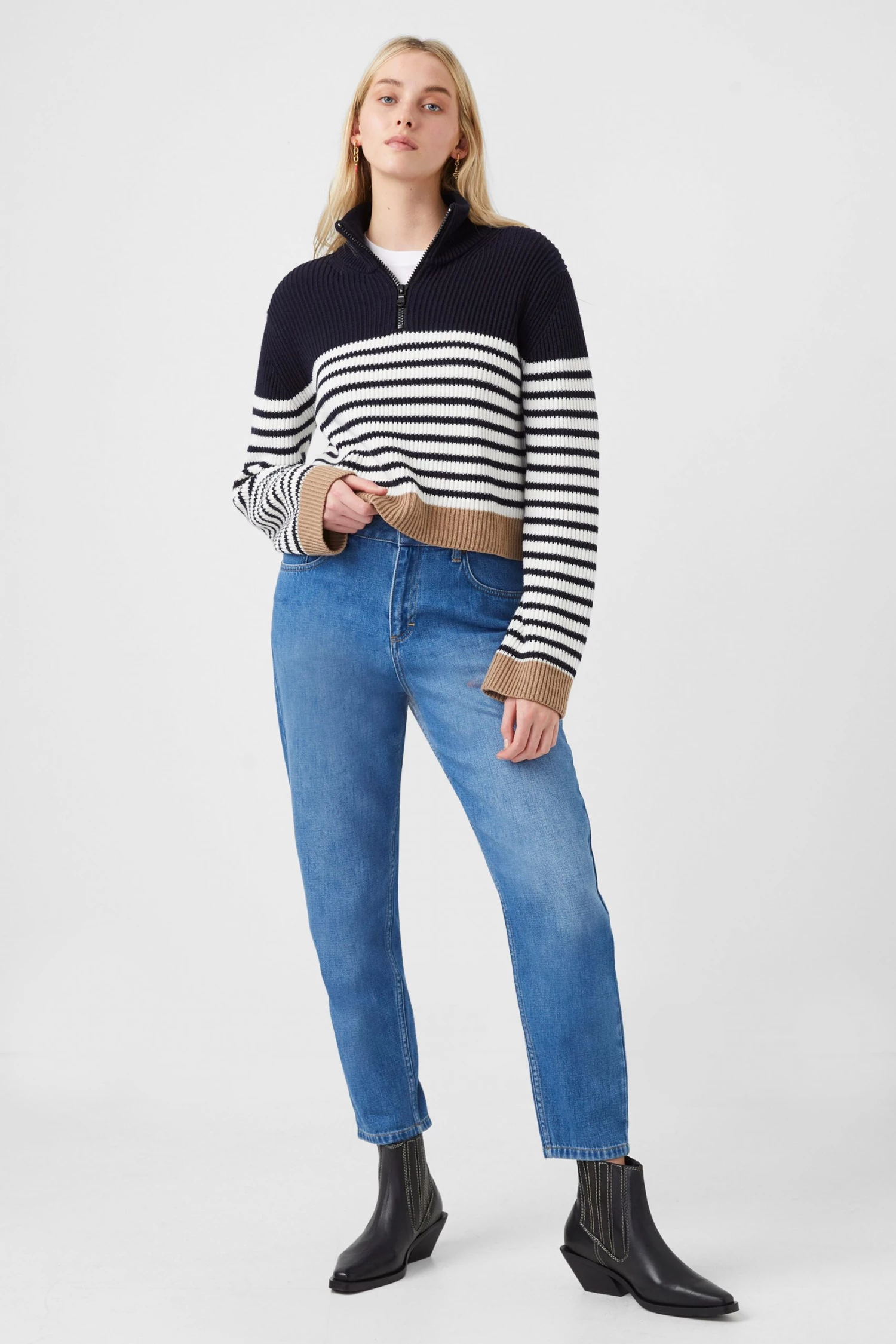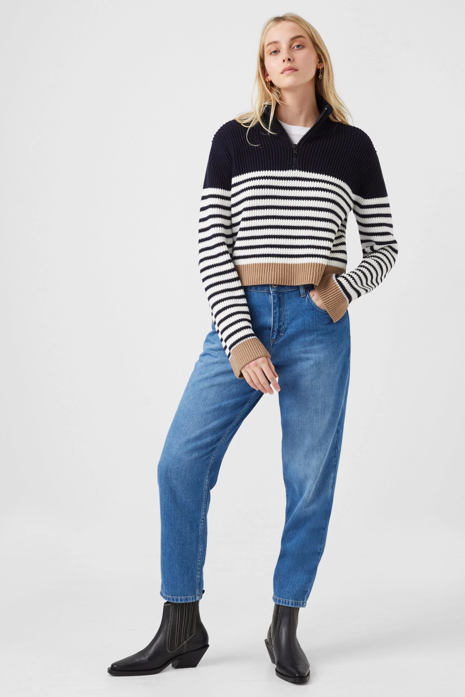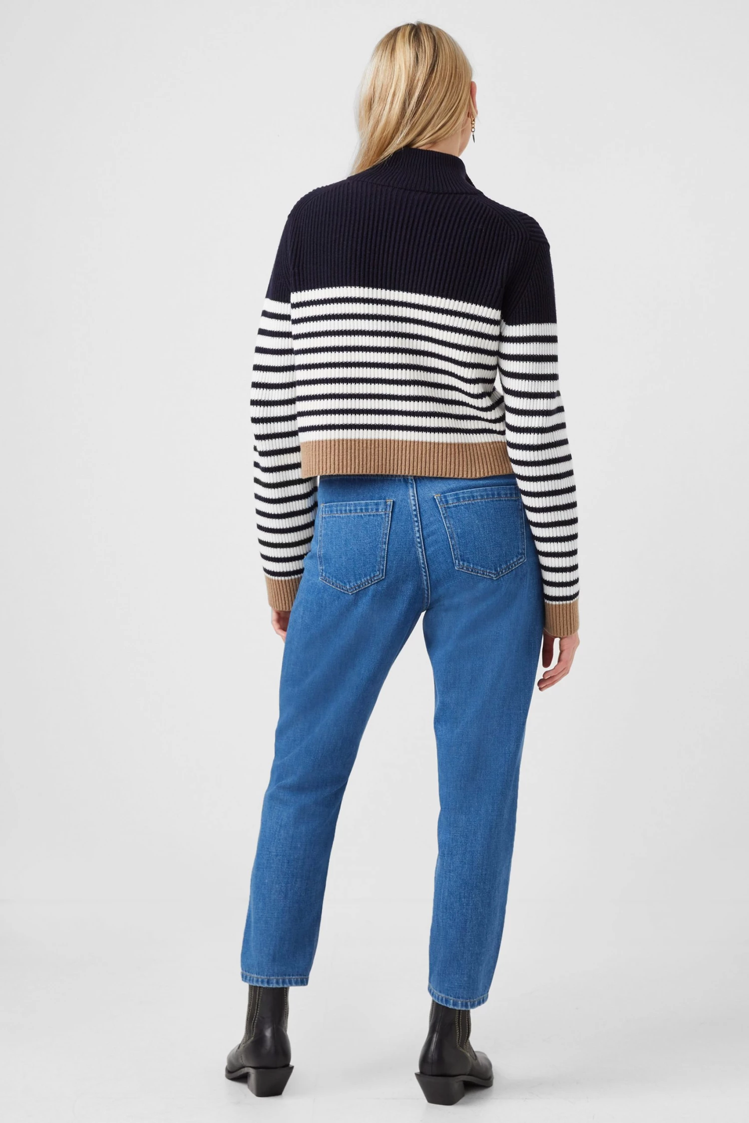 Keep transeasonal chills at bay with the Kai Half Zip Jumper. The soft layer is designed with a striped print, high neckline and a half-zip fastening.