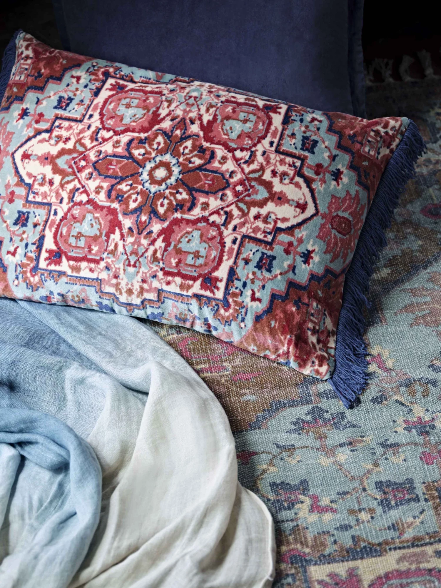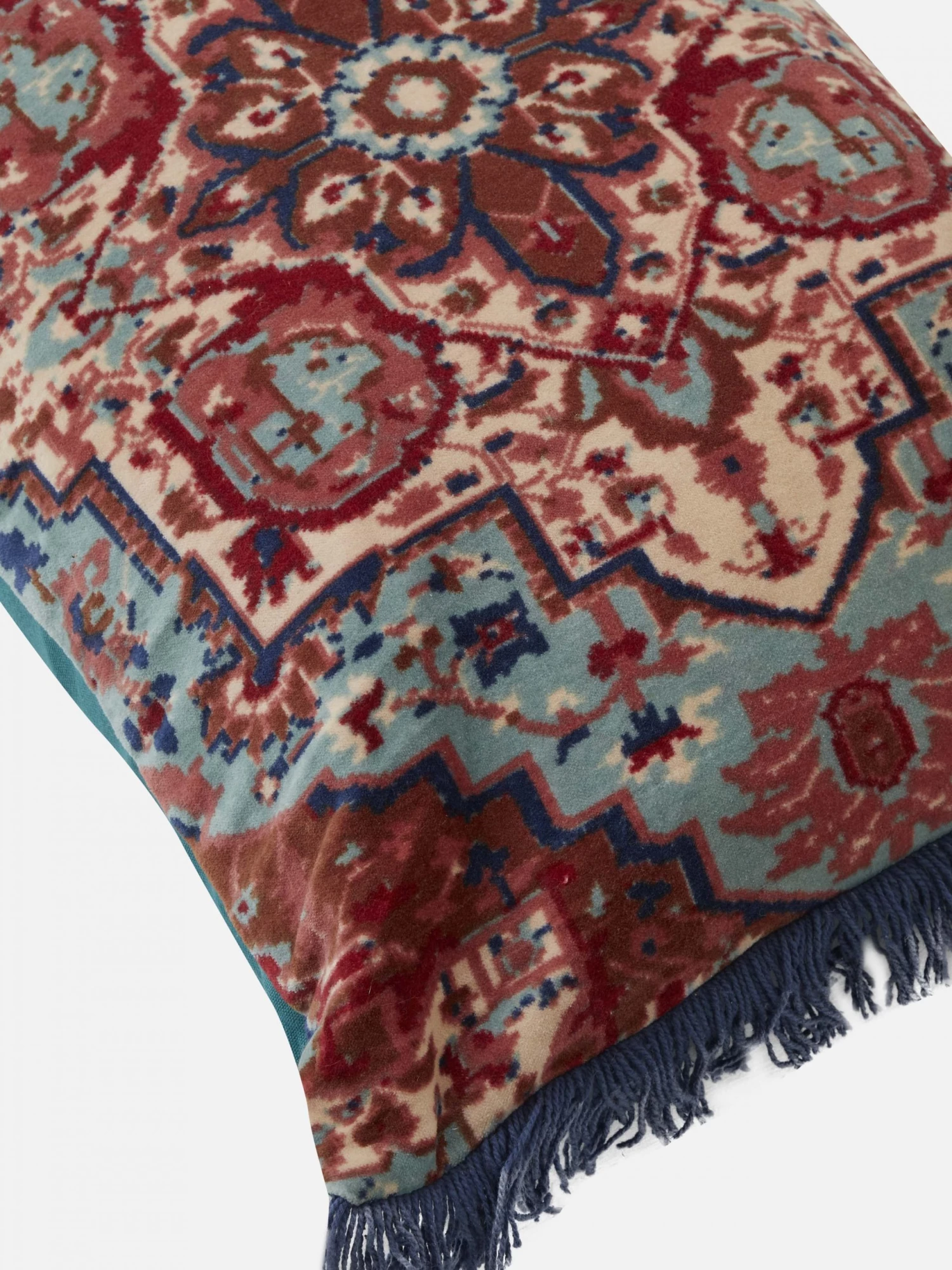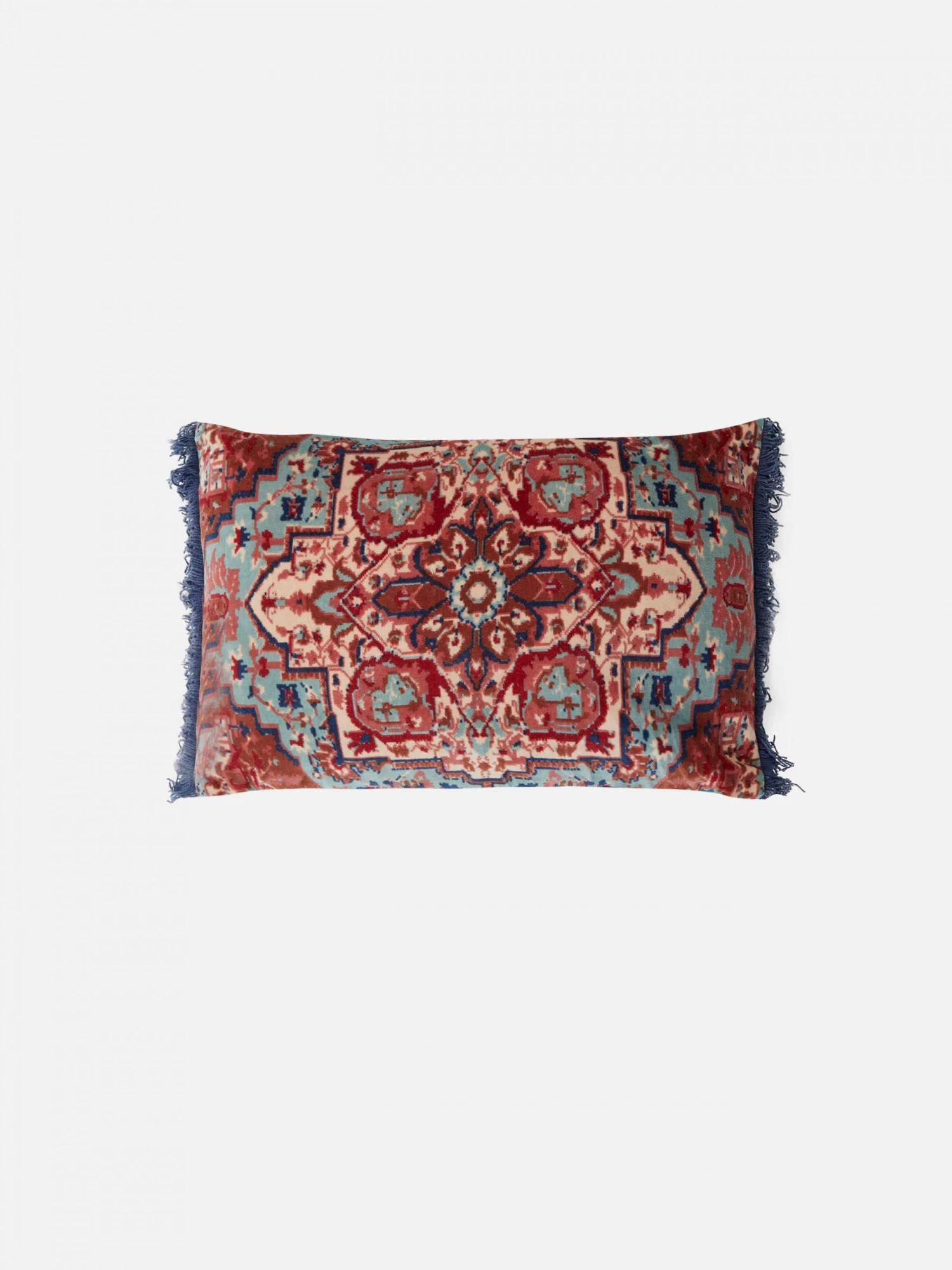 Accessorise your sofas and armchairs with the colour-popping Katrina Cushion. This ultra-plush design has a rectangular shape and a fringed trim, inviting everyone for a comfortable nap. Use it in a space with the coordinating rug for a boho-focused aesthetic.