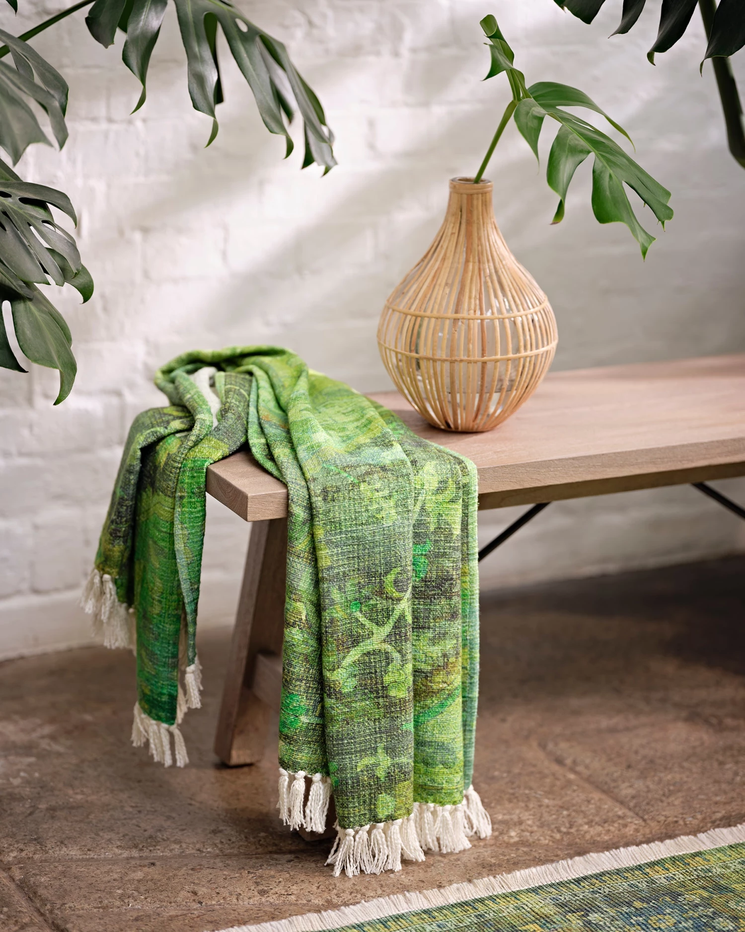 Cascade the Keithia Forest Throw across your armchair, sofa or bed for an effortlessly endearing accessory. The earthy tones and deliberate love-worn appearance only enhance the vintage-inspired print, whilst the fringed edges make for a playful finishing touch.