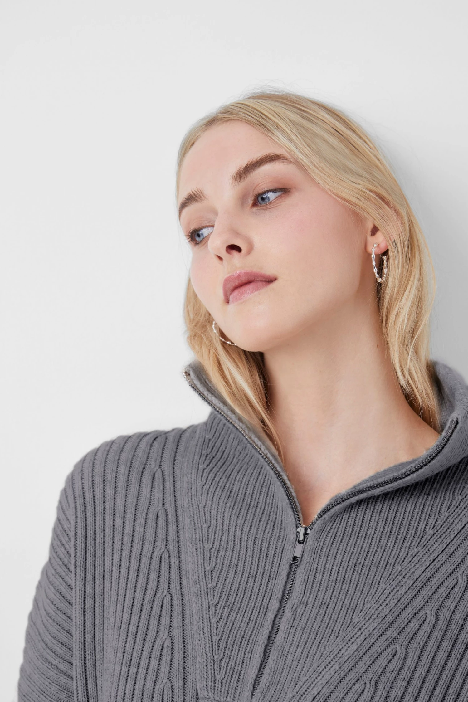 - Zip high neckline