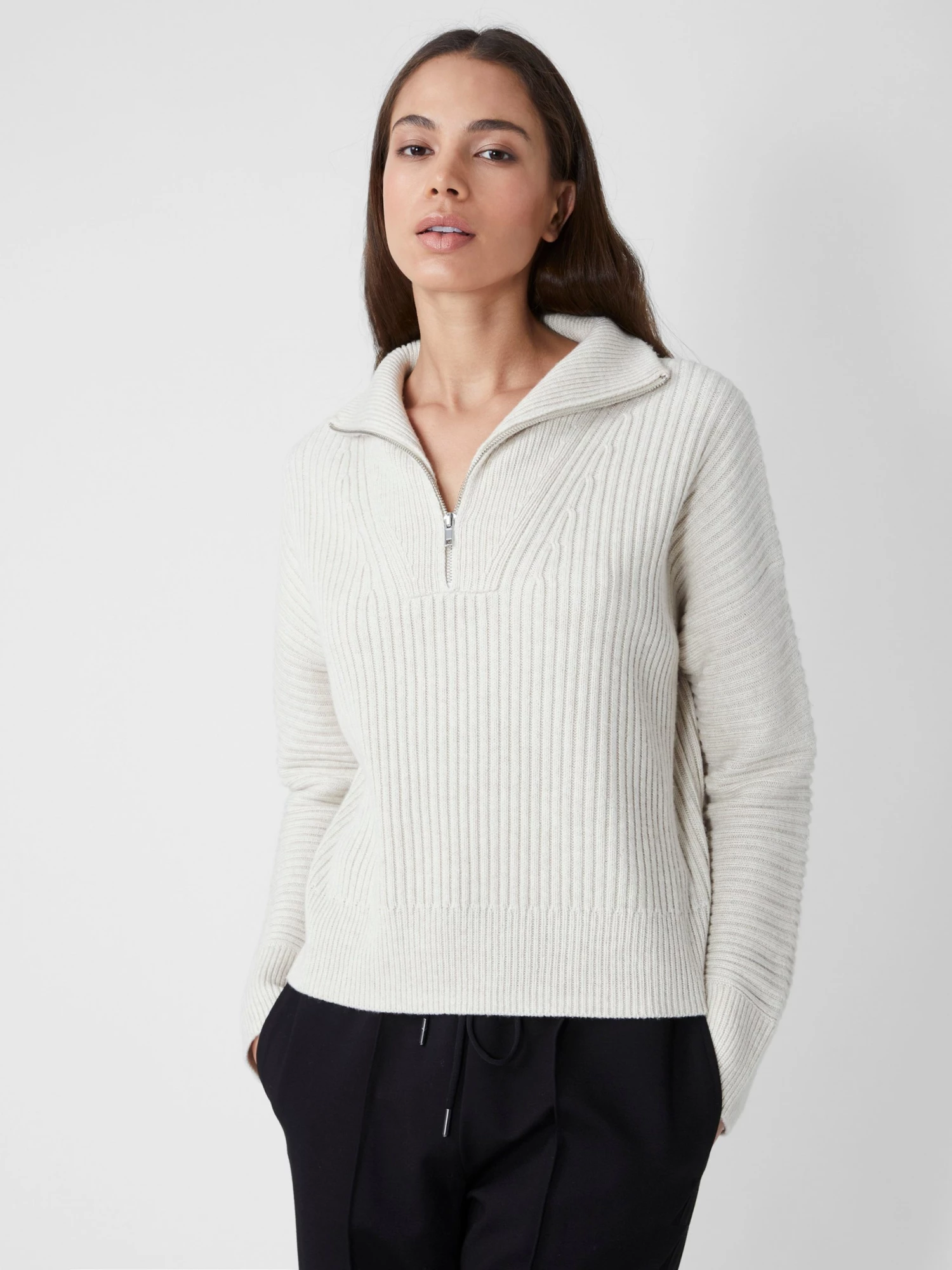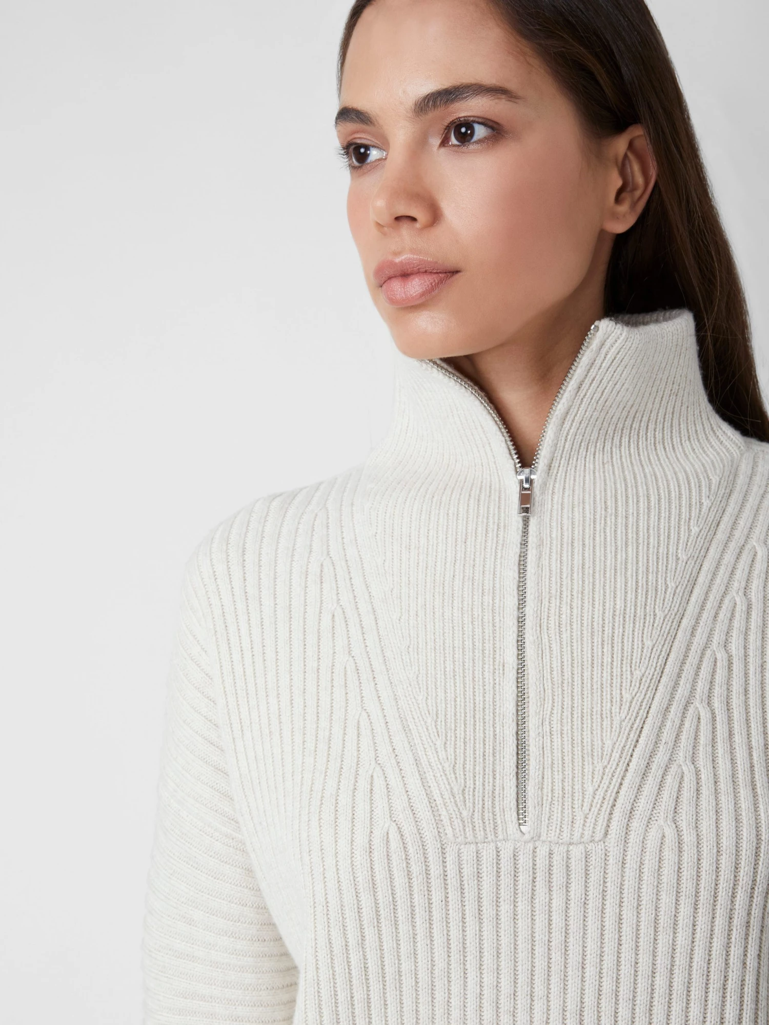 The Lana Knits Half-Zip Jumper is the archetype of transitional dressing. Its soft silhouette has a ribbed texture, half-zip fastening and high neckline.