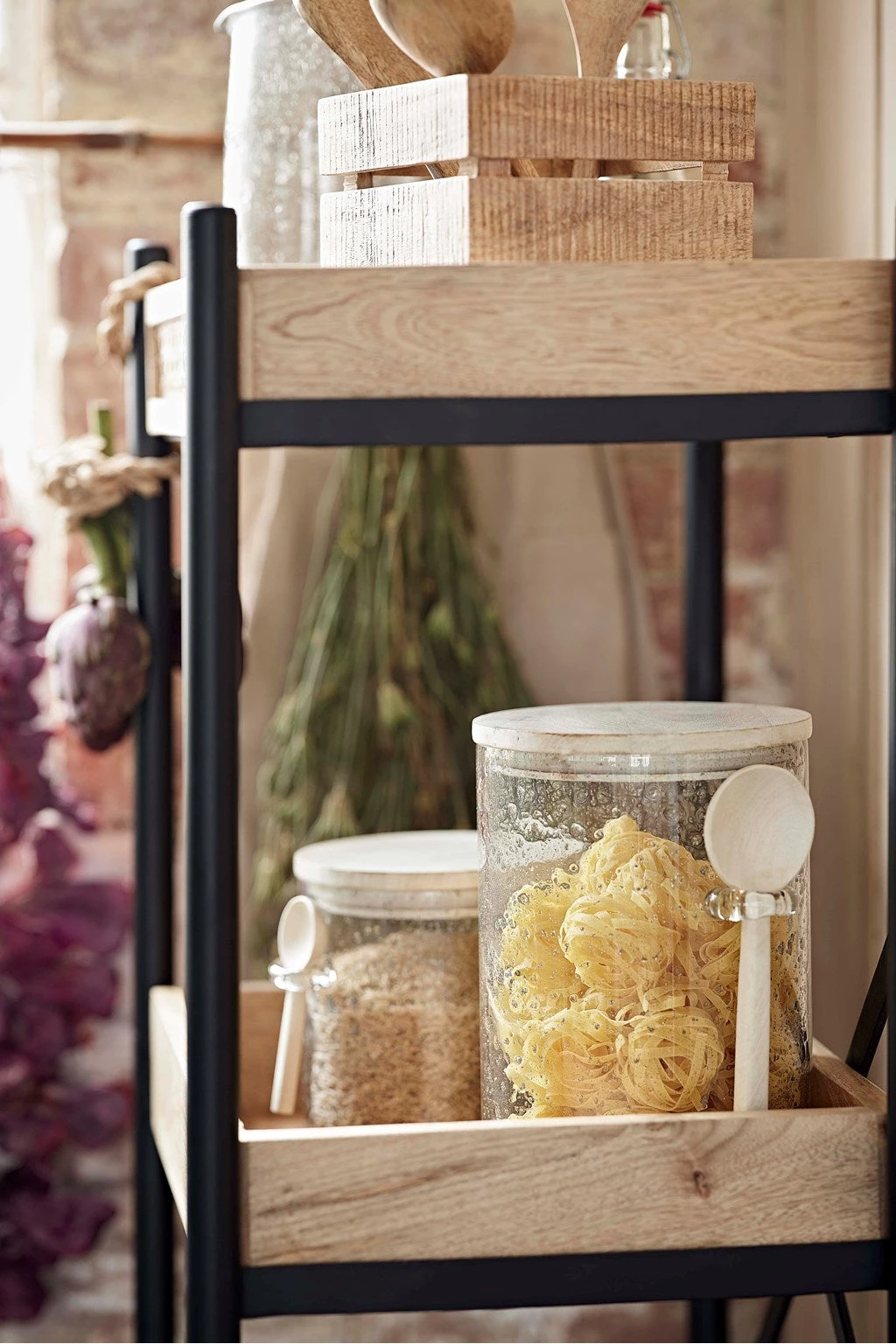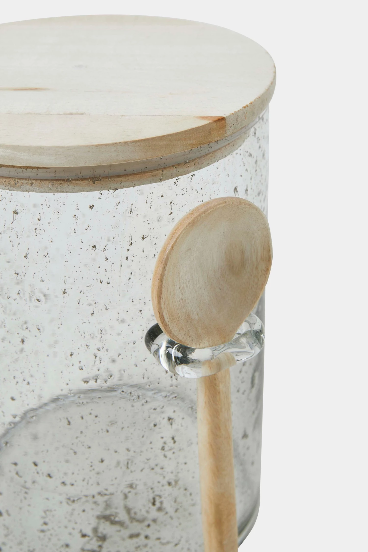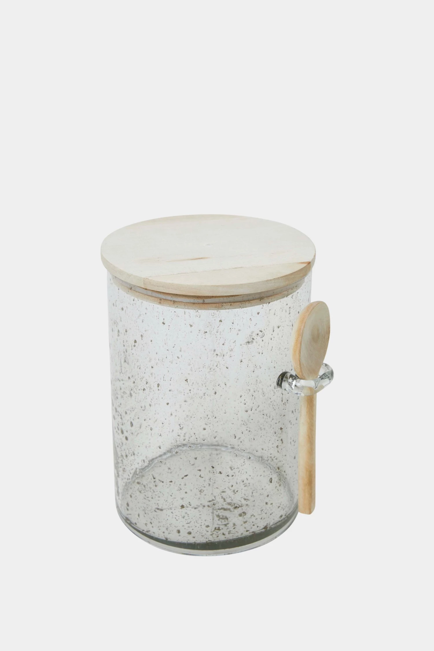 Store your kitchen essentials in style in the Large Storage Jar. Handcrafted from recycled glass with a wooden lid and spoon, it’s the perfect piece to house your grains, granola or whatever takes your fancy.