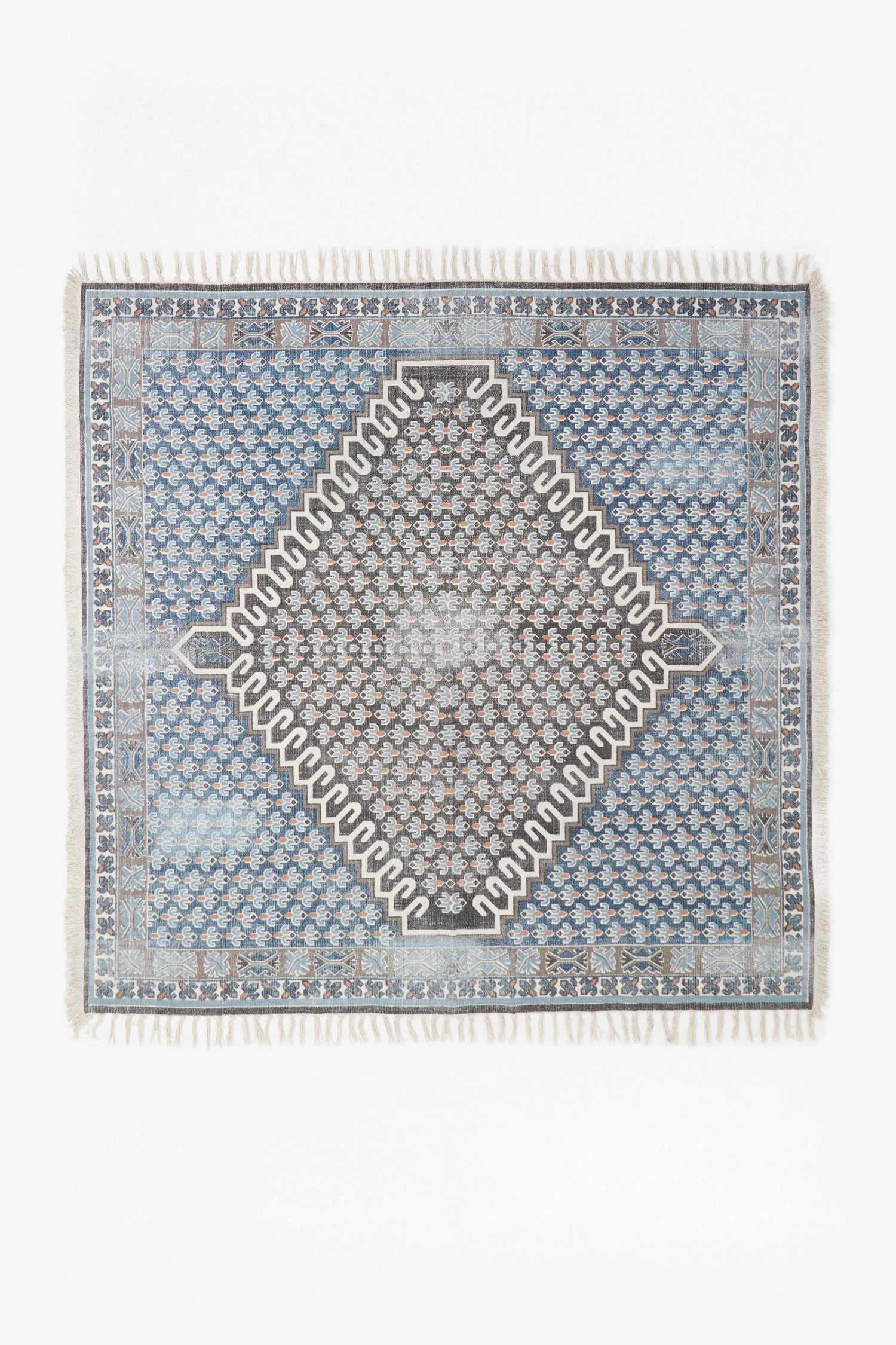 - Screen-printed dhurrie-style rug