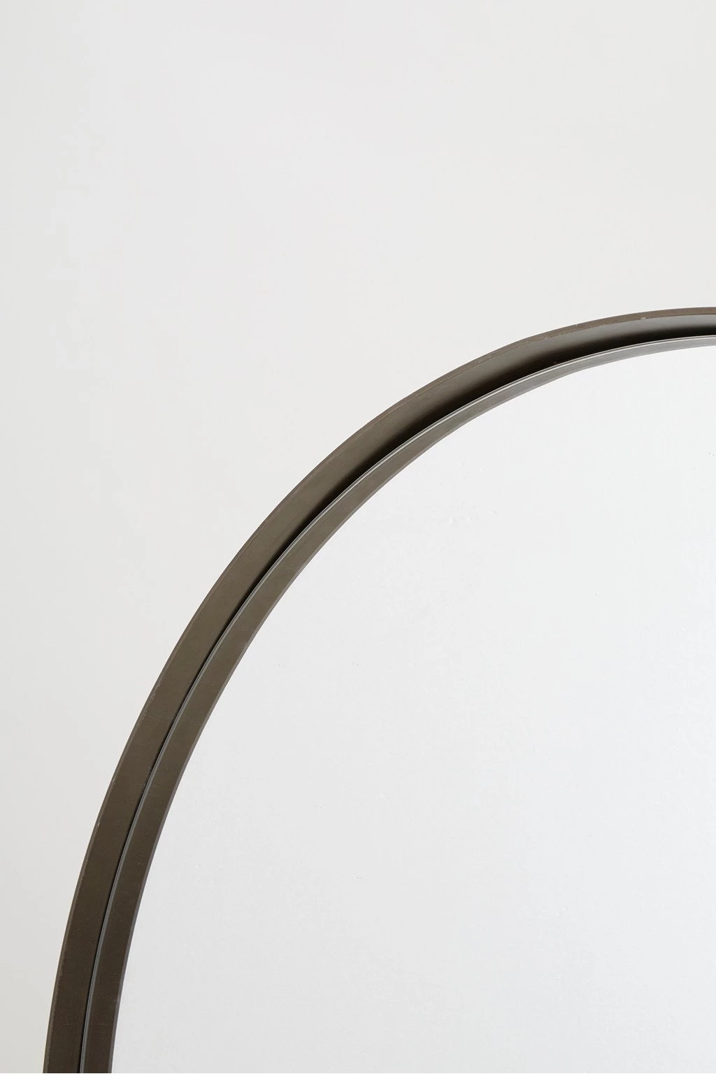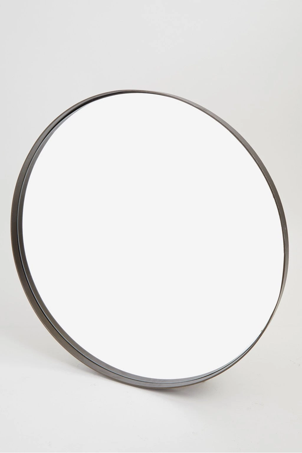 If you favour an industrial aesthetic, the design of this large round iron mirror will slot seamlessly into your interior. It features clear glass and a brass frame. See how it brings a rugged feel to fresh white tiles or a painted wall.