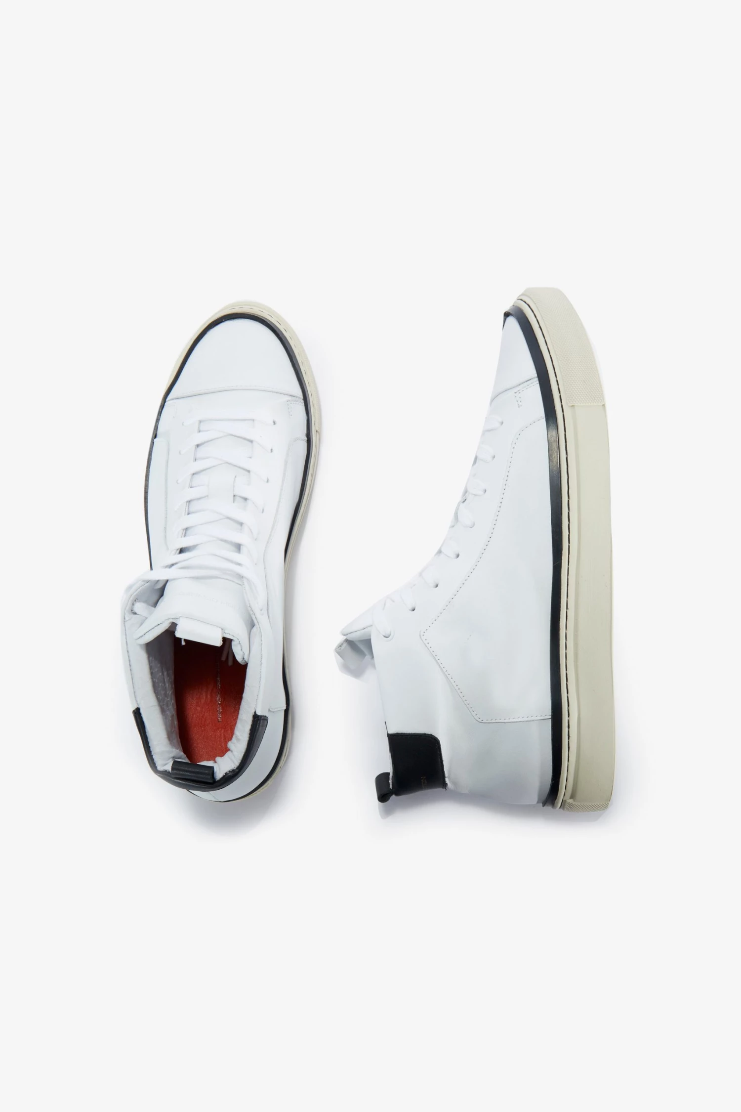 The Lars Logo High Top Trainers are a classic shoe with added interest. Designed in supple leather, they feature blocked black accents at the heel and sole.