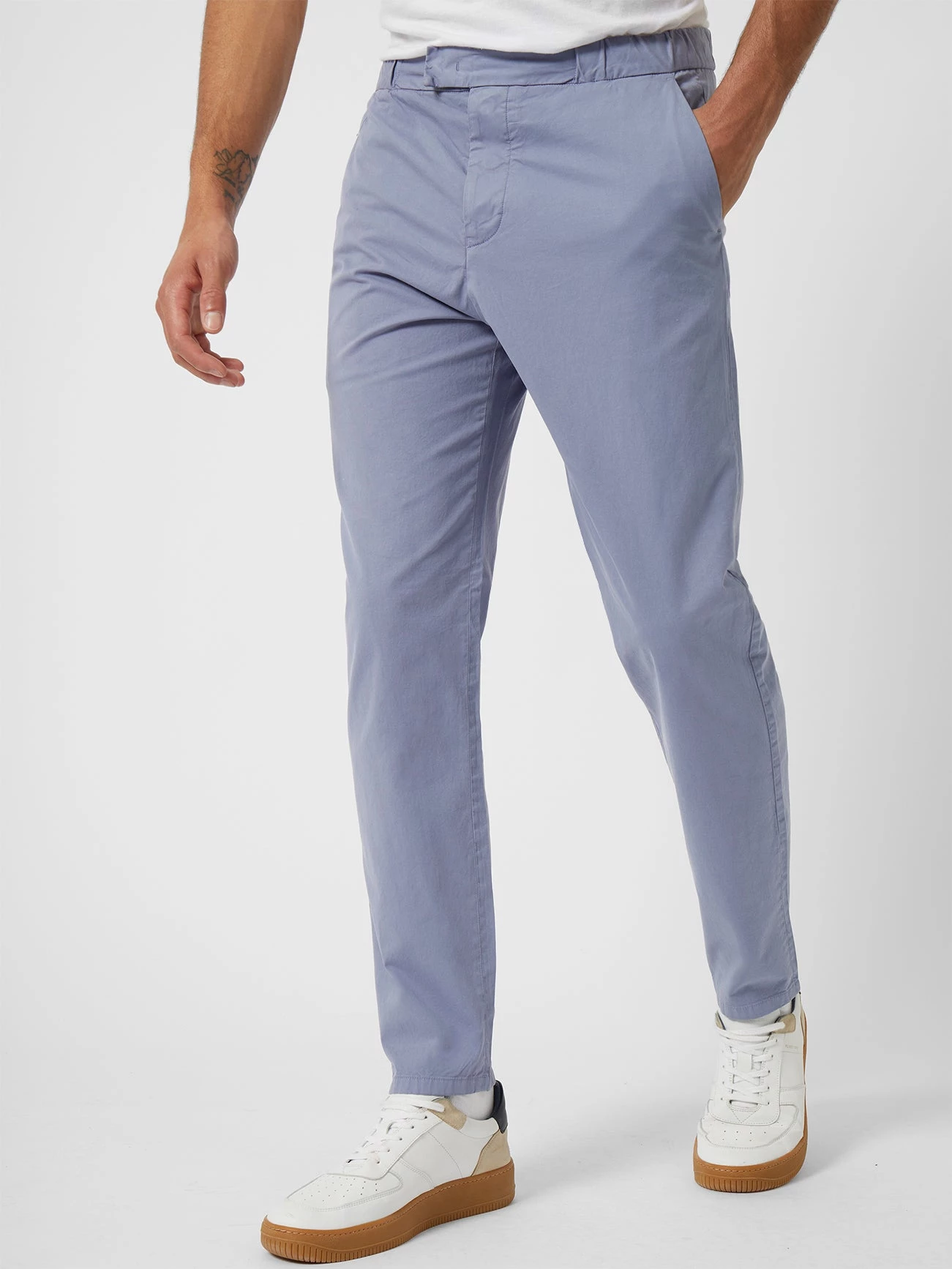 Achieve a smart look without sacrificing comfort with the Light Machine Stretch Chinos. The tapered pair features an elasticated waist, four pockets and hook-and-eye fastening.