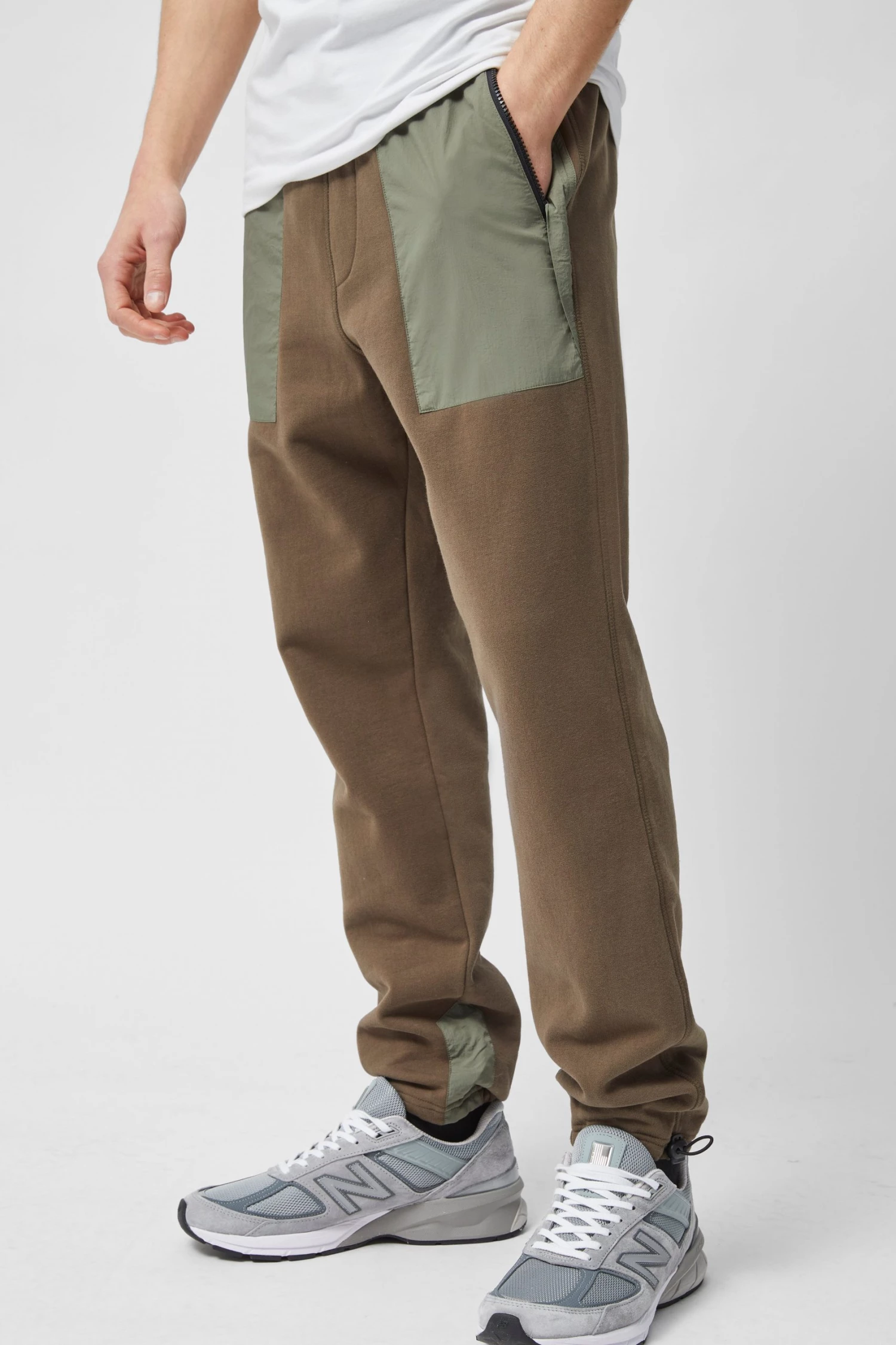 - Colour-block nylon panels