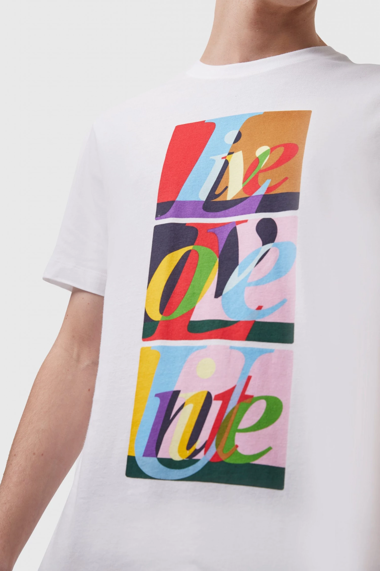 Embody a positive attitude in the Live Love Unite T-Shirt. Boasting a vibrant multicolour graphic, round neckline and classic fit, it embraces mood-boosting optimism.