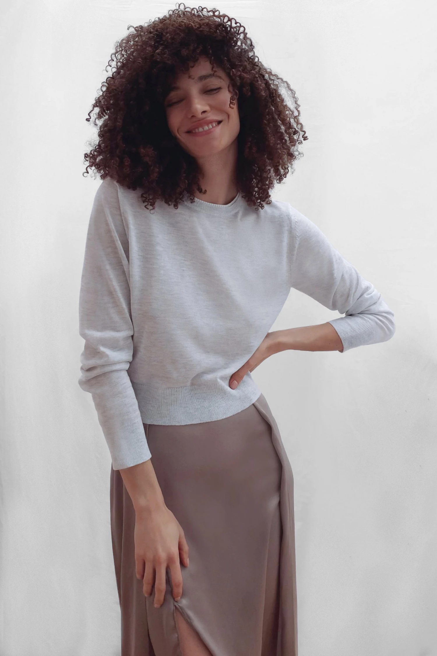 Kickstart your transeasonal portfolio with our Loxi Recycled Crew Neck Jumper. The soft staple is crafted with a round neckline, long sleeves and subtle cropped fit.
