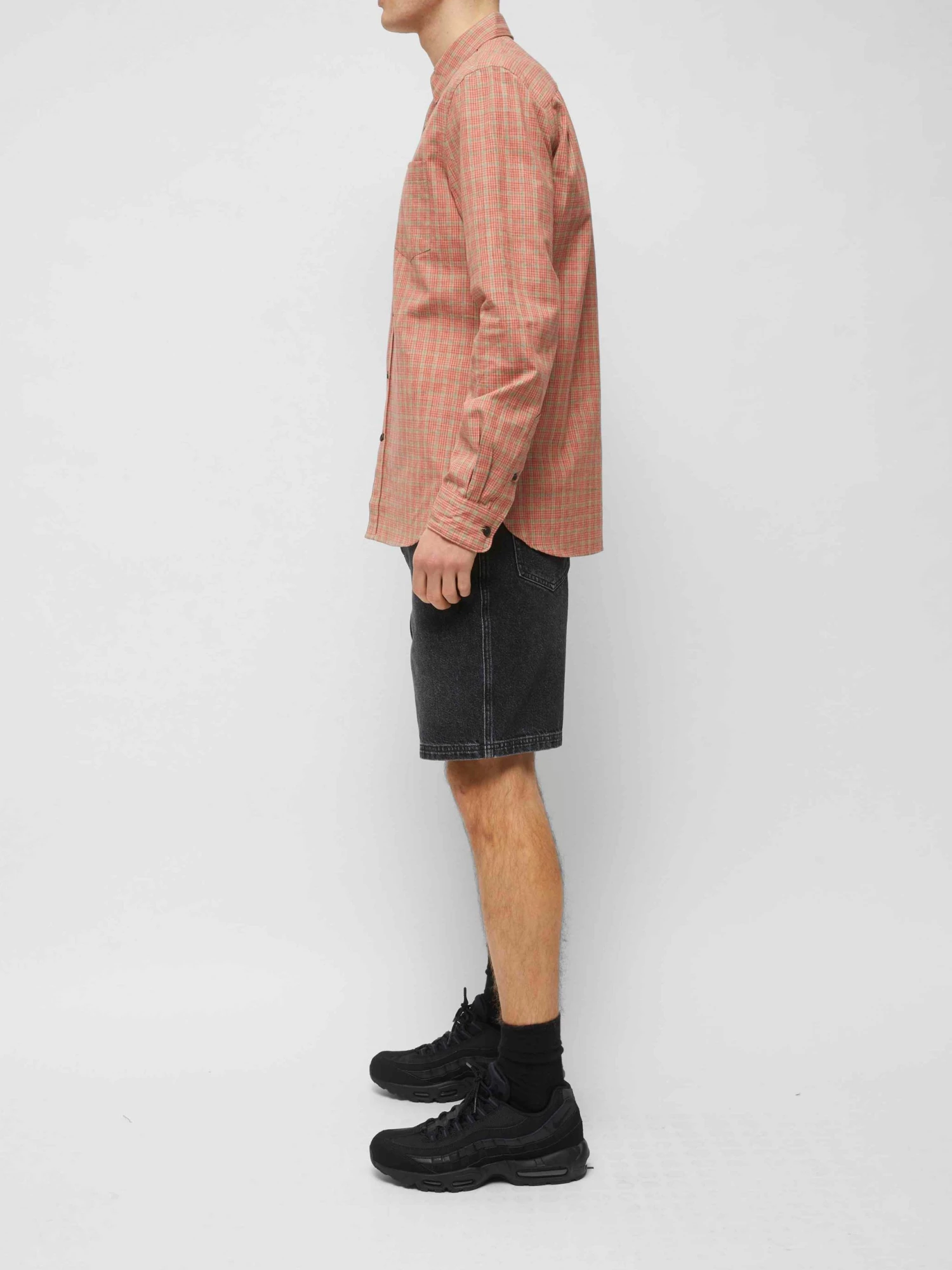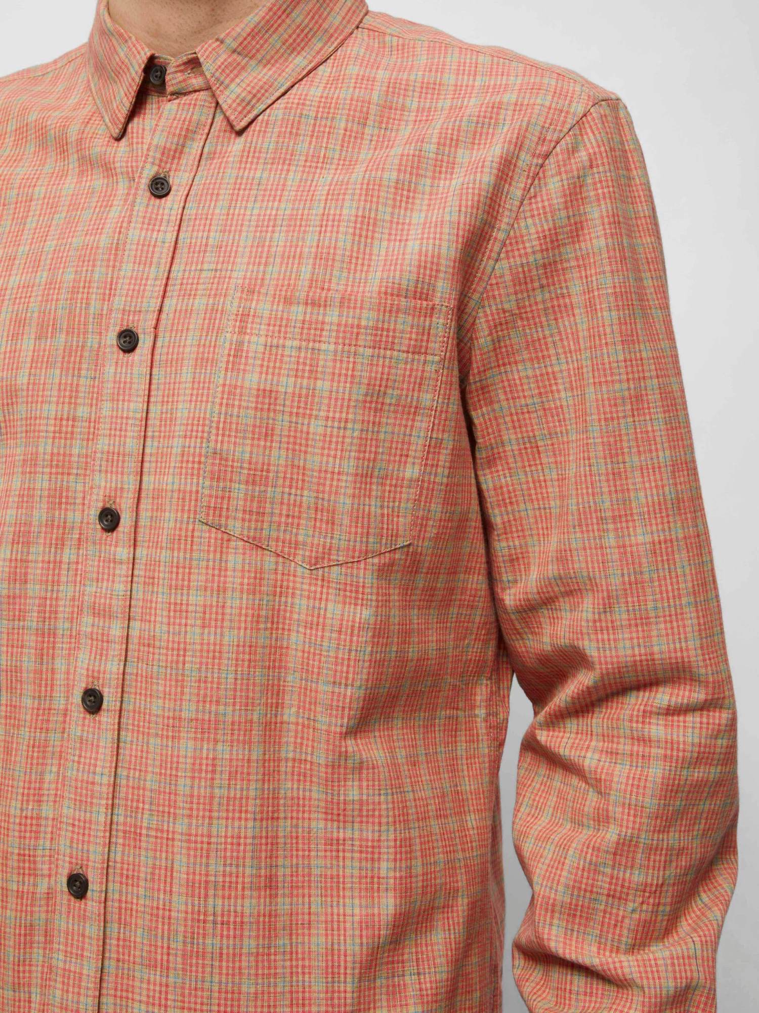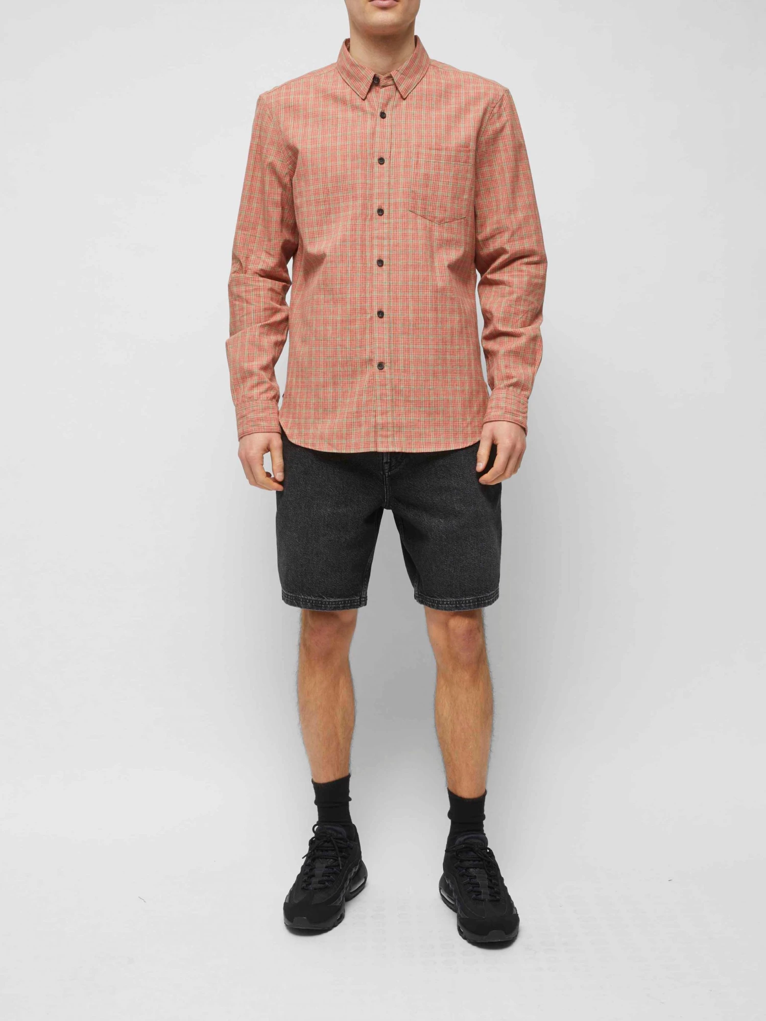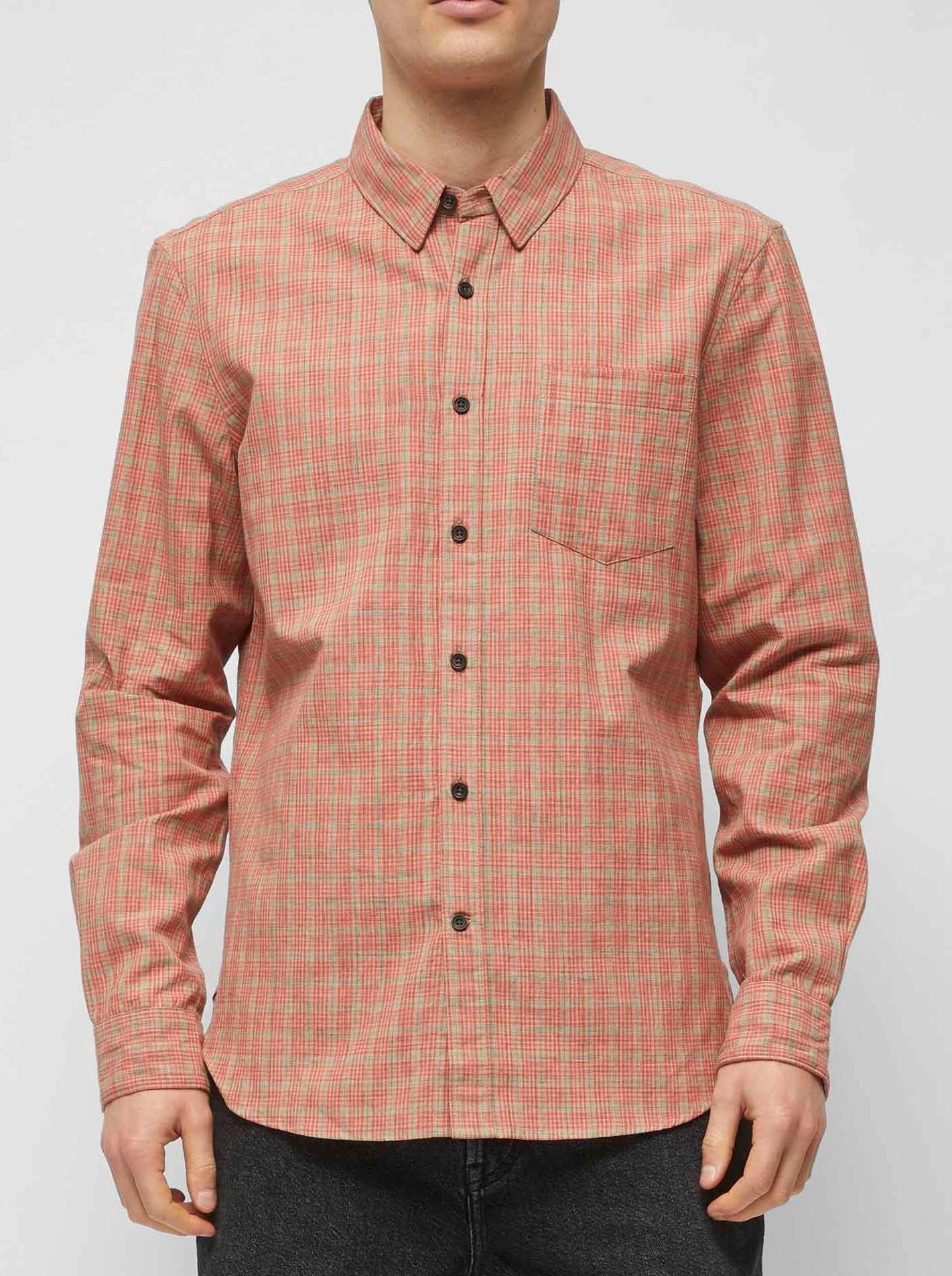 A new cool shirt on the block, the Madley Check Shirt has a lightweight silhouette and neutral-hued print, as well as dark buttons.