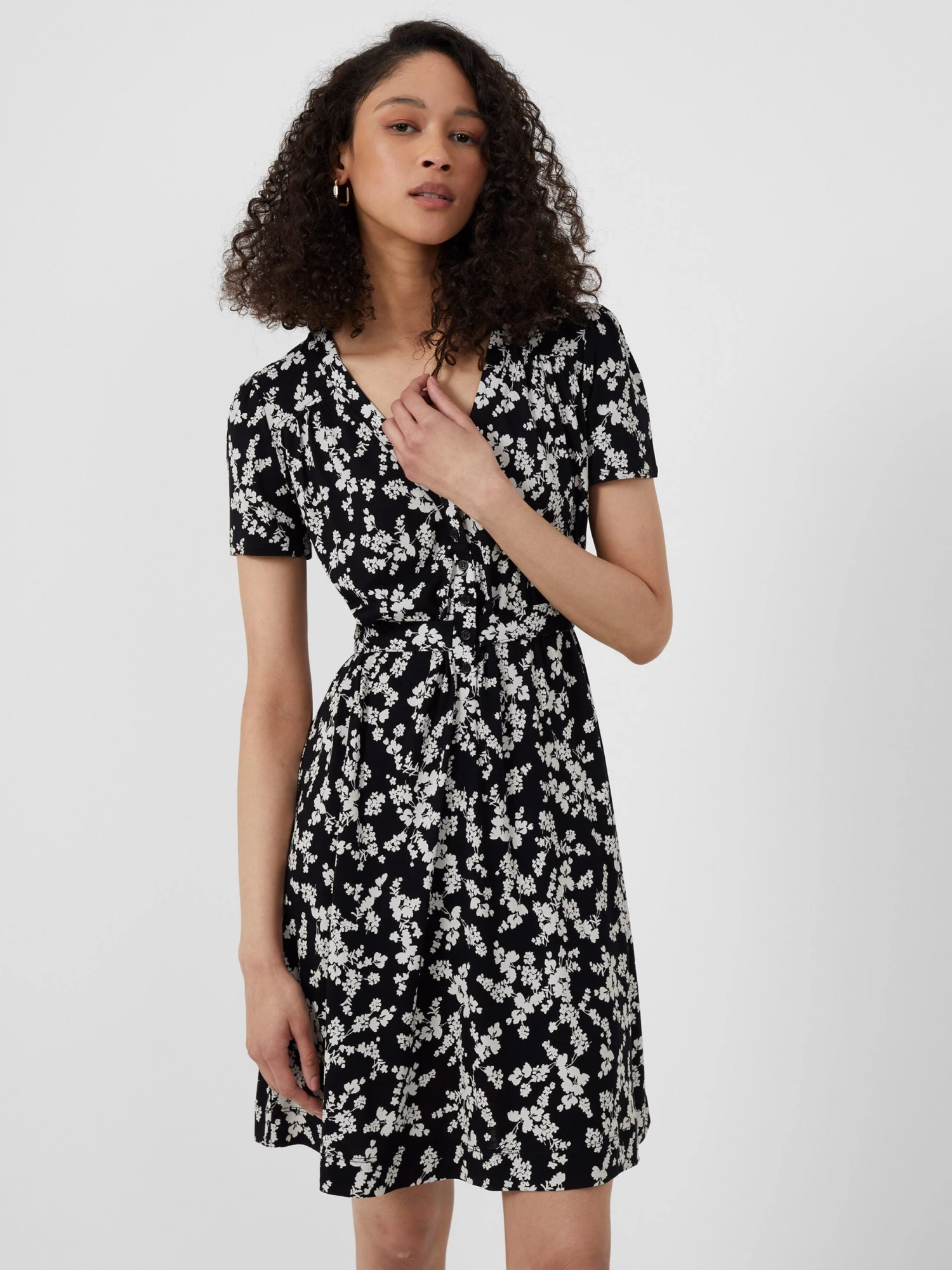 One for all your garden party and BBQ plans. The Floral Meadow Jersey Dress has a short length, lightweight fabric printed with monochrome florals and tie waist.