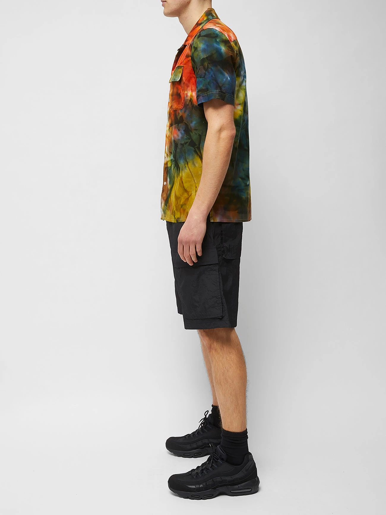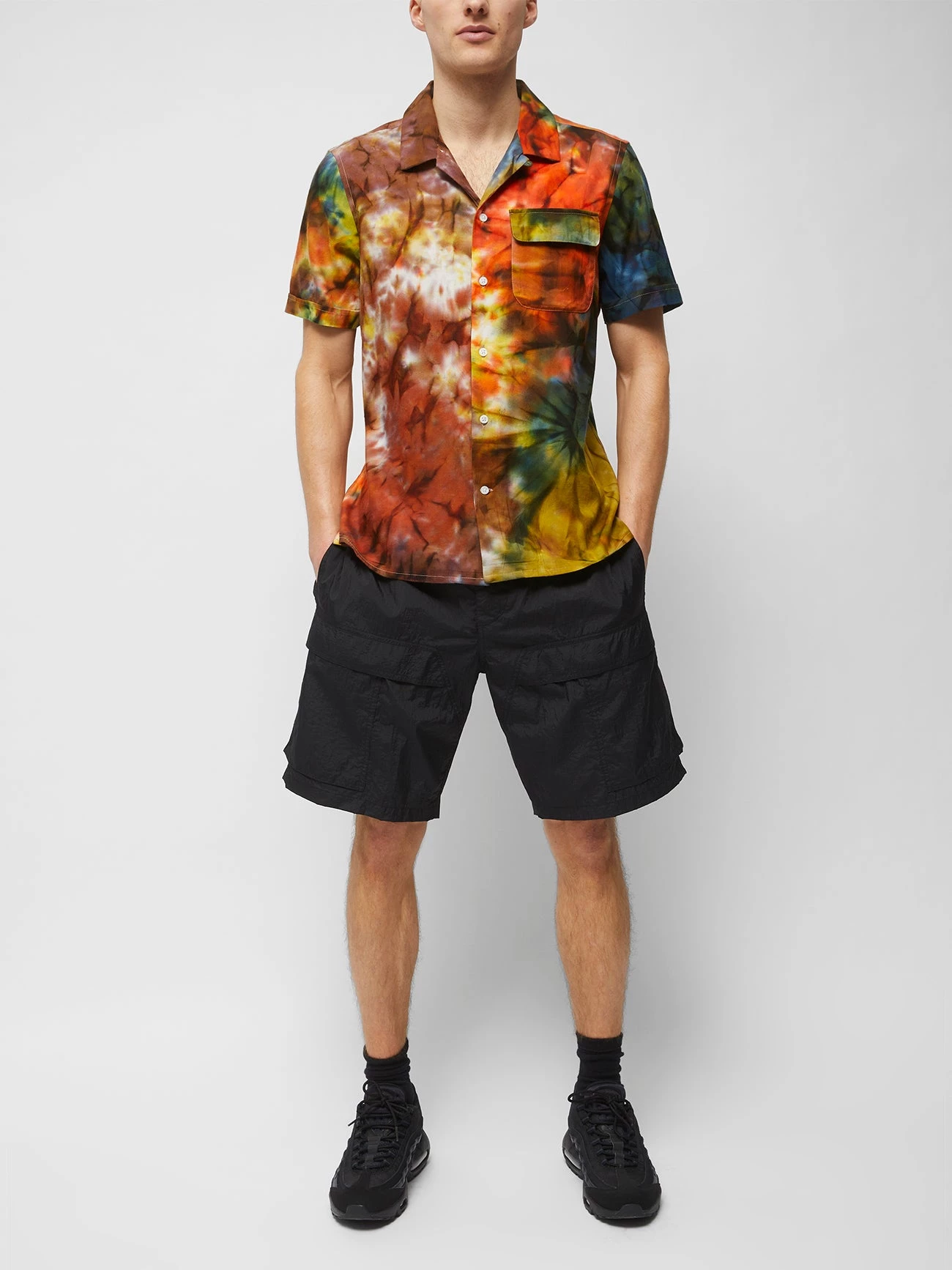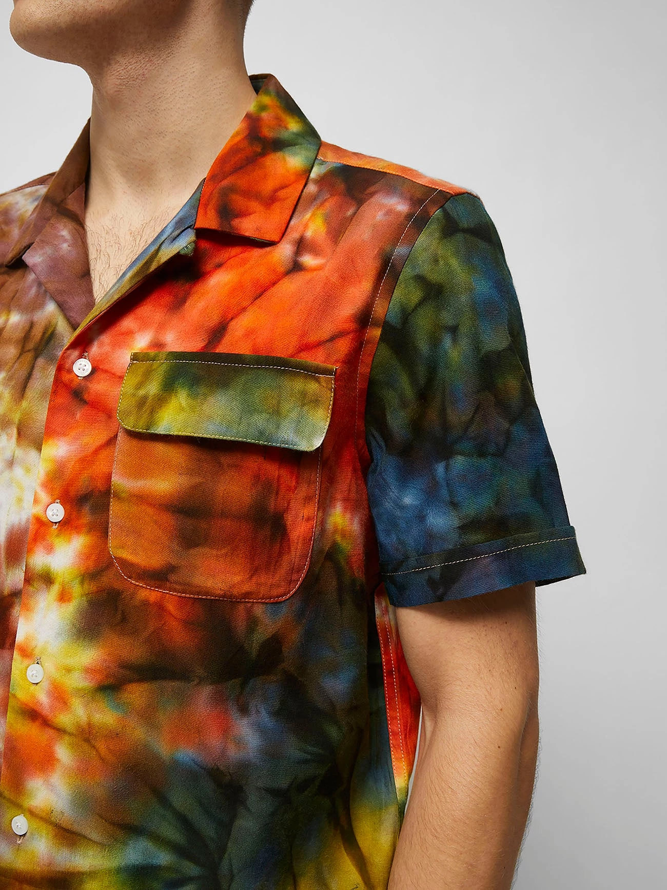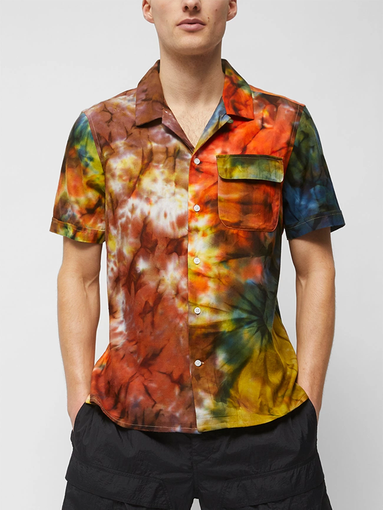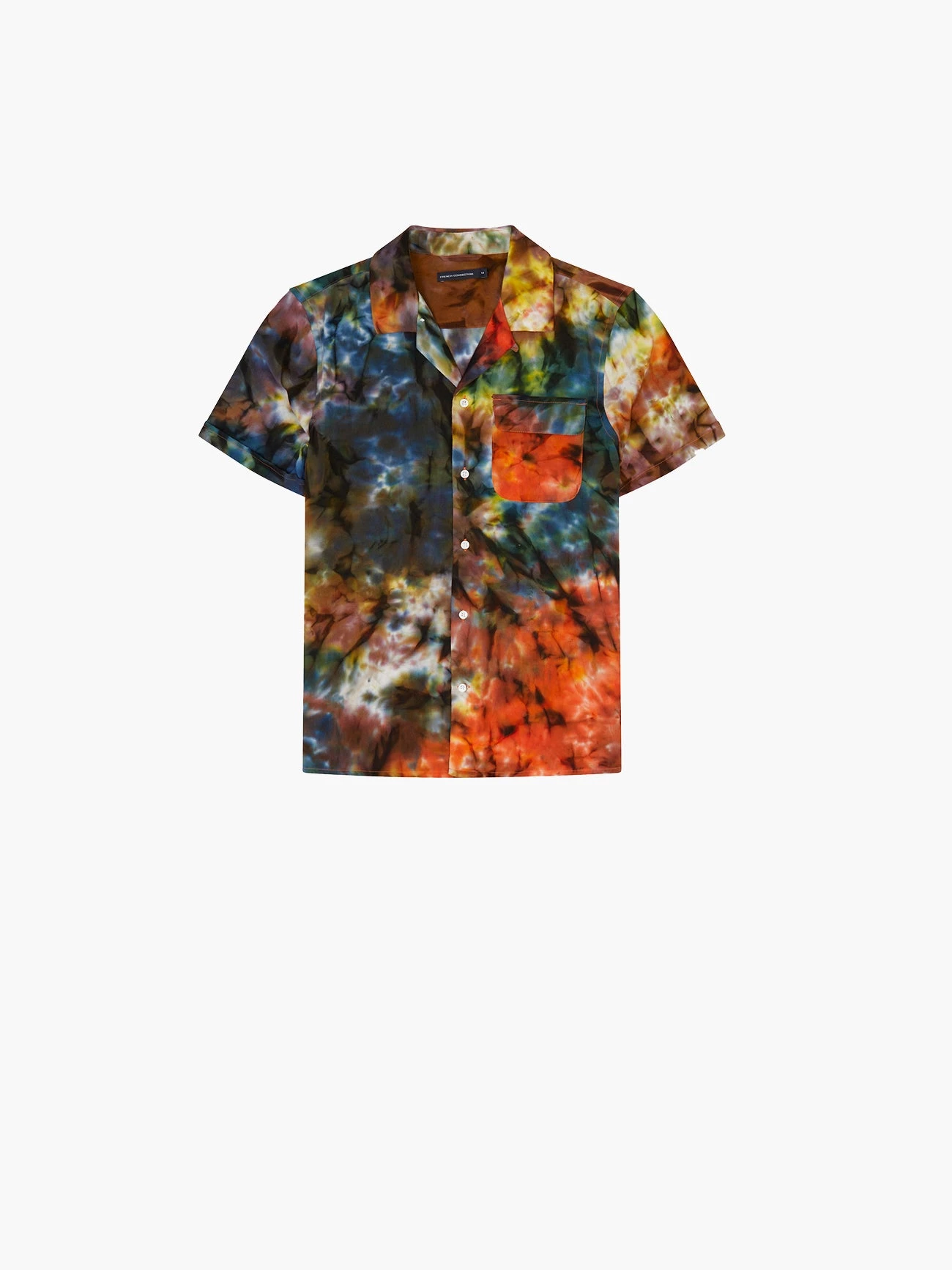 Paint your wardrobe with the Multi Tie-Dye Camp Collar Shirt. Bursting with colour, it has a tie-dye print and casual look.