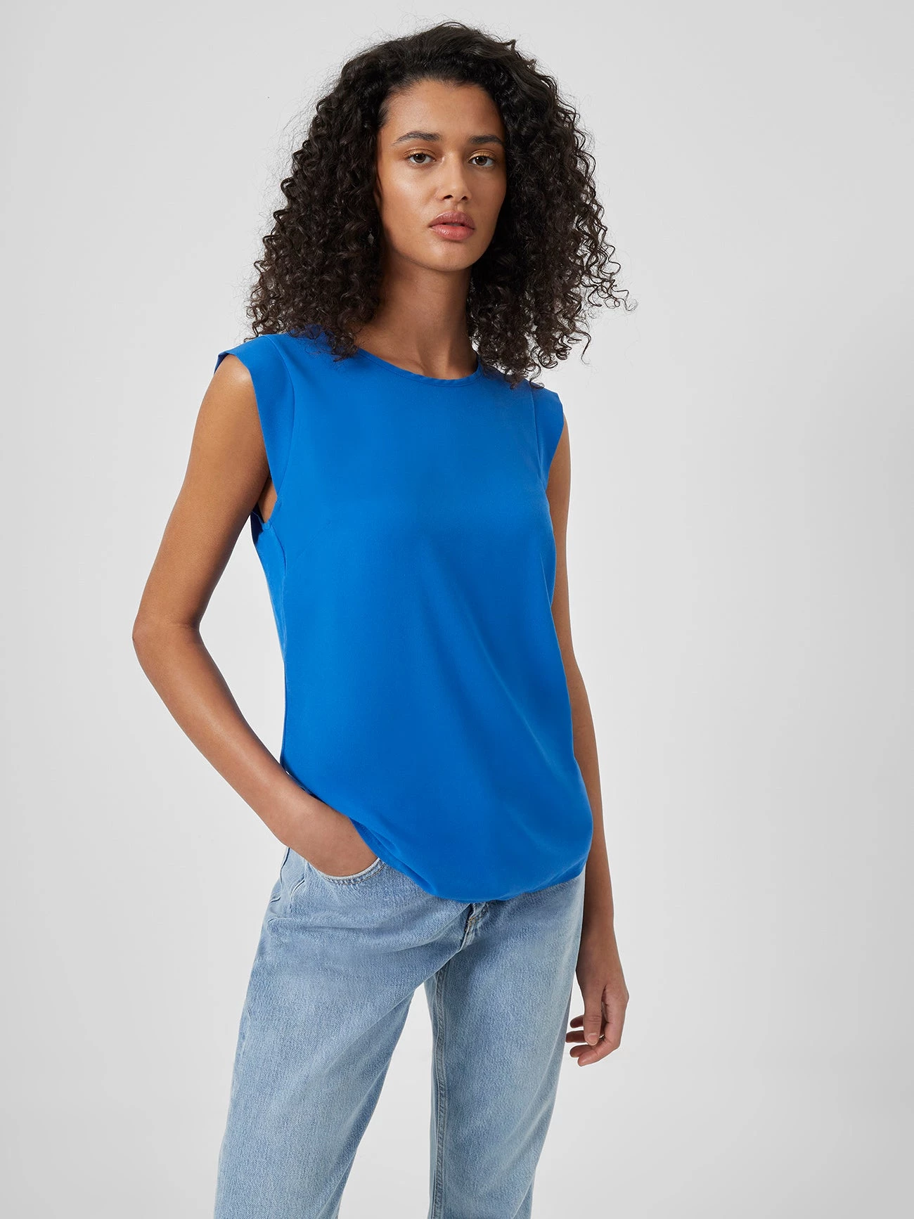 We love a go-to versatile staple, and the Crepe Light Capped Sleeve Top understands the assignment. In its bold block hue, this top has a round neckline and capped sleeves for a lightweight relaxed fit.
