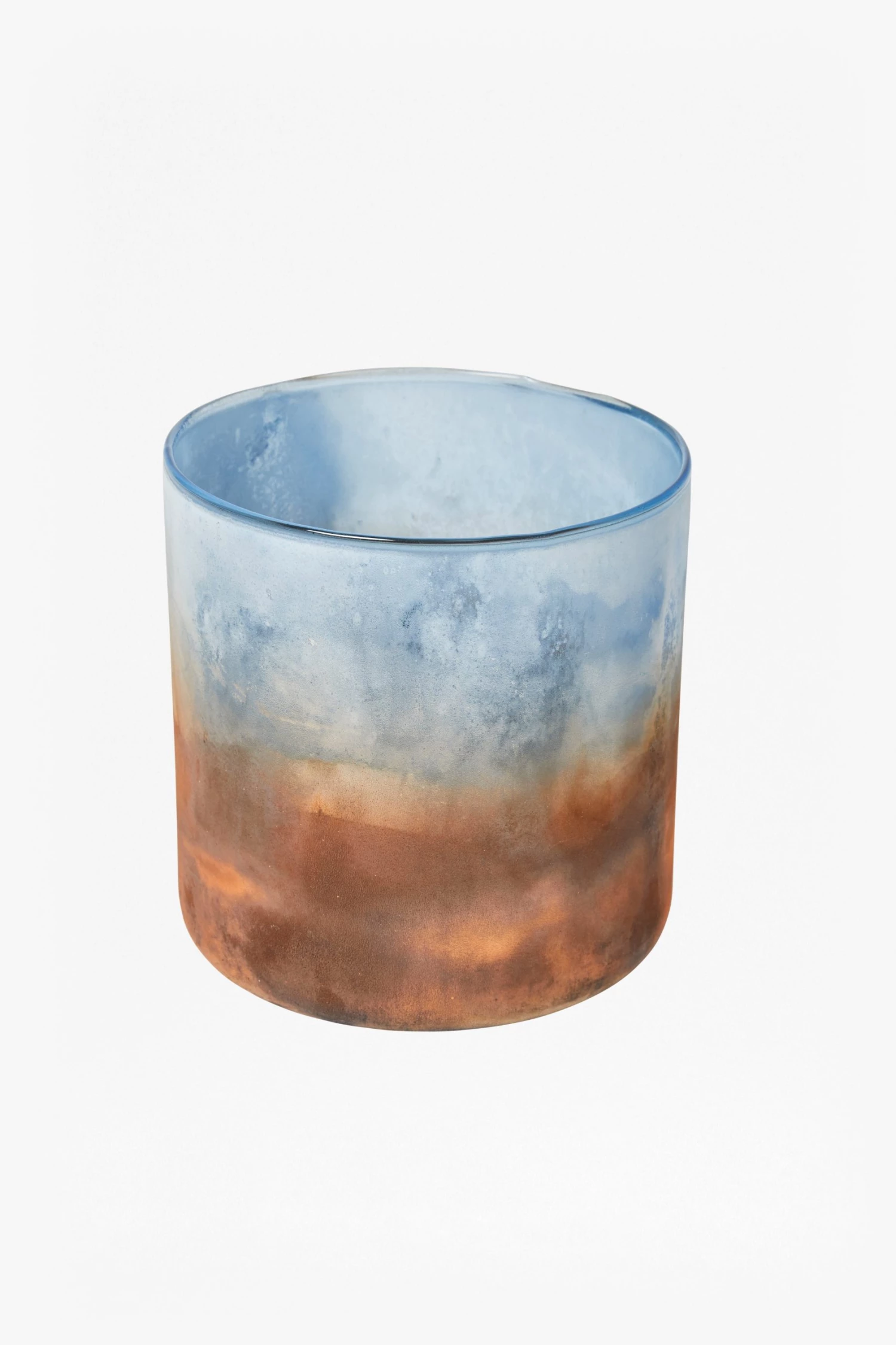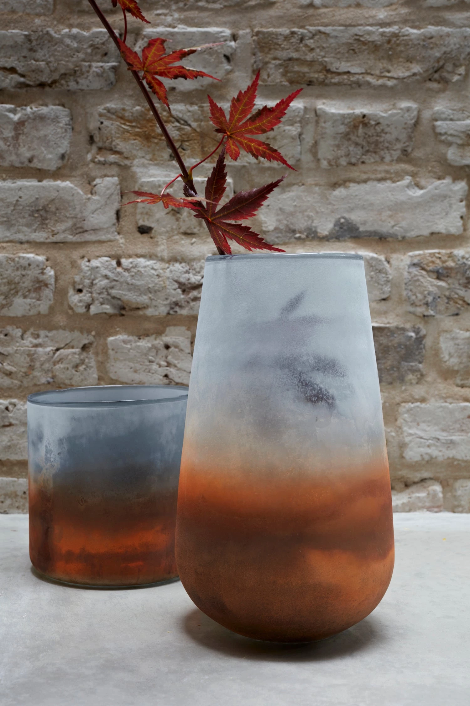 Create a truly unique aesthetic in your space by mixing and matching textures and tones. The Ombre Cylinder Vase will add interest to your interiors with its contrasting light sky blue and rustic terracotta tones. This eye-catching vase will stand proudly amongst your curated collection of decorative objects.
