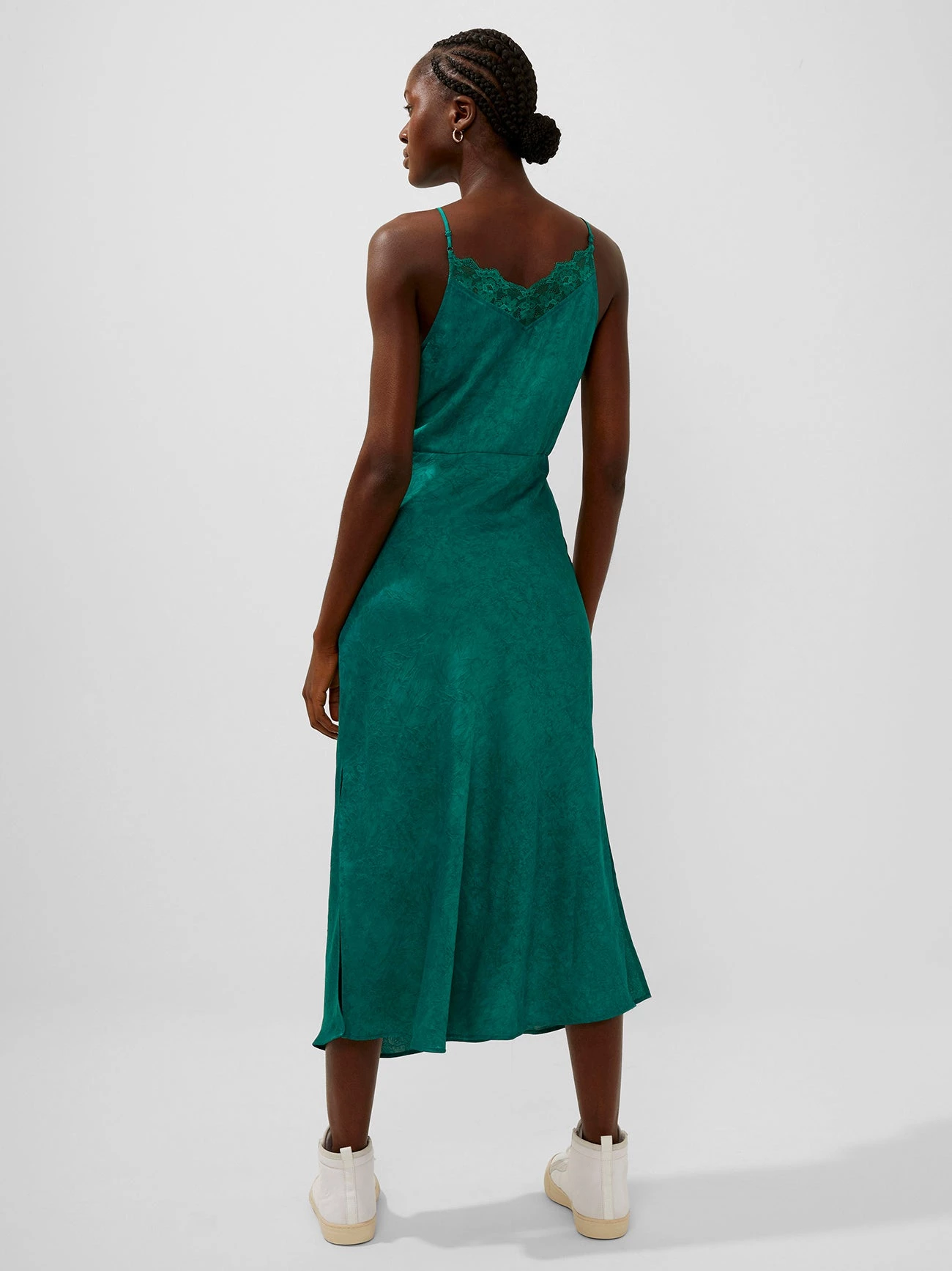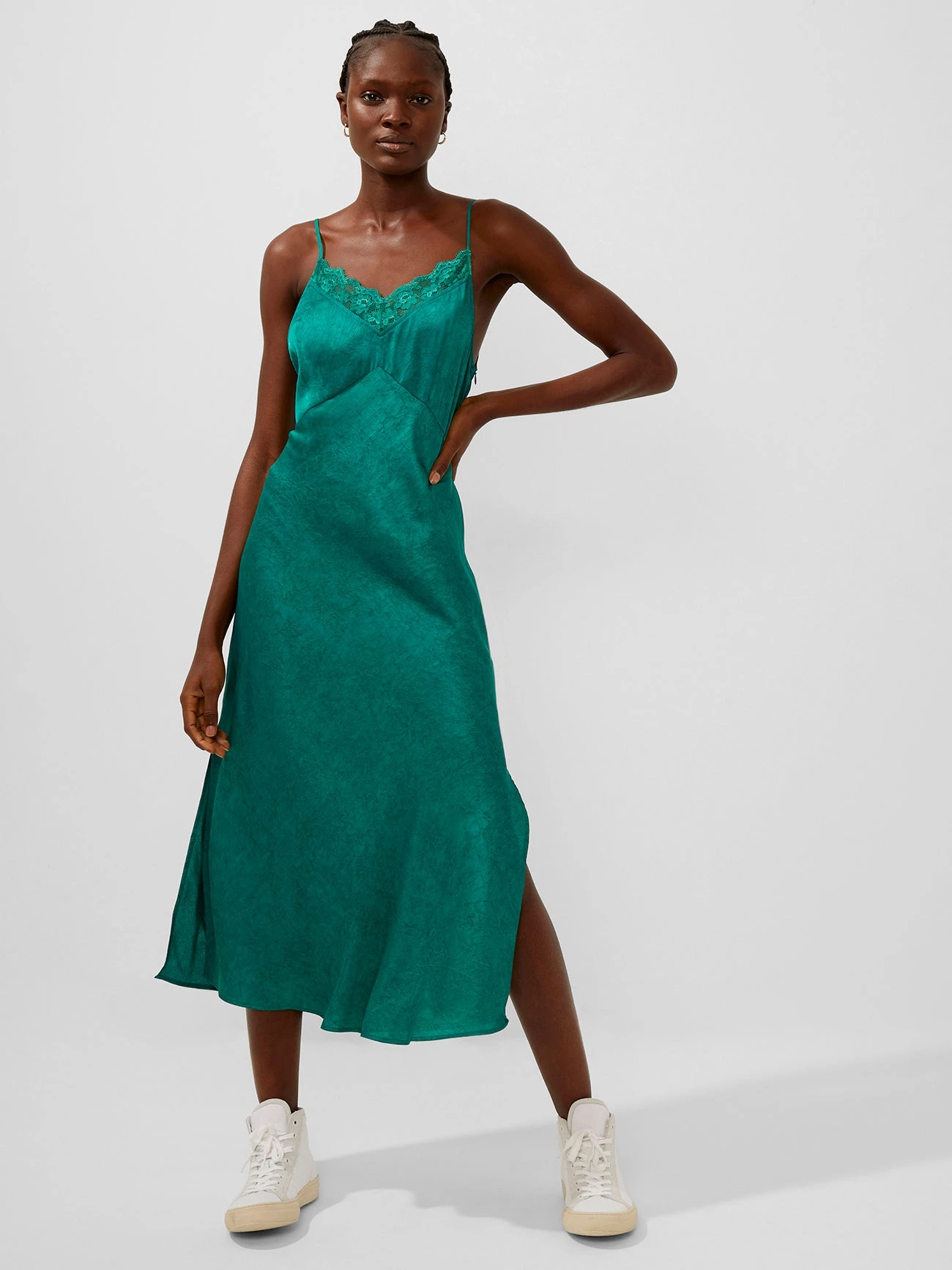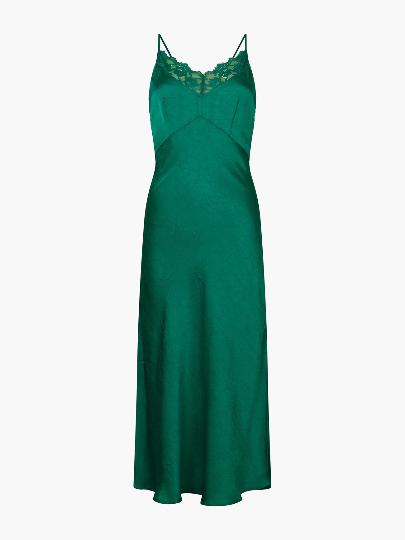 So alluring and elegant at the same time. The Dola Drape Slip Midi Dress falls to a calf-skimming length, with a satin-like sheen, lace trimmed v-neckline and side split duo.