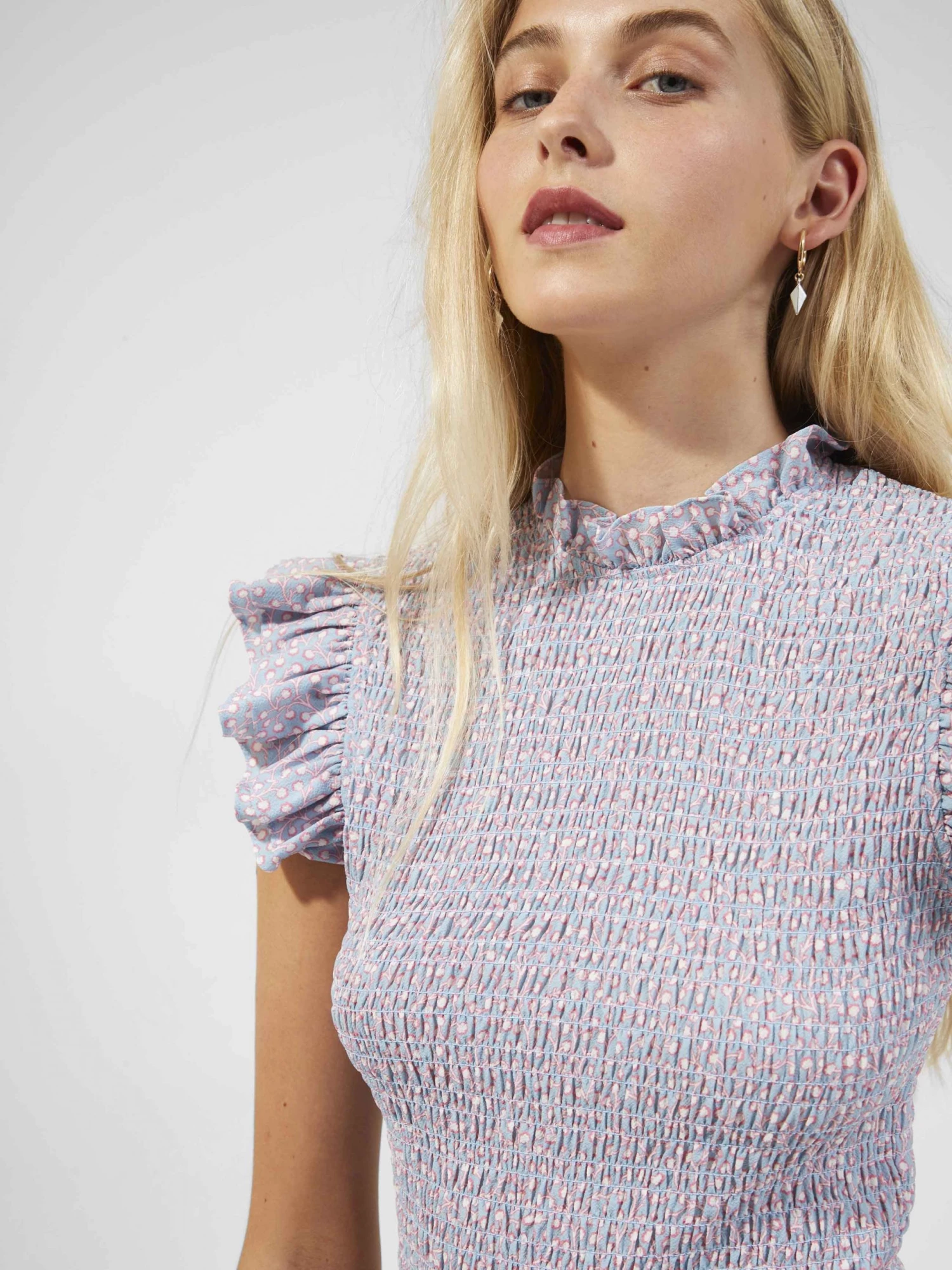 Our Elao Verona Crepe Smock Dress is warm-weather ready. In a figure-hugging fit, it’s designed with frilled accents, on-trend smocking and floral print all over.