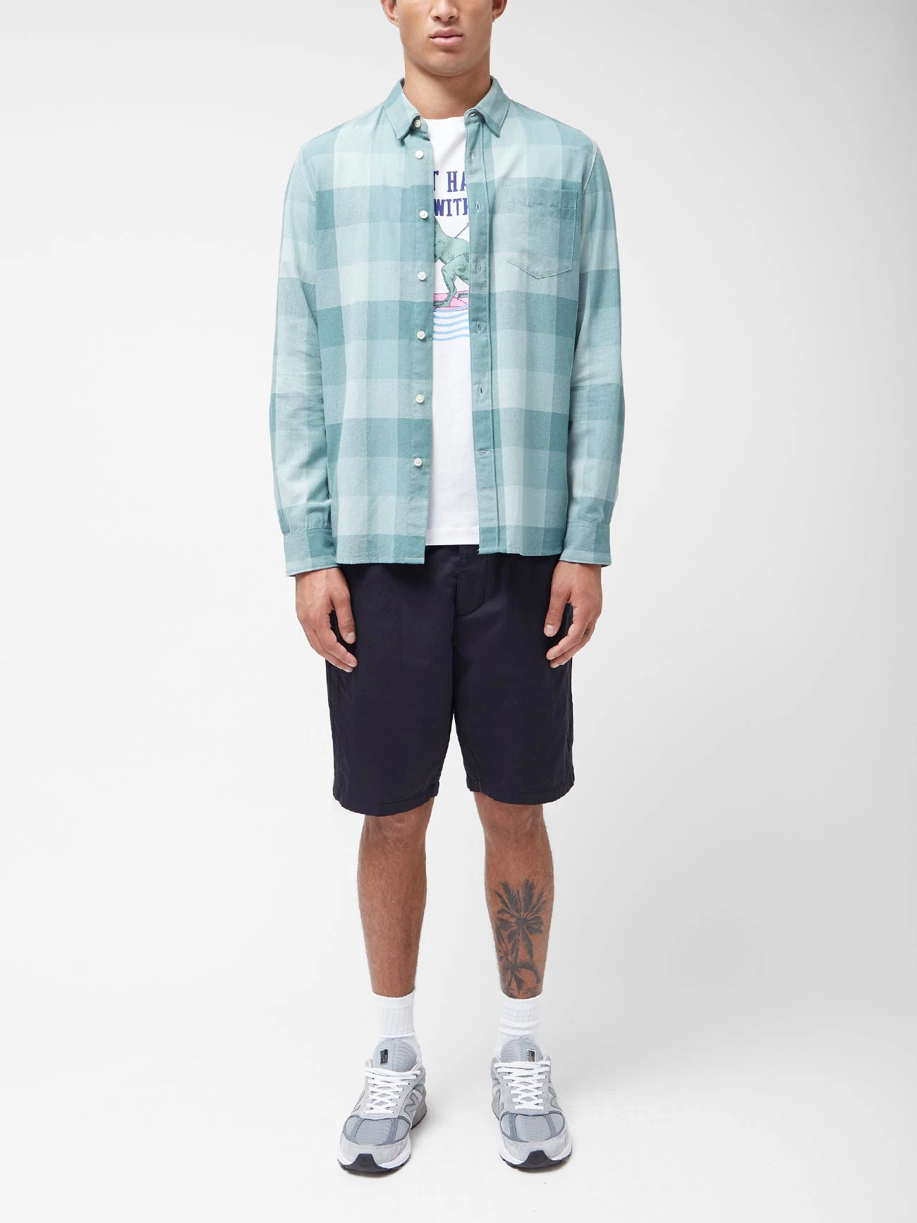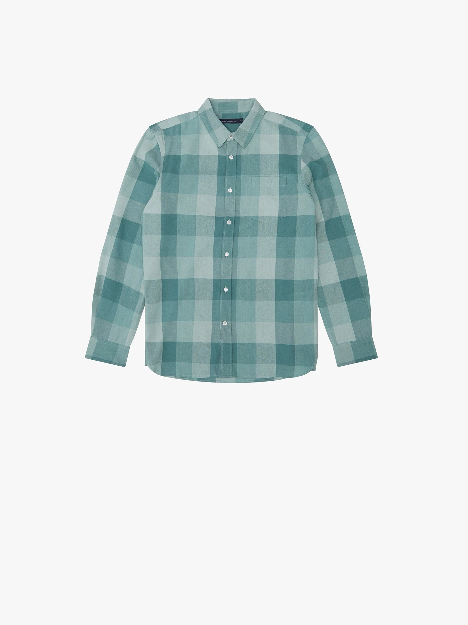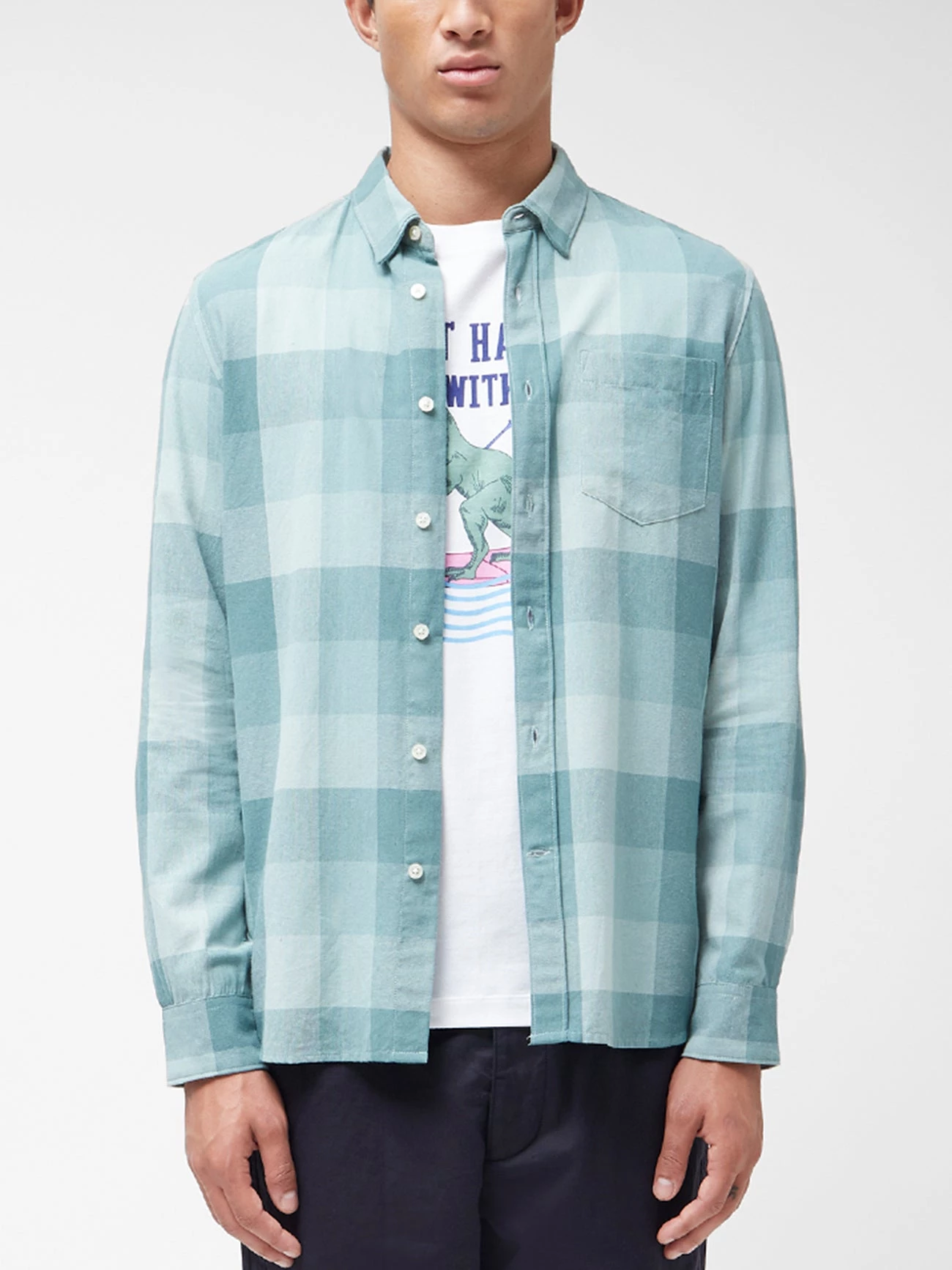 Check out our Garten Box Check Shirt, it ticks all the boxes. Gradient green hues form a minimalist box check print, partnered with the practical chest pocket, button-down front, shirt collar and long sleeves, all in soft cotton.