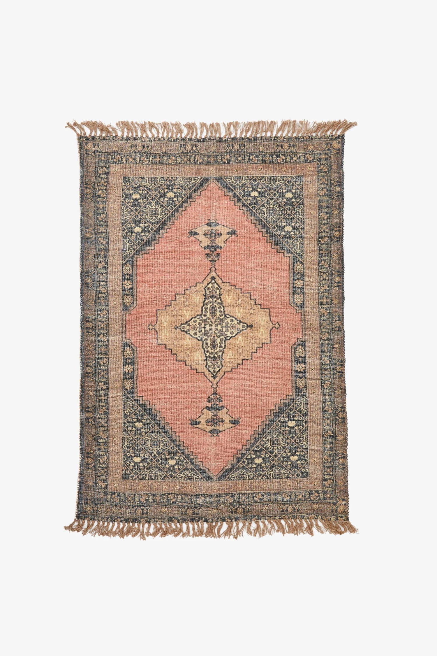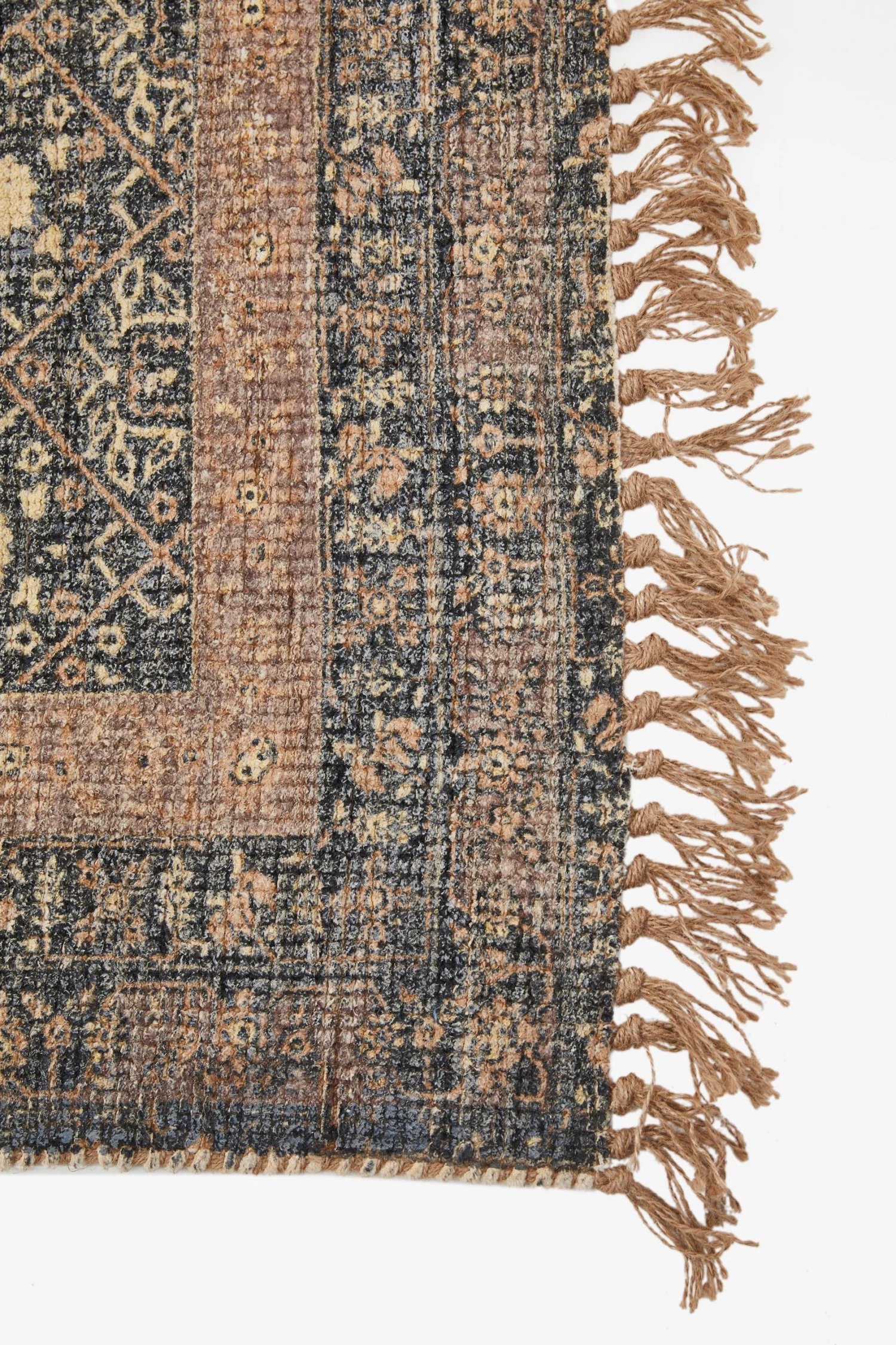 Please note: This classic French Connection rug is woven with a jute-chenille blend, giving it a hardened feel and distinct vintage effect. It is printed and brush washed to create elegant muted tones and open the chenille yarn. This unique process can cause threads to loosen, giving the product an authentic appeal.