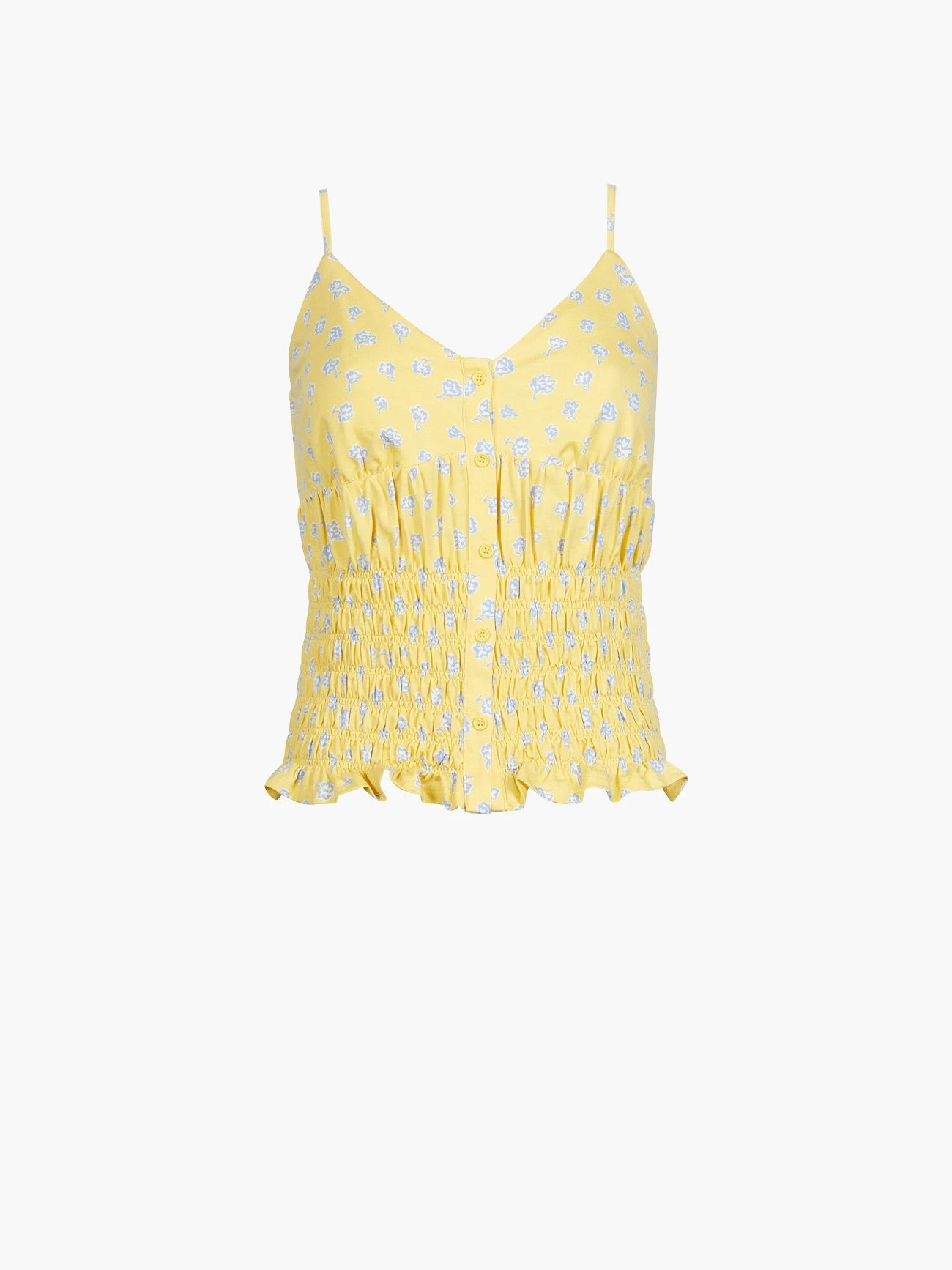 A floral pattern makes for a summer’s dream. The Peony-Dora Eco Strappy Top is one not to sleep on, with a v-neckline, spaghetti straps, button-front fastening and joyful floral pattern, making this top an essential and eco-friendly favourite.