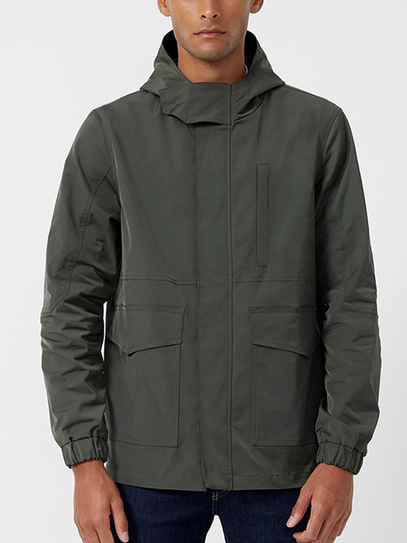 You know you need it. With our Polyester Twill Jacket, unexpected weather changes stand no chance, thanks to its multiple pockets, hood and sturdy fabric.