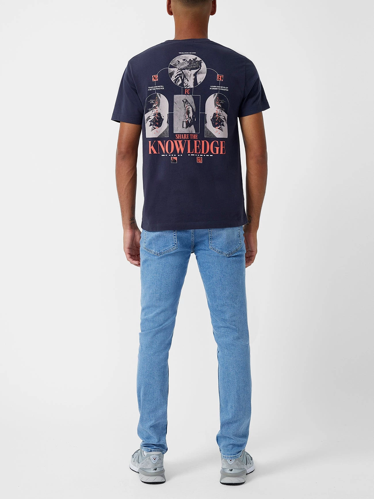 Expand your graphic tee portfolio with the Share The Knowledge T-Shirt. A casual style with short sleeves, it has a circular motif at the chest.Â