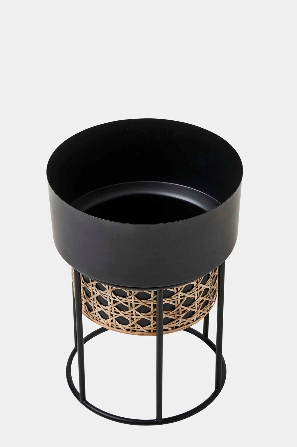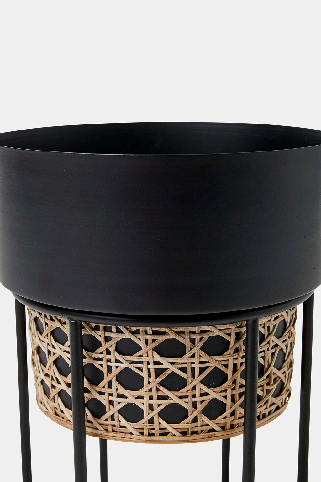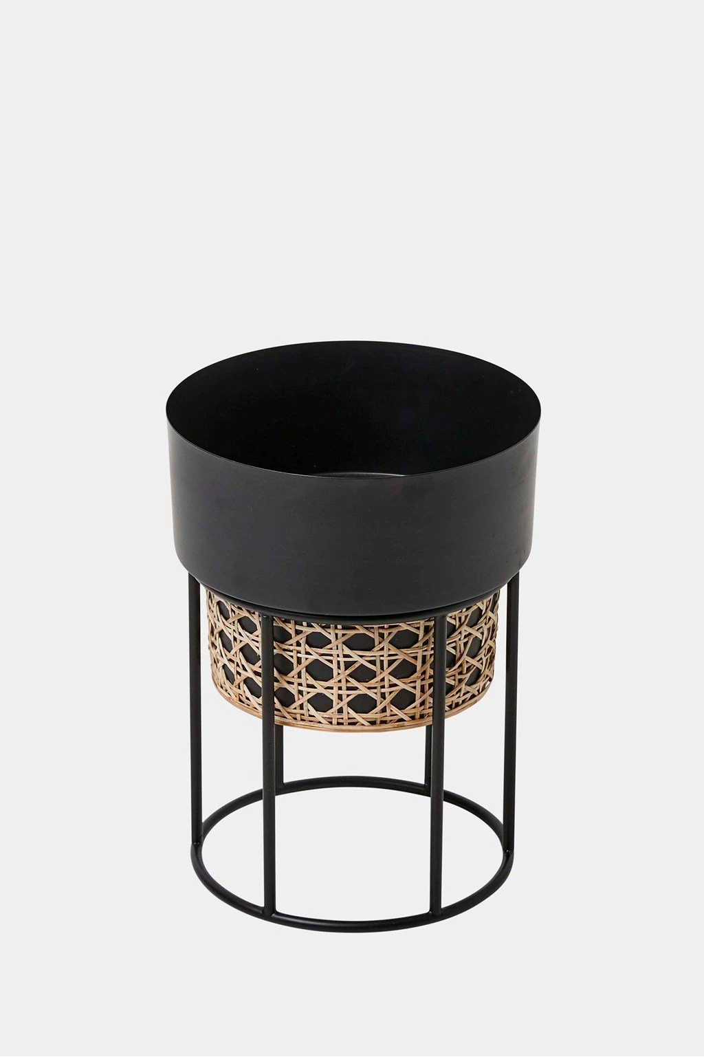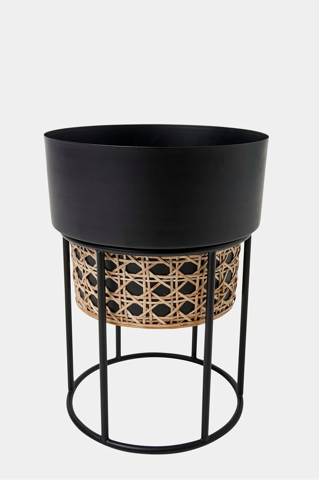 House your plants in the Geo Cane Planter to bring the outdoors in. Designed in an elegant cylindrical shape with an iron stand and bohemian woven rattan, the bold geometric planter is the perfect indoor accessory. Just add greenery for the ultimate interior jungle.
