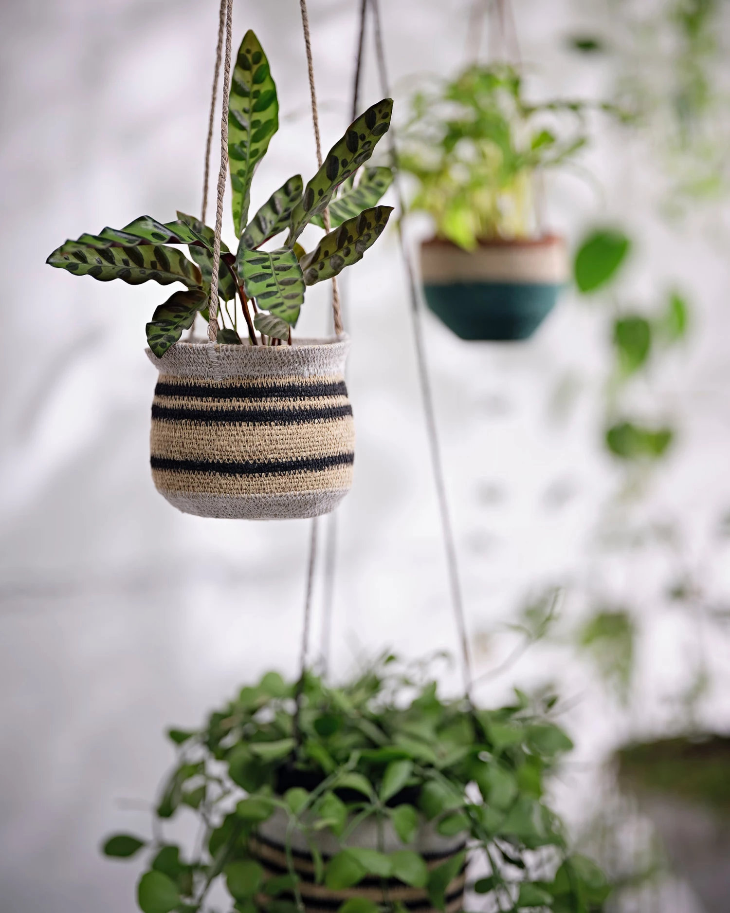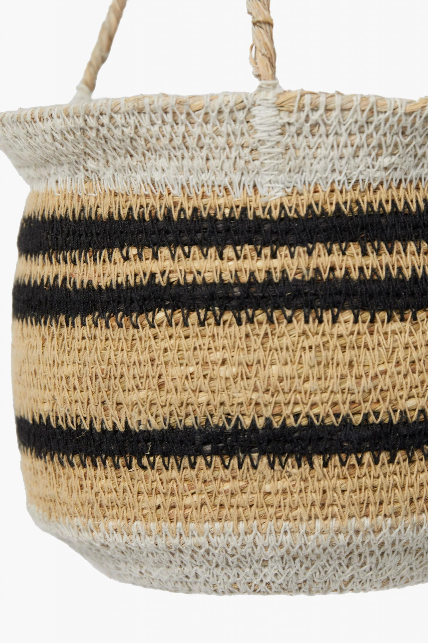 A petite planter for your greens to grow in. The Small Hanging Basket is crafted with intricately woven seagrass to form a soft and durable storage solution complete with contrasting black and nude stripes.