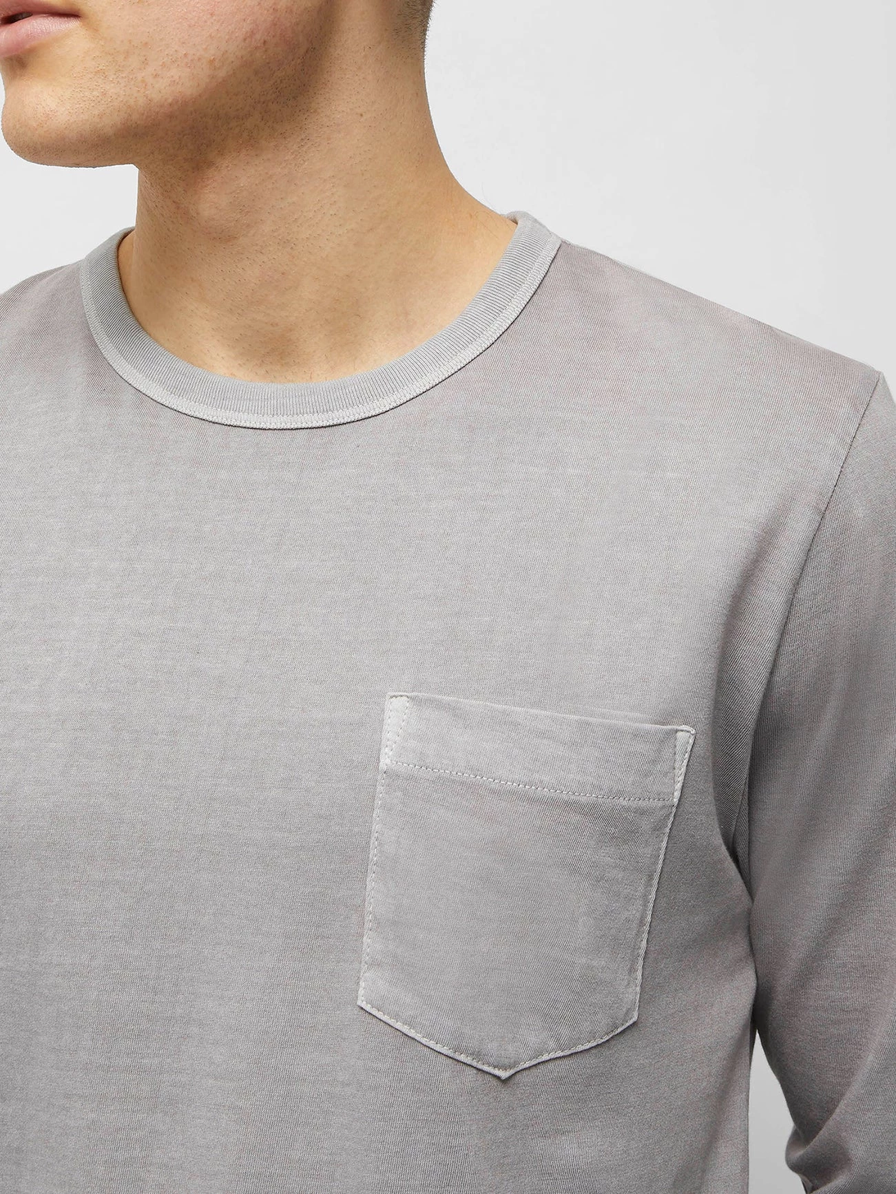 Our Washed Dye T-Shirt is a cornerstone of every transeasonal wardrobe. With long sleeves and round neckline, it’s finished with a understated dye design.