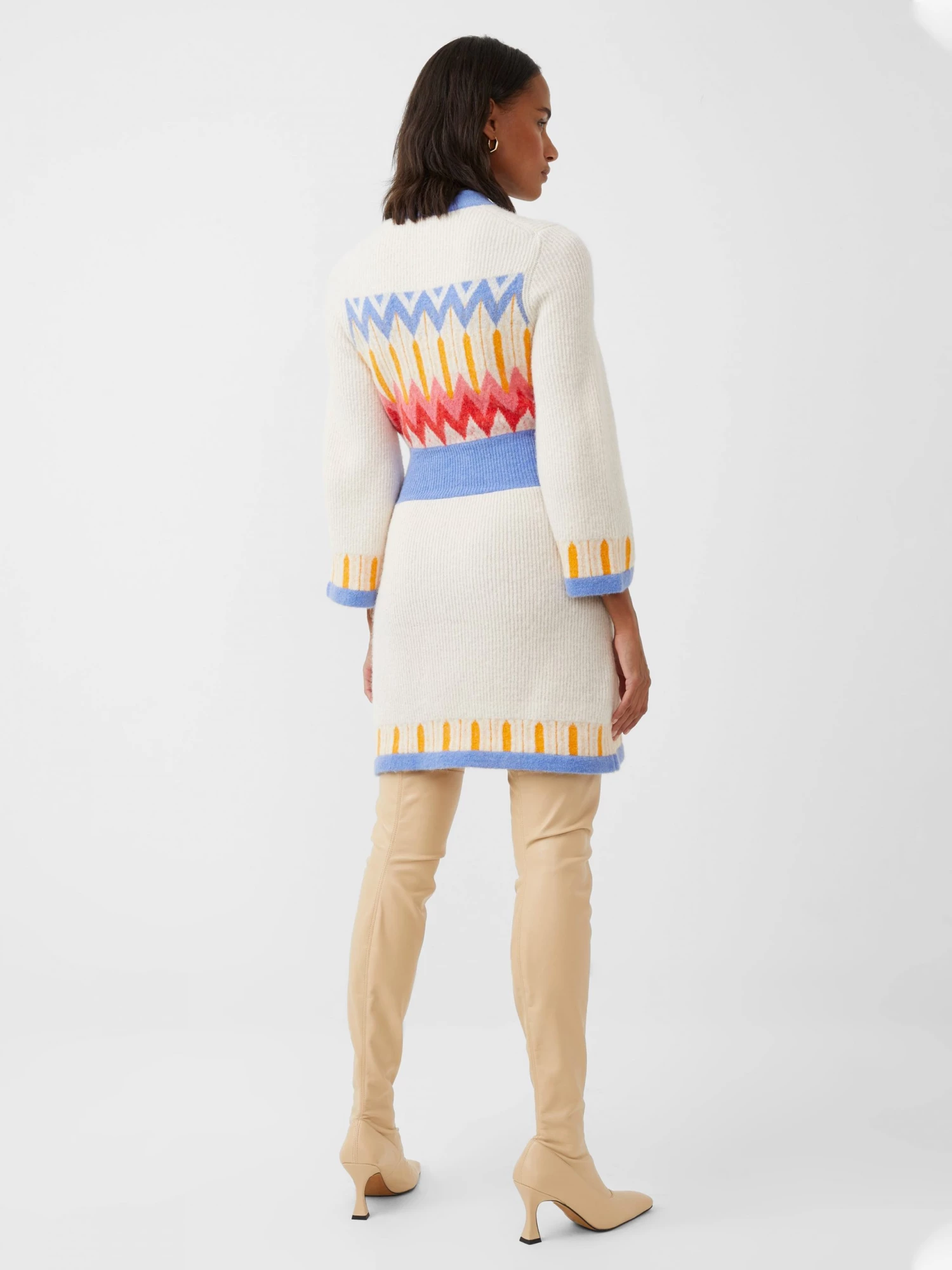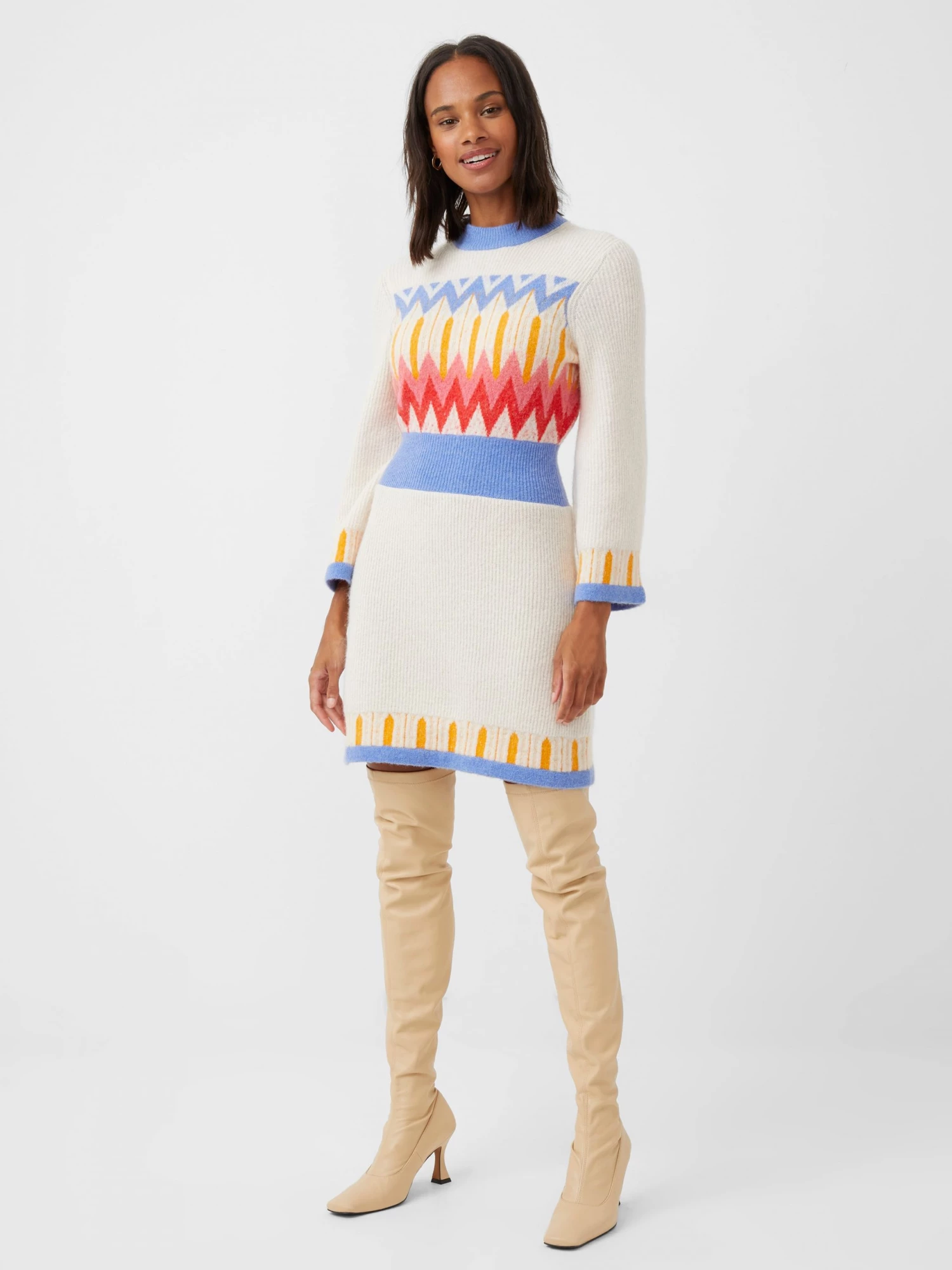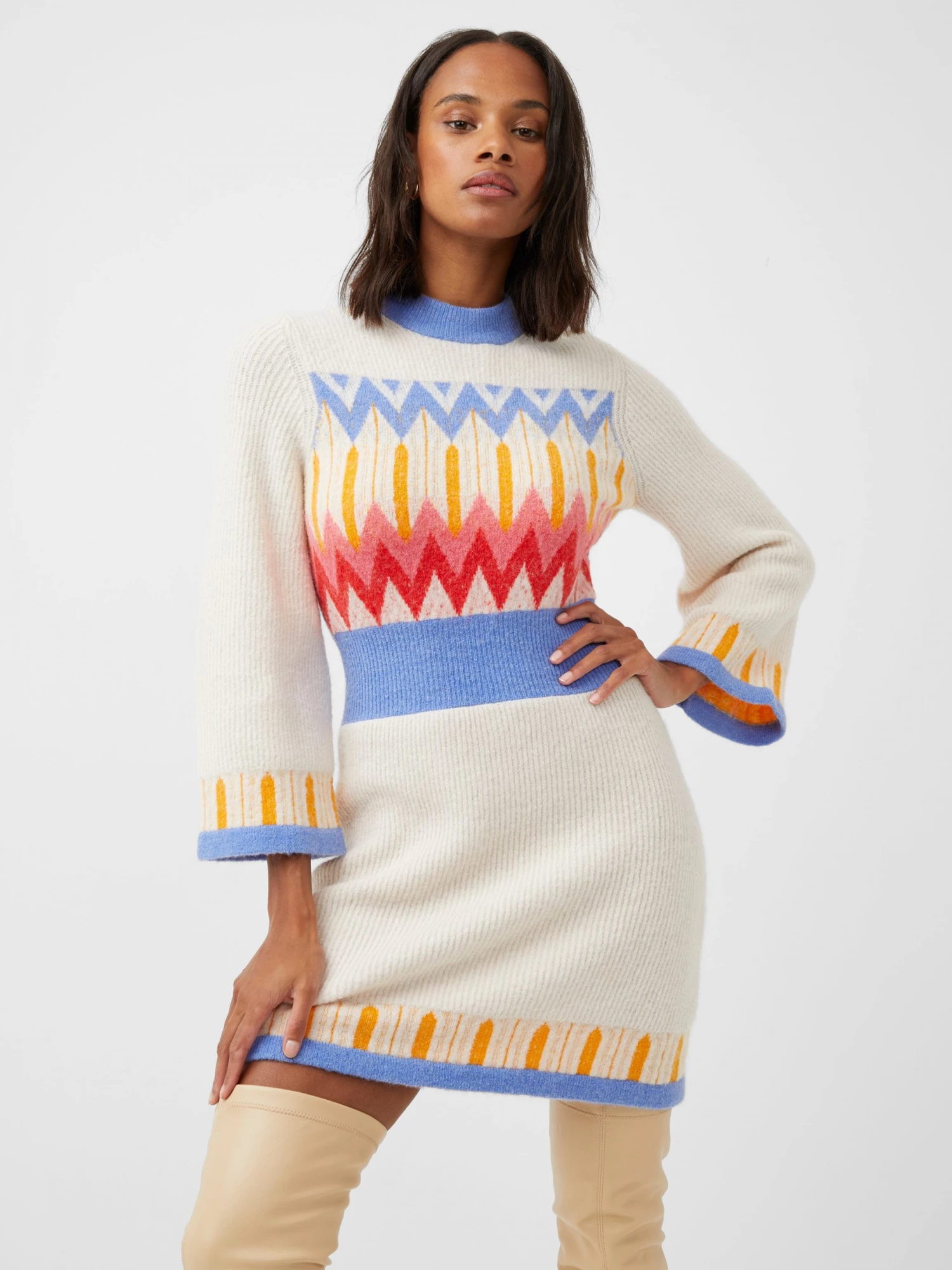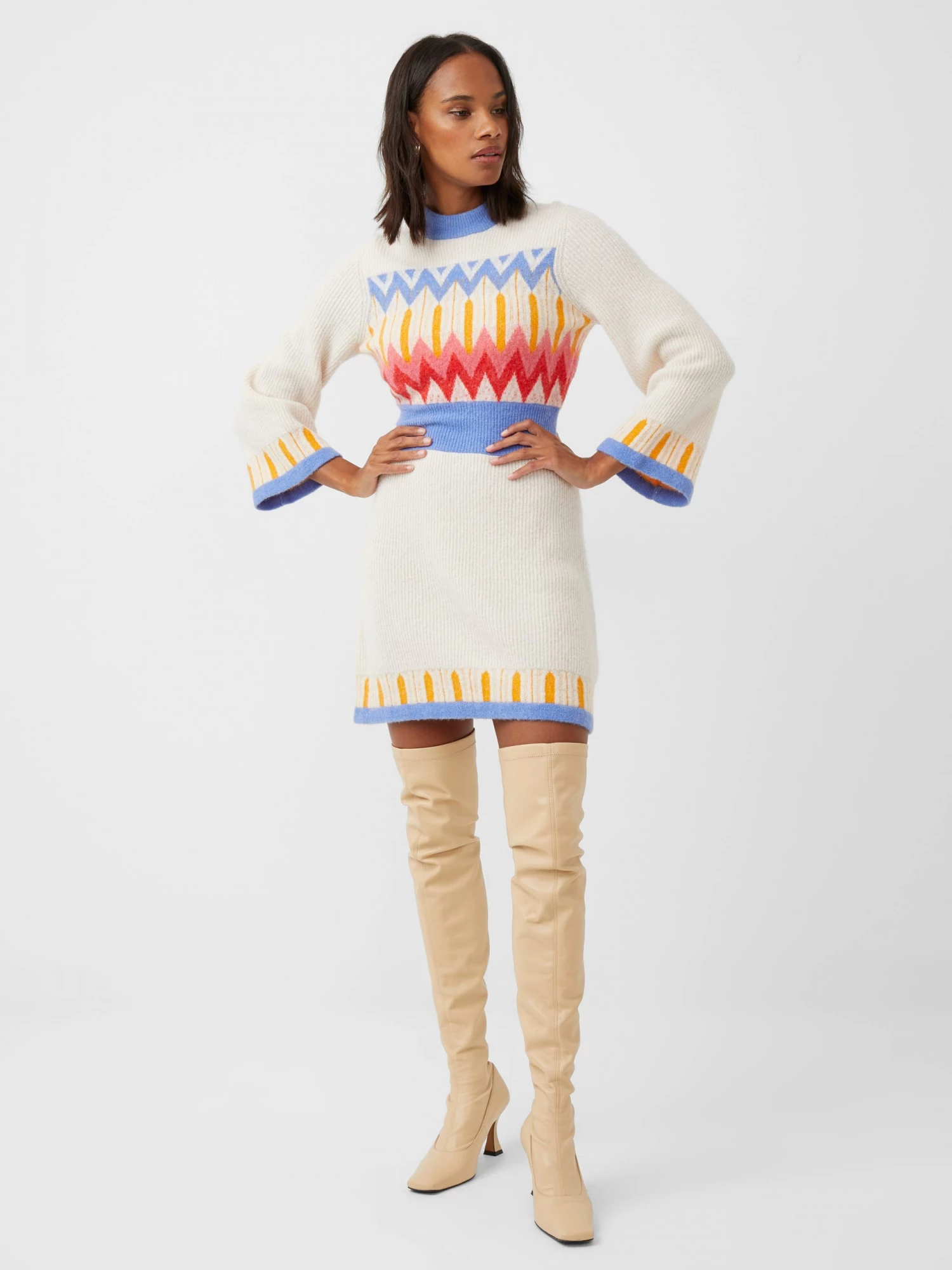 The Neya Fair Isle Knit Mini Dress is imbued with true British charm. Crafted from a soft-touch wool-alpaca blend, it’s decorated with a colourful Fair Isle print.