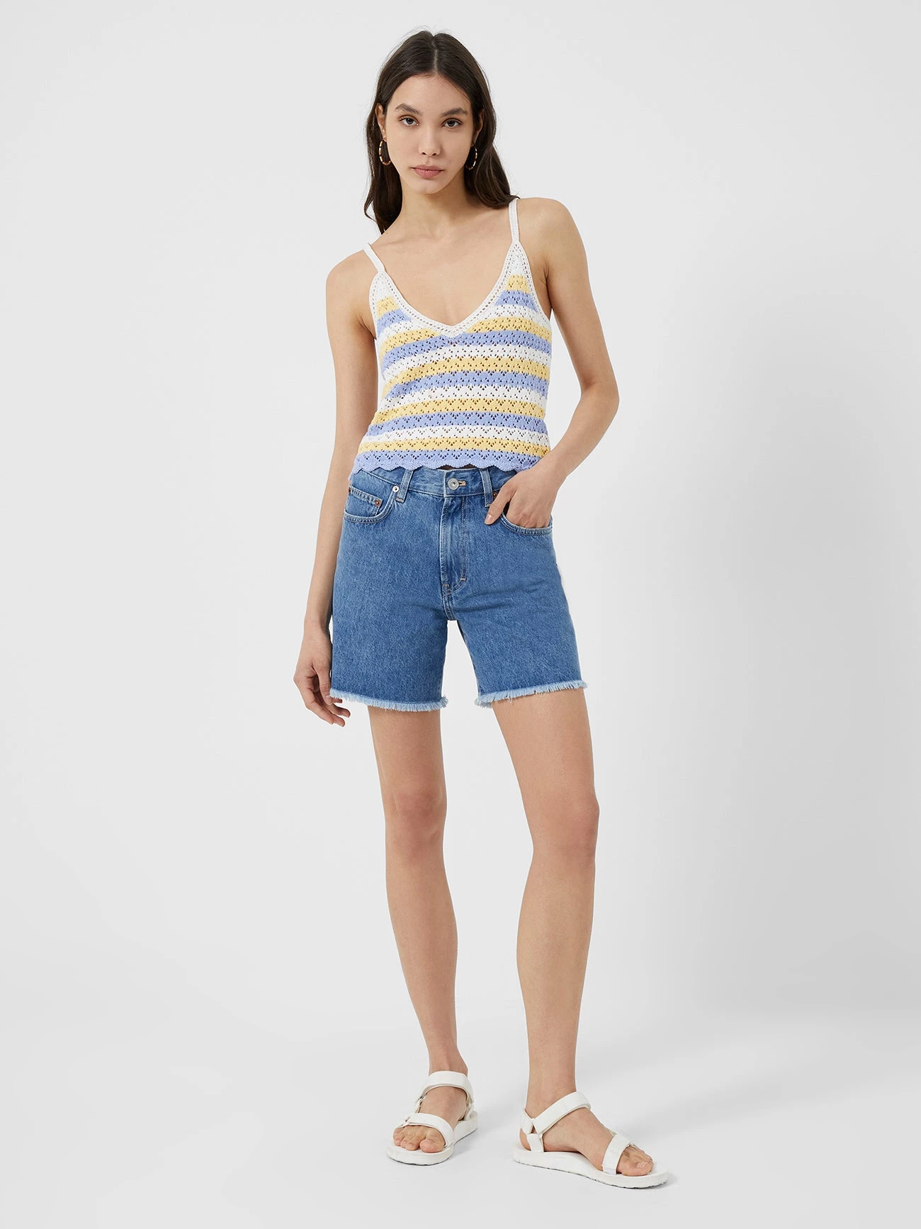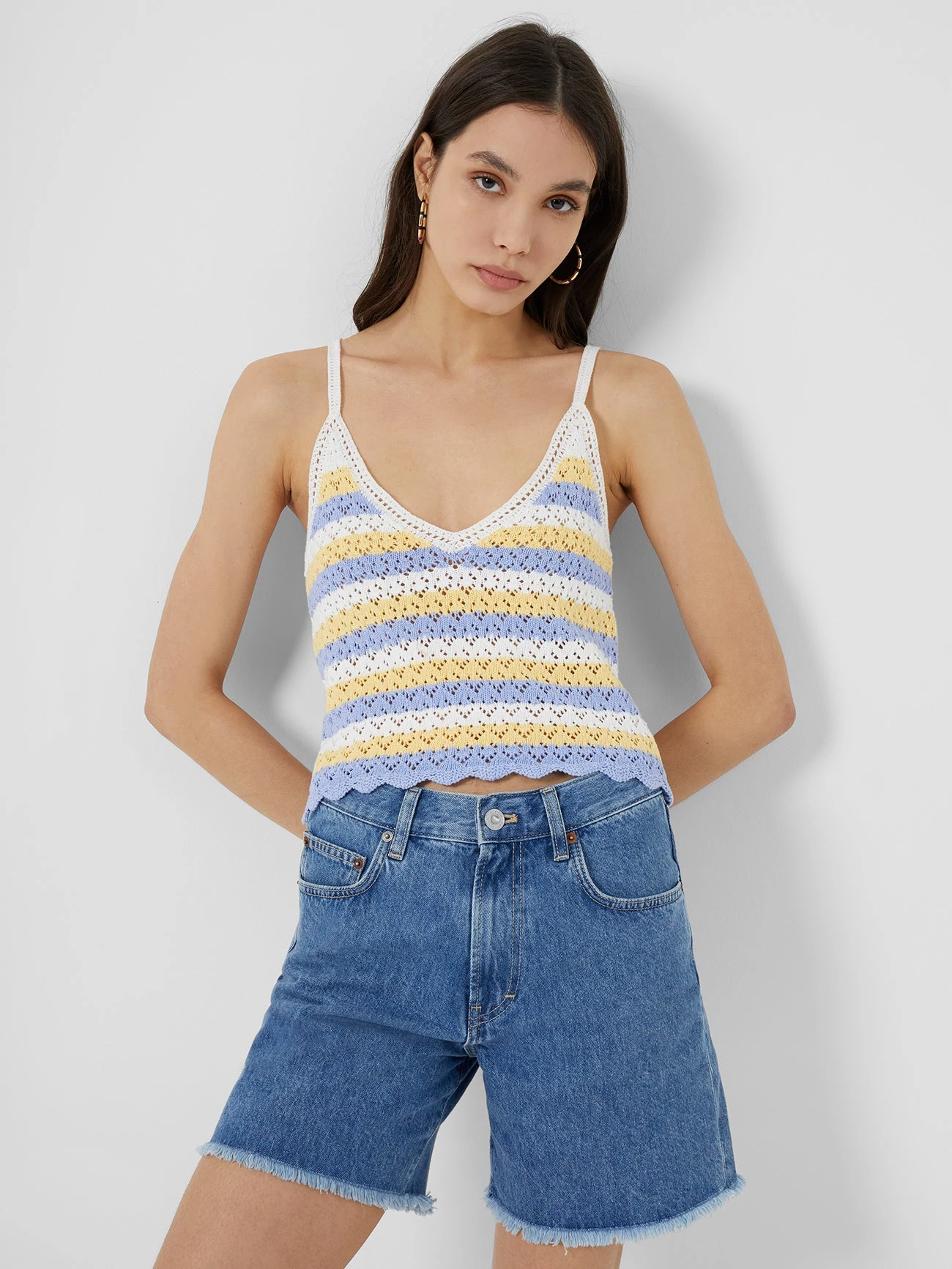 It’s time to swap out your winter knits for the Nora Stripe Crochet Vest Top. In pretty pastel hues, this lightweight cotton vest top boasts a broad v-neck, straps and scallop hem – a winning combination.