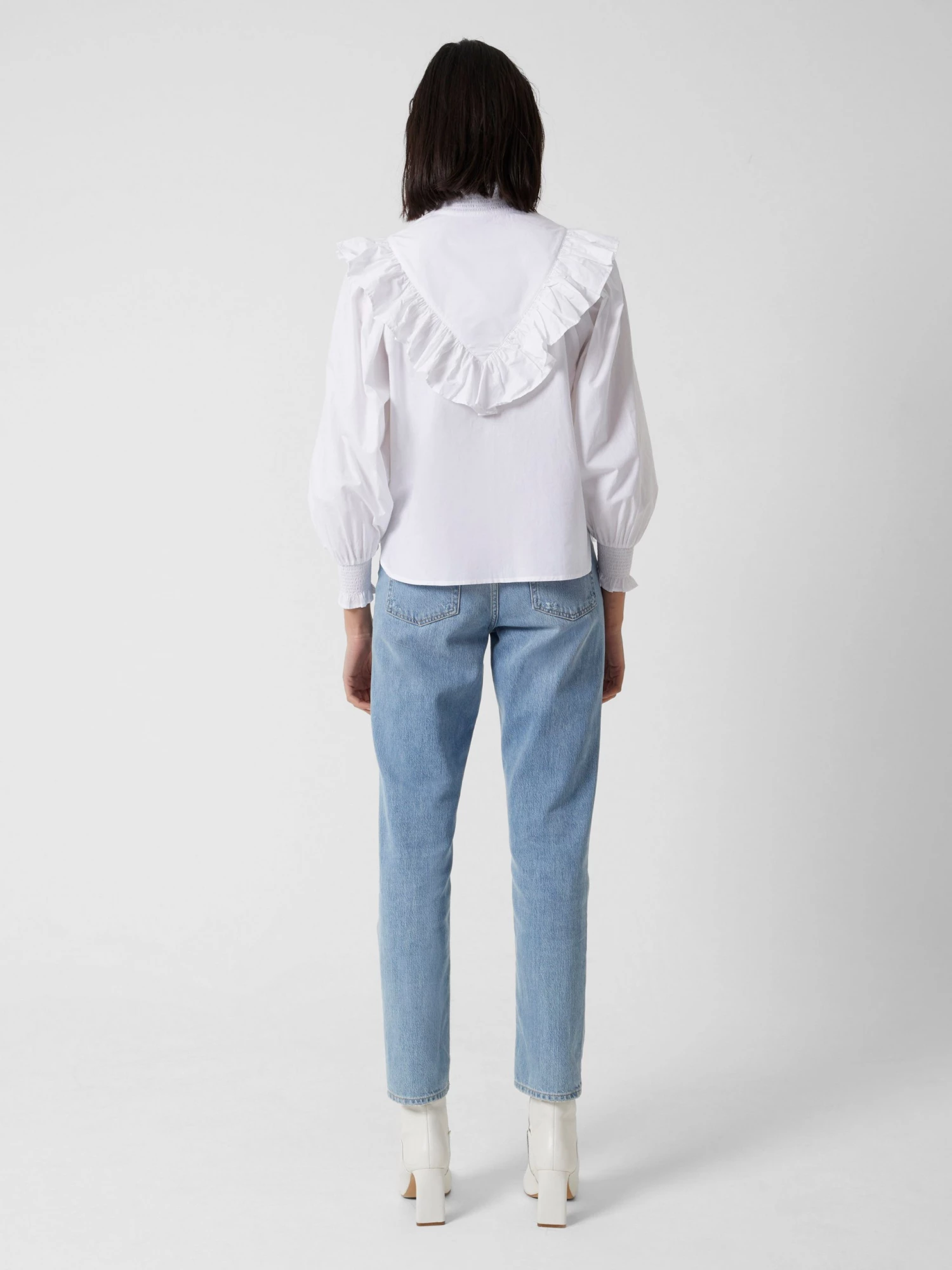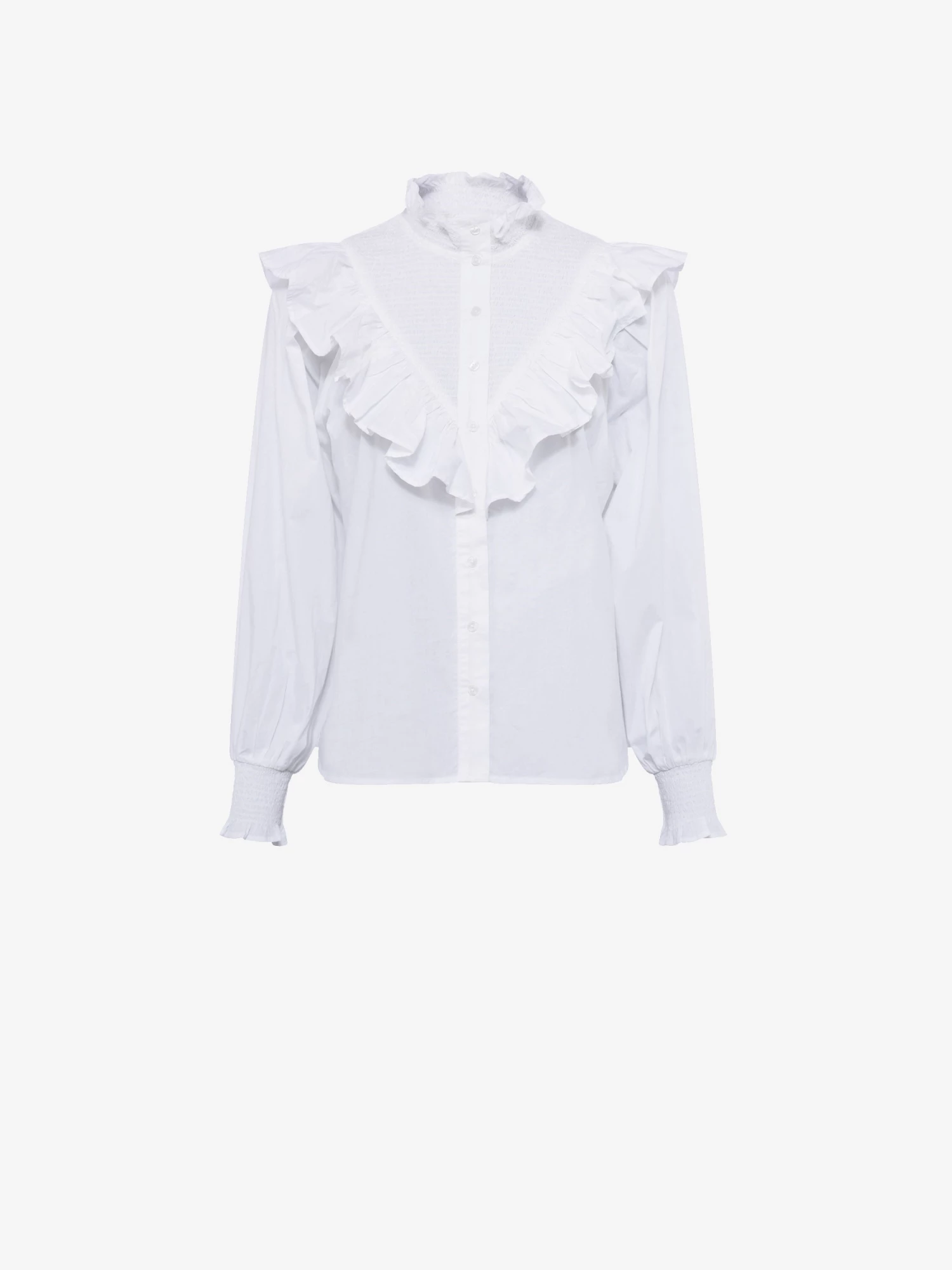 - High ruffled neckline