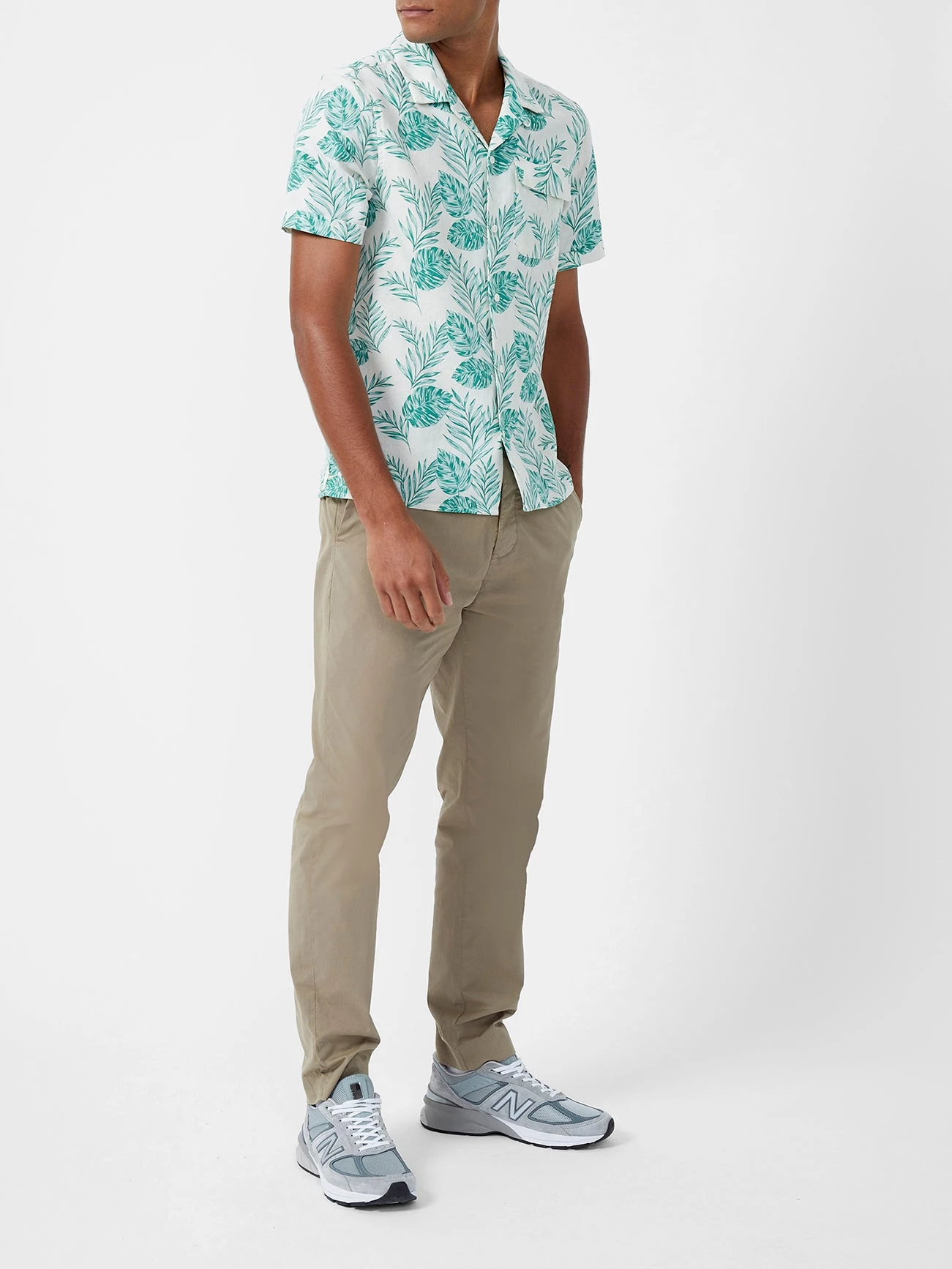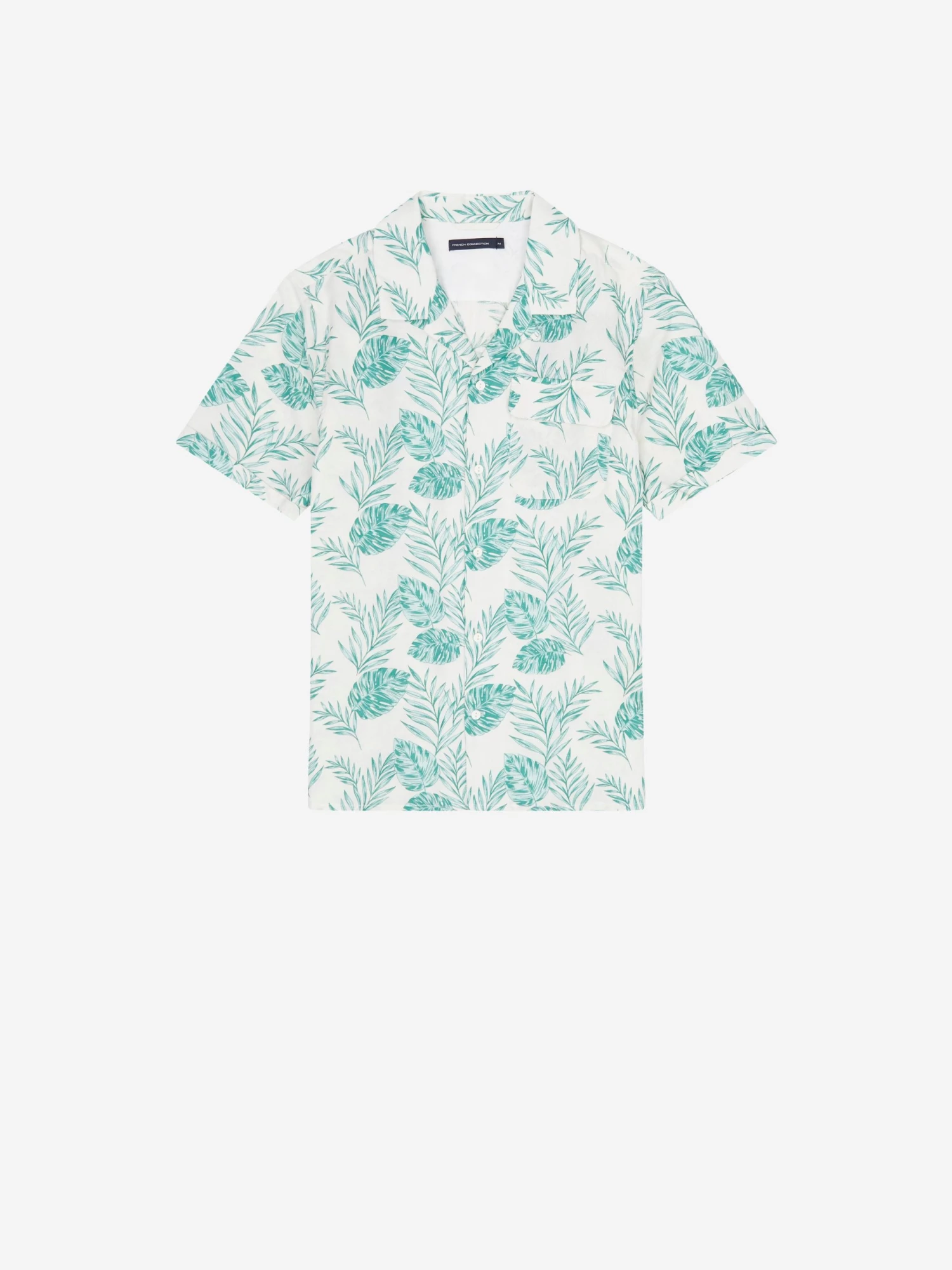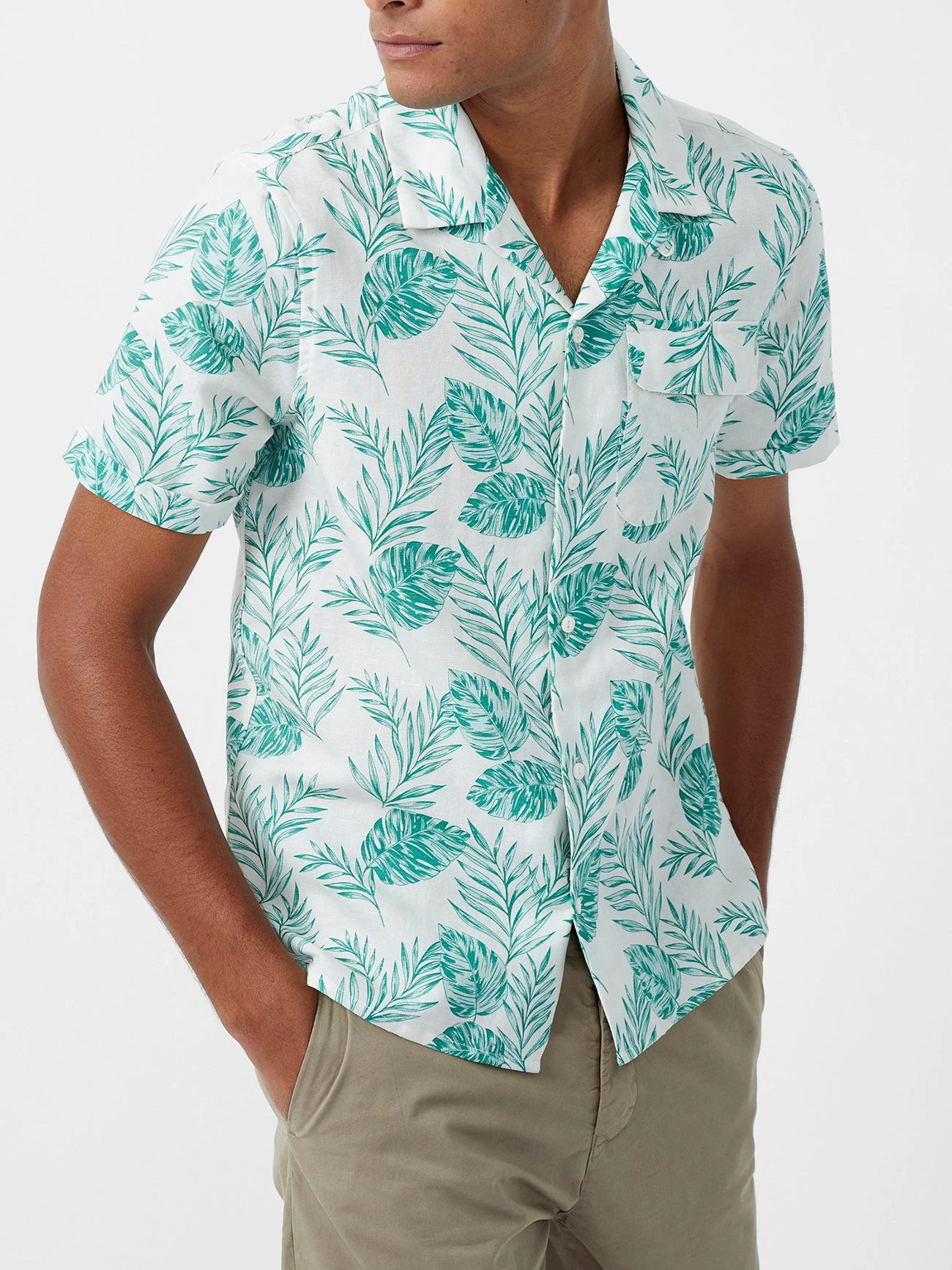 Summer calling. The Palm Leaf Shirt has a casual wide collar and flap chest pocket, while its relaxed profile is abloom with a lush palm leaf print.