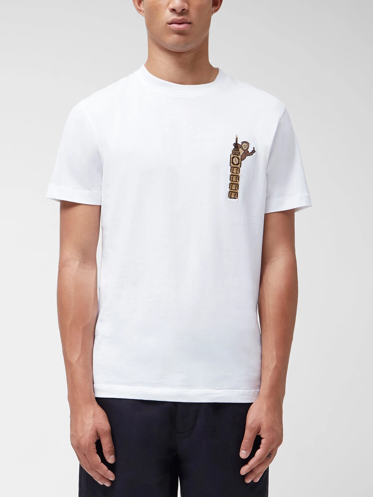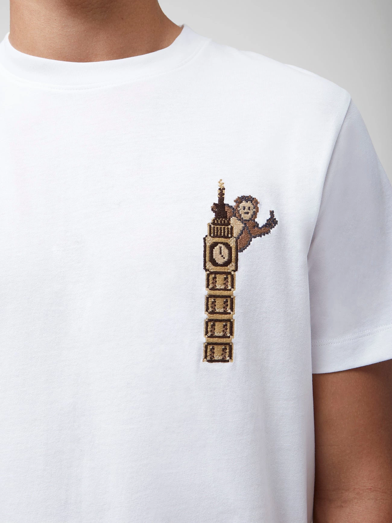 Inspired by a Hollywood movie, the Pixel Ape T-Shirt showcases an embroidery of a gorilla climbing up the Big Ben atop a cotton backdrop.